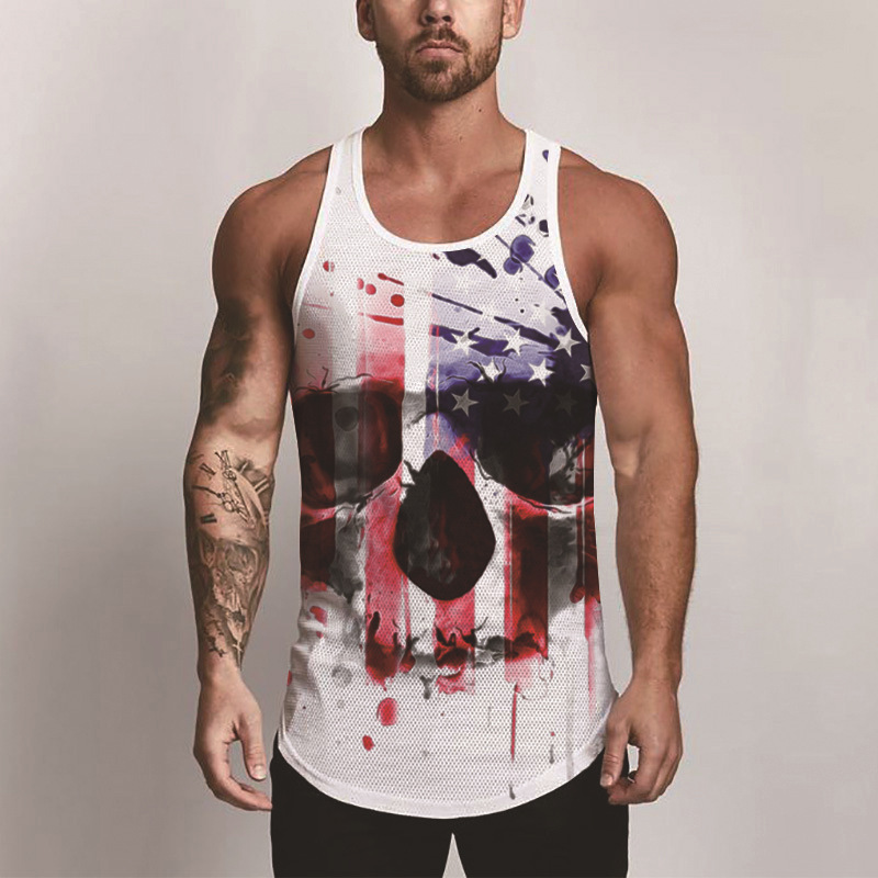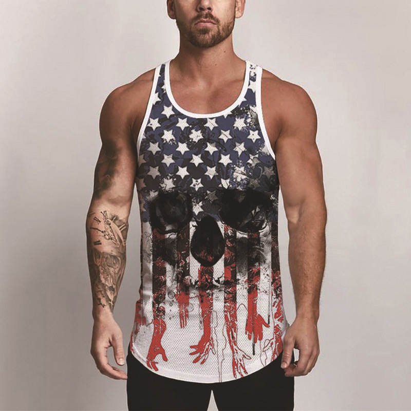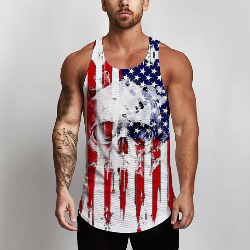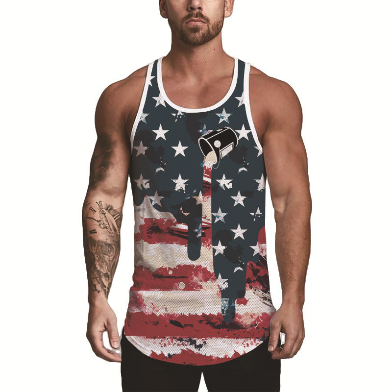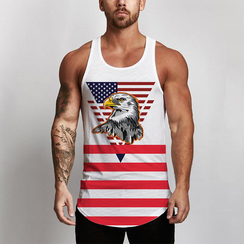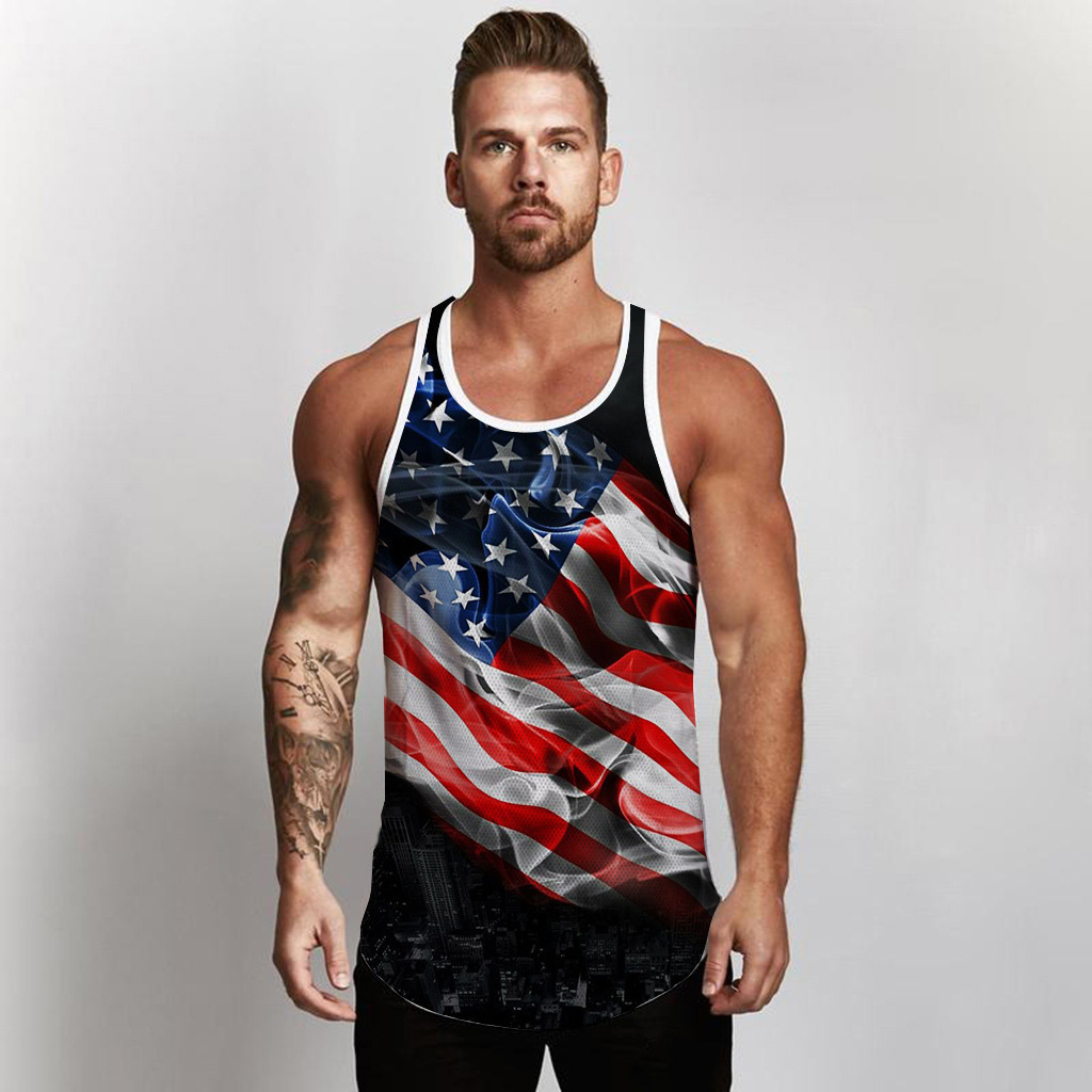 국경 간 유럽 코드 AliExpress 청소년 3d 인쇄 조끼 남자 스포츠 탑 자유의 여신상 독립 기념일 플래그