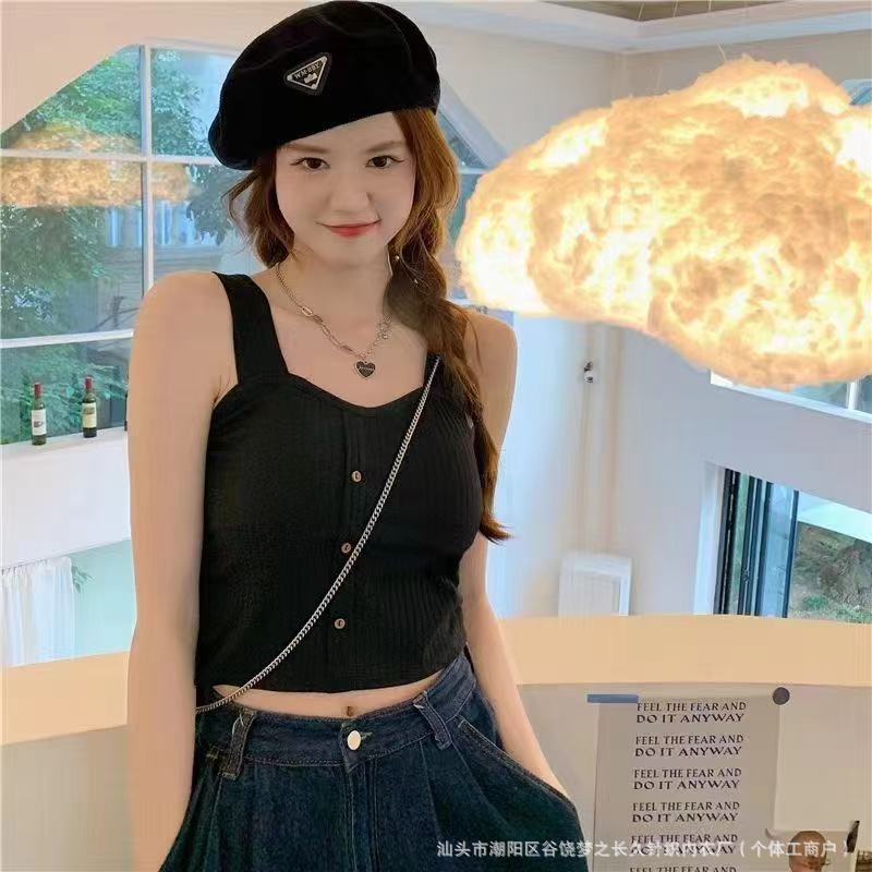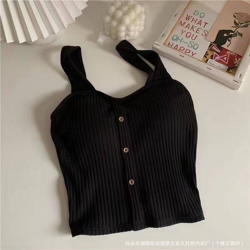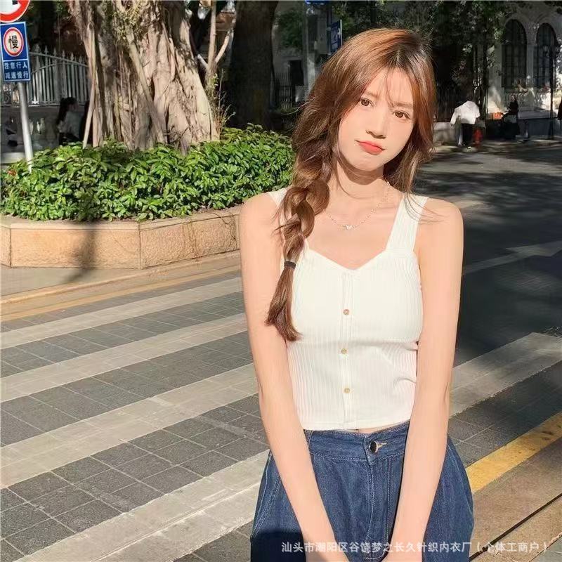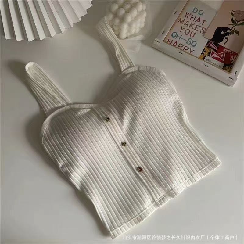 신상 핫걸 버튼 캐미솔, 가슴 패드가 있는 다용도 소녀 조끼, 노출 방지, 공장 직판스토어 가기