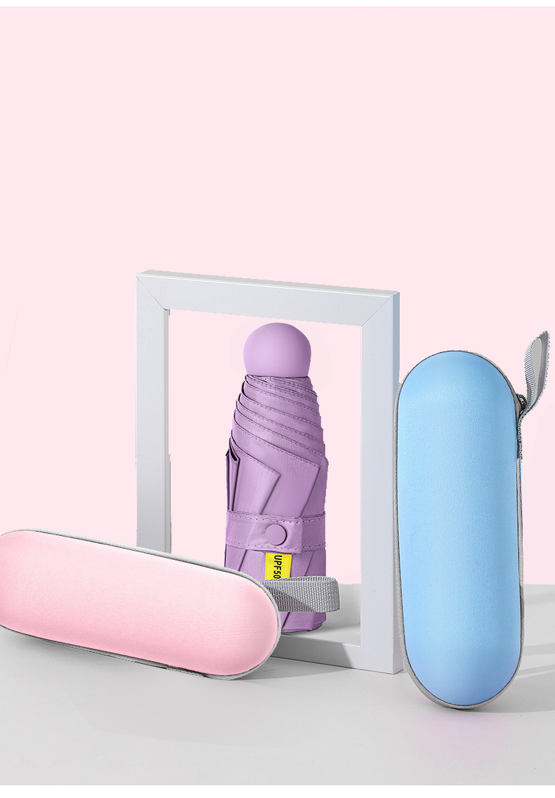 50% 접은 검은 접착제 태양 우산 미니 그늘 캡슐 우산 선 스크린 우산 공장 도매 광고 포켓 우산 접히는 우산