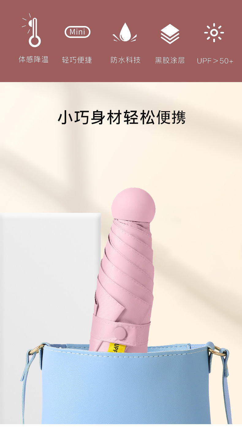 50% 접은 검은 접착제 태양 우산 미니 그늘 캡슐 우산 선 스크린 우산 공장 도매 광고 포켓 우산 접히는 우산스토어 가기