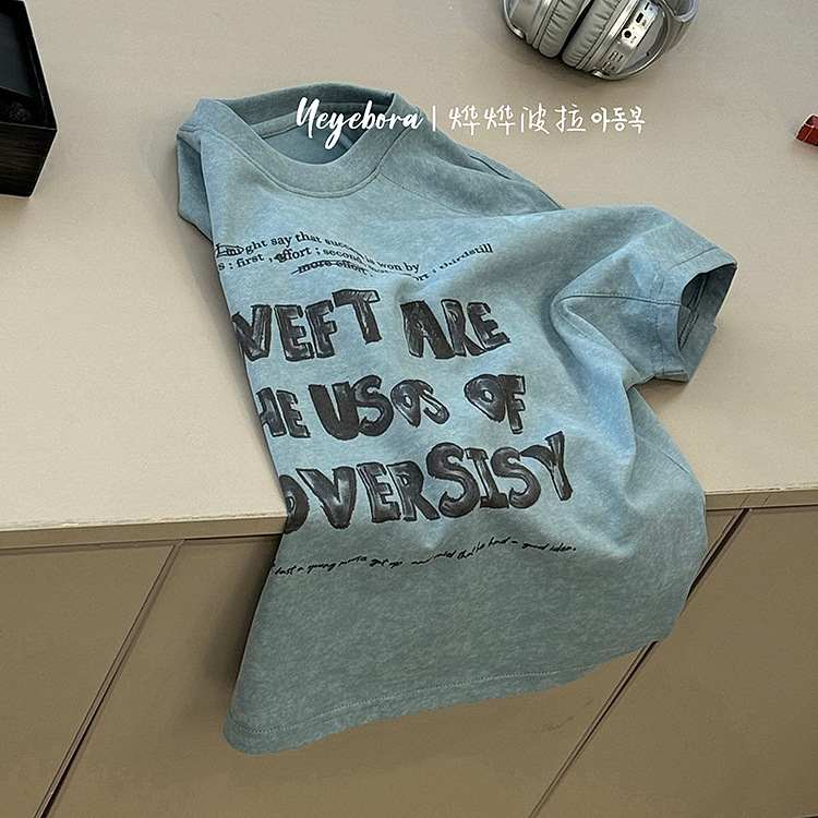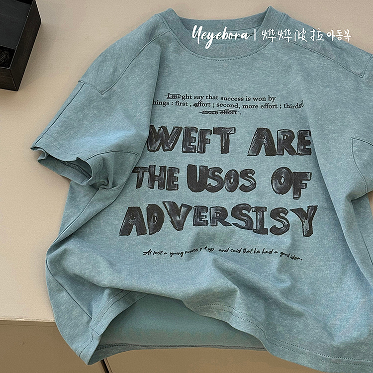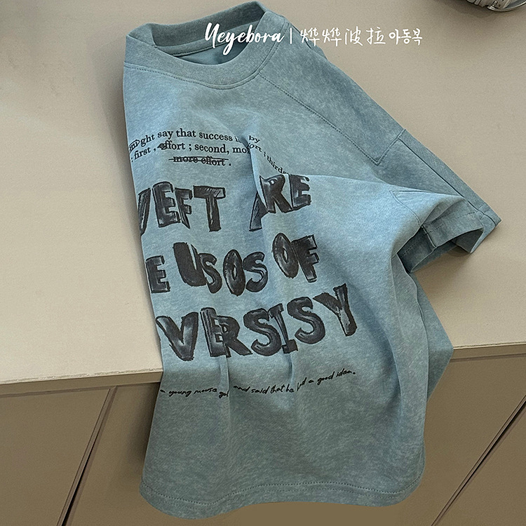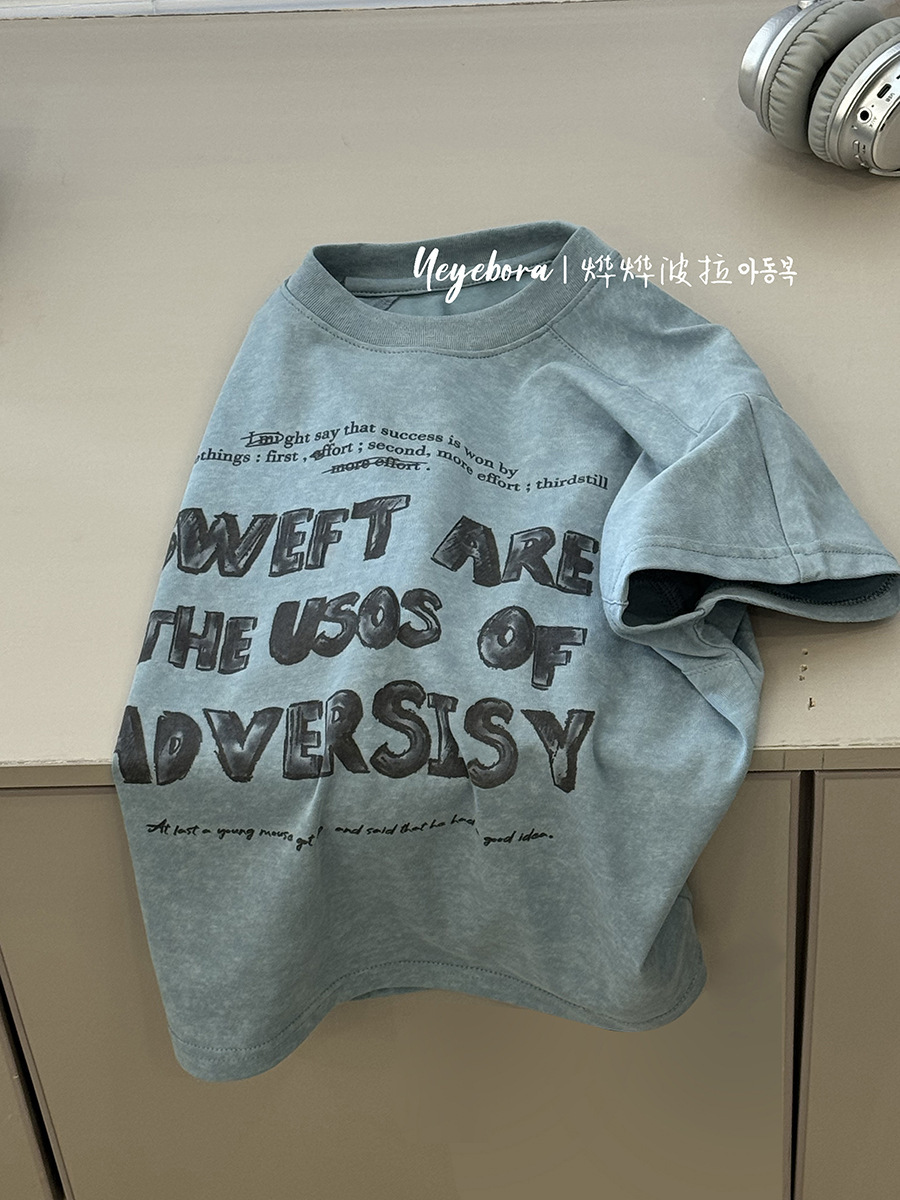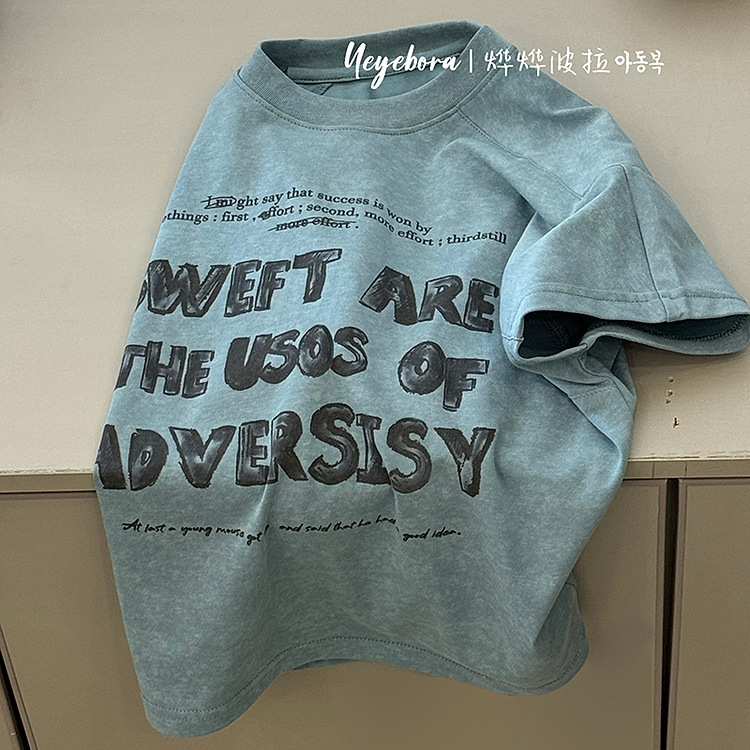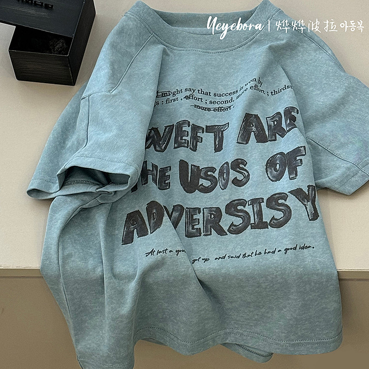 소년 및 어린이 반팔 편지 인쇄 티셔츠 2025 봄과 여름 크루 넥 웨스턴 스타일 올 매치 캐주얼 탑스토어 가기