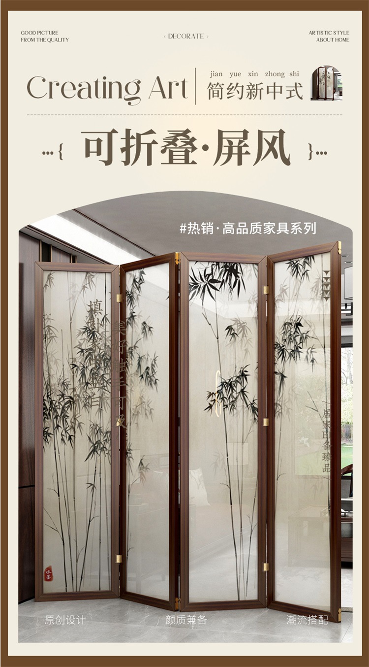 2025 새로운 솔리드 우드 새로운 중국 스타일 스크린 파티션 거실 문 접이식 이동식 사무실 침실