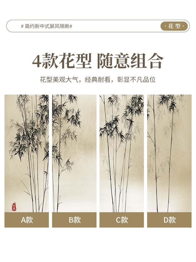 • 4개의 연속된 화면 전체 화면 거즈 잉크 대나무 190*200cm