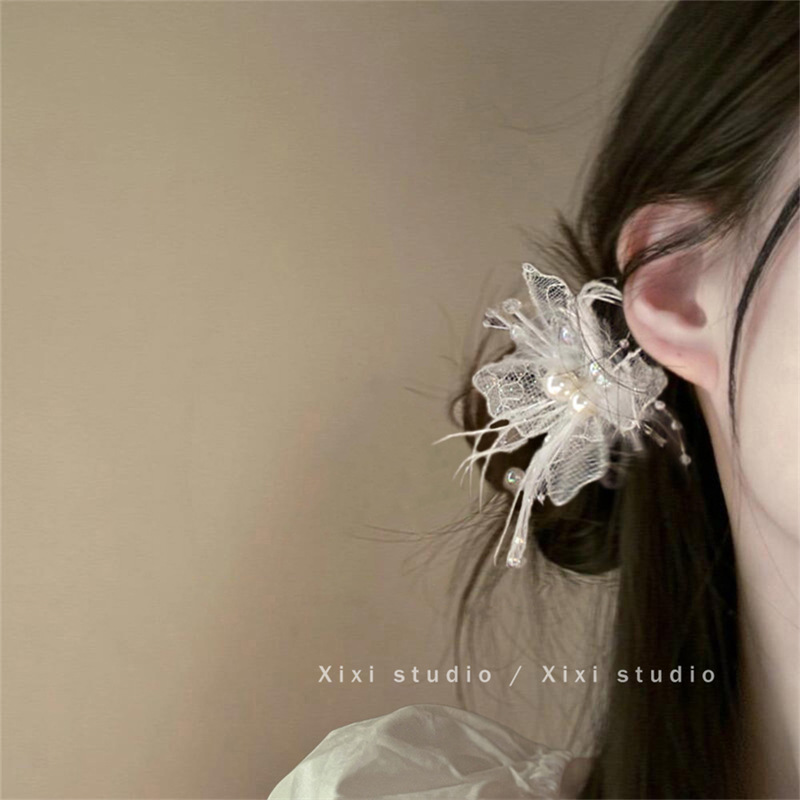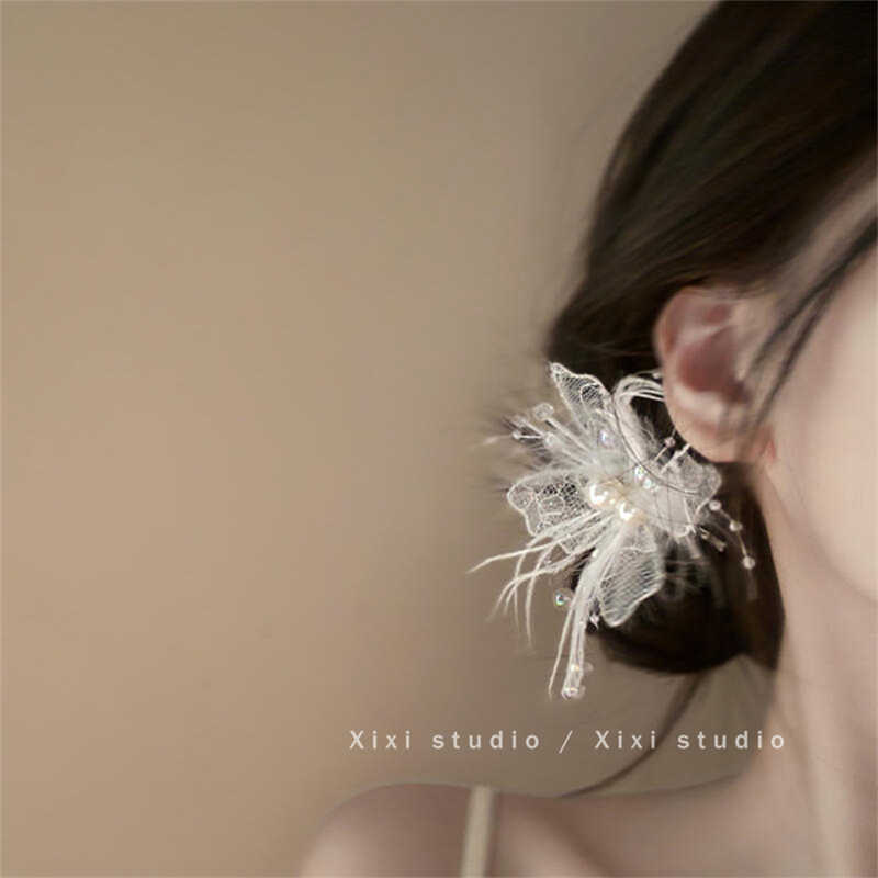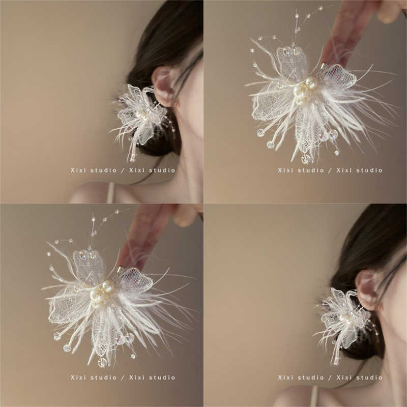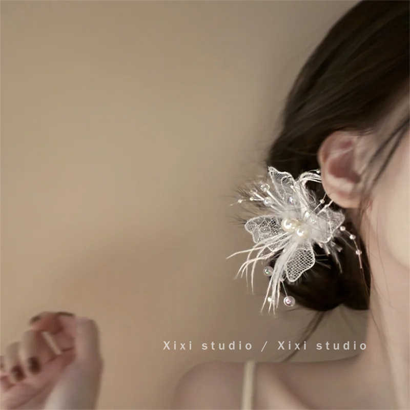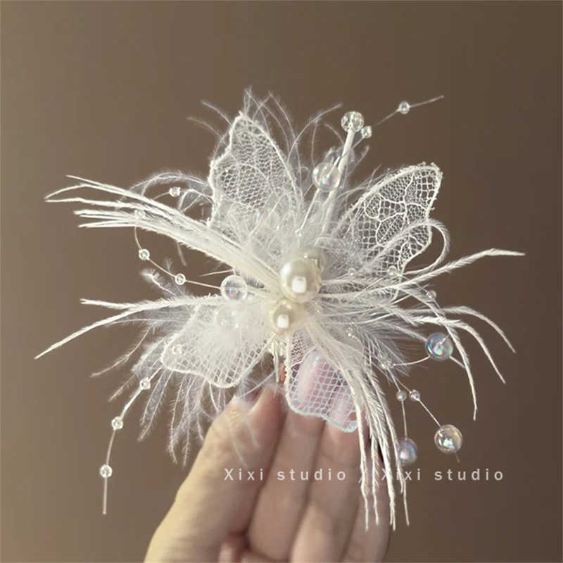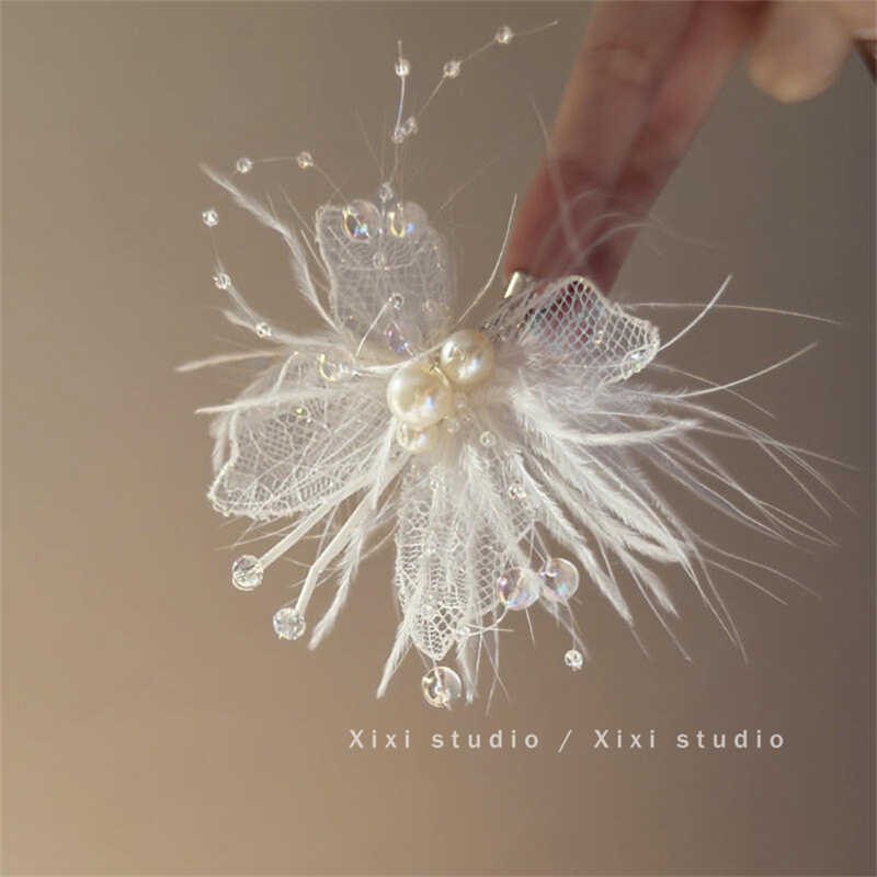 새로운 스타일 레이스 깃털 헤어핀 절묘한 나비 진주 사이드 클립 2025 핫 헤드웨어 슈퍼 페어리 헤어 액세서리