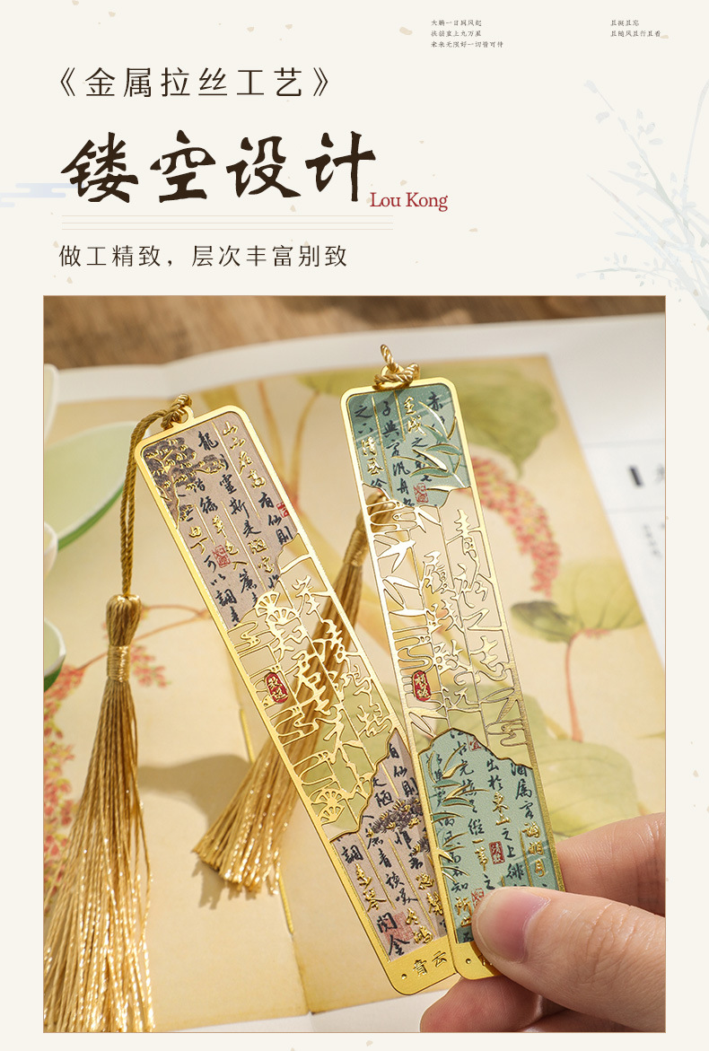 고대 스타일 절묘한 북마크 클래식 중국 스타일 황동 금속 중공 북마크 하이 엔드 절묘한 황궁 문화 및 창조적 인 기념품스토어 가기
