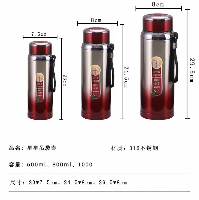 도매 스타 진공 슬링 절연 주전자 316 스테인레스 스틸 더블 레이어 휴대용 절연 컵 스포츠 대용량 주전자