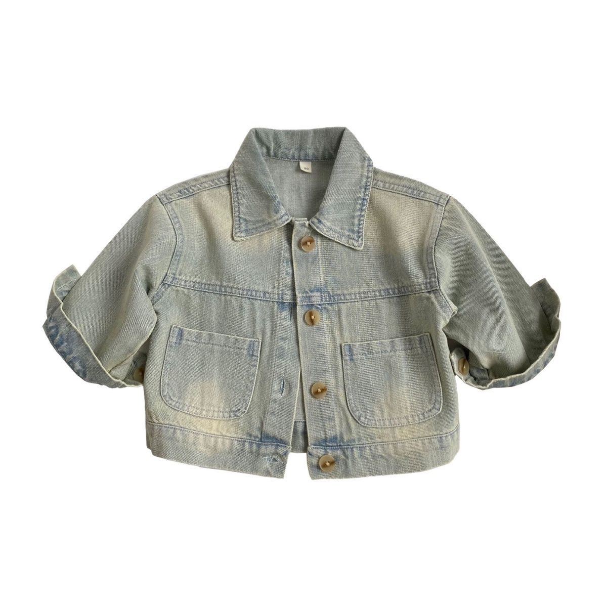 여아 데님 재킷 새로운 스타일 2024 아동 데님 스타일 소년 재킷 베이비 라펠 카디건 캐주얼 탑스토어 가기