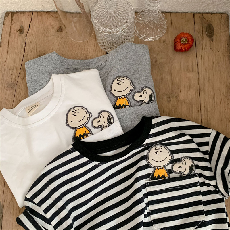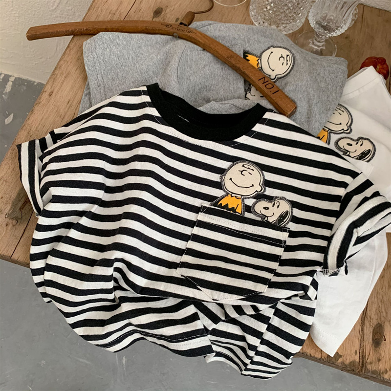 새로운 여름 새 면 반팔 어린이 줄무늬 만화 인쇄 중소 어린이 소년 소녀 아기 티셔츠 최고 트렌디 T스토어 가기