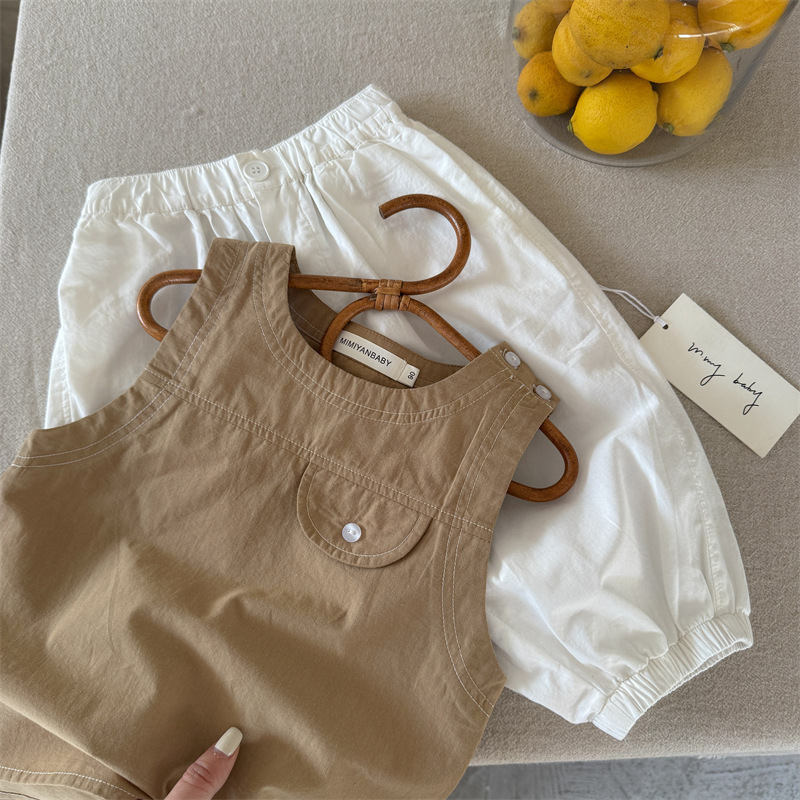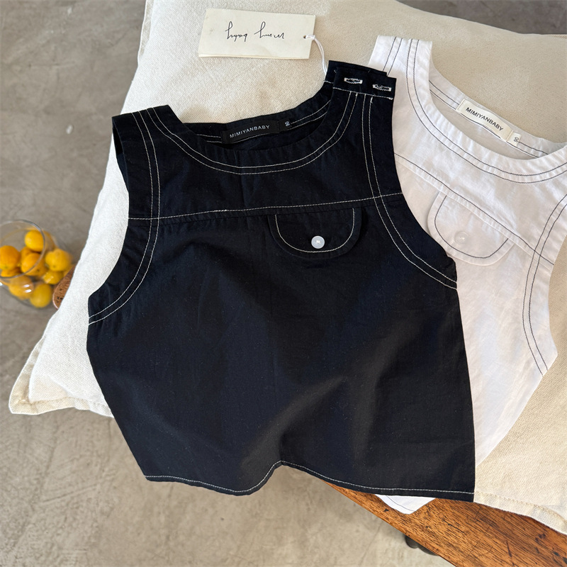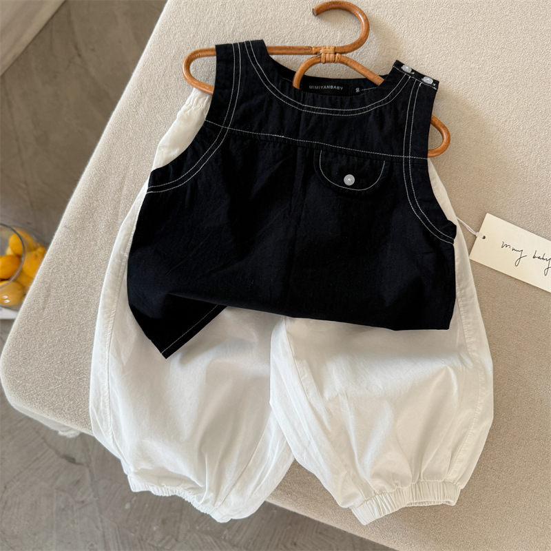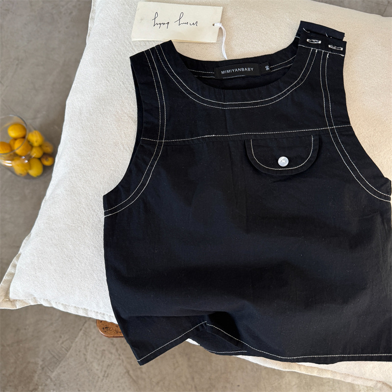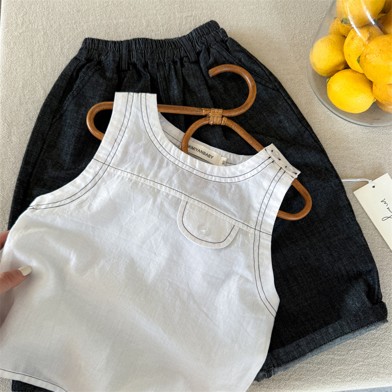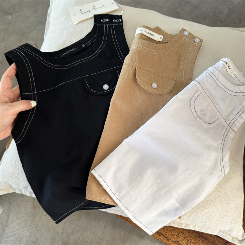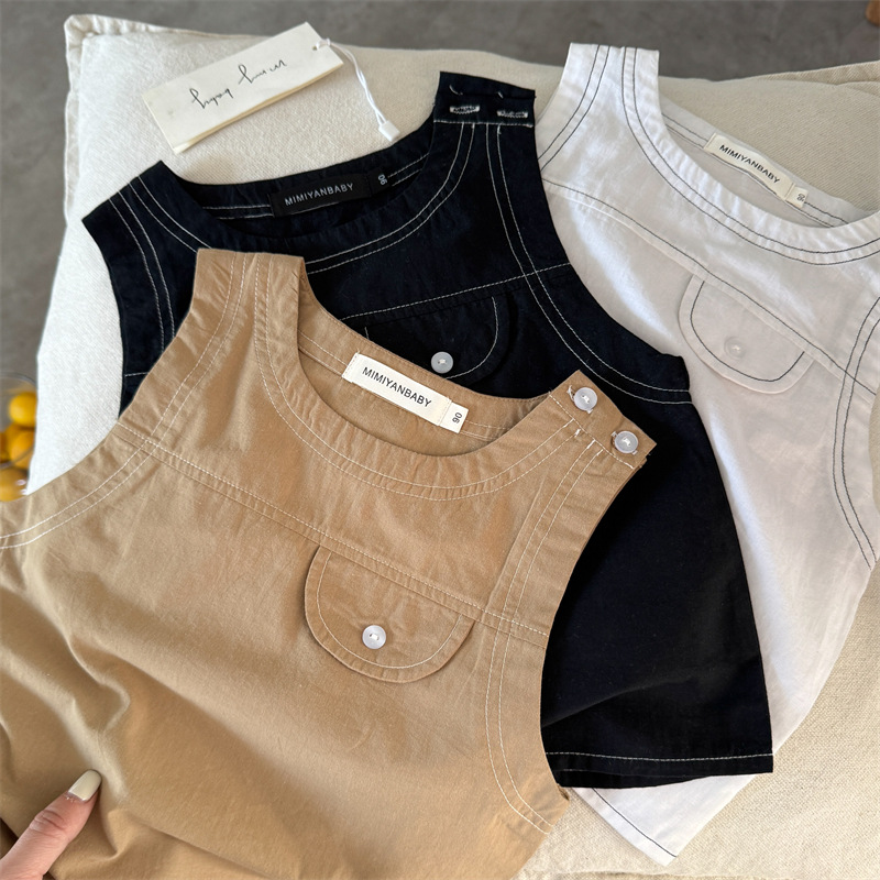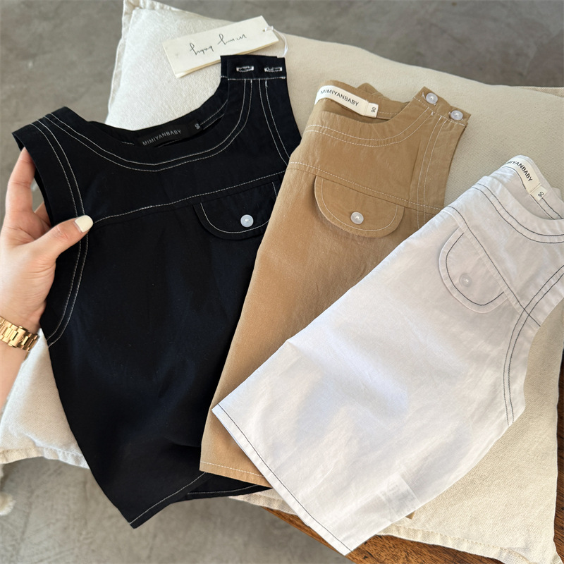 어린이 조끼 2025 Swinting 여름 새로운 솔리드 컬러 라인 남학생과 여자를위한 민소매 옷 아기 올 매치 조끼 트렌디스토어 가기