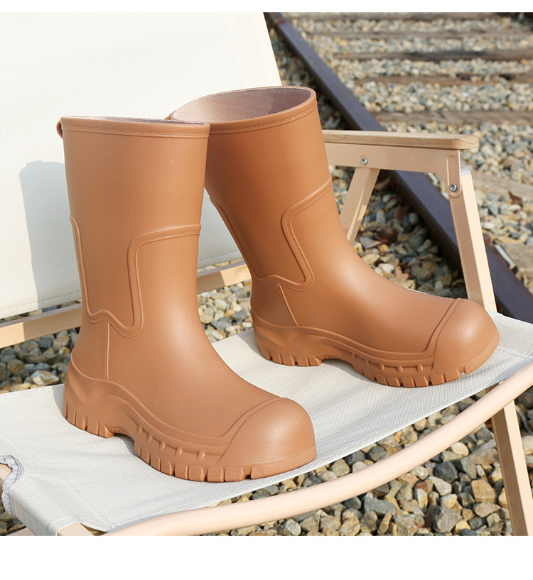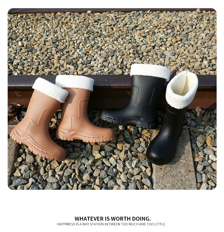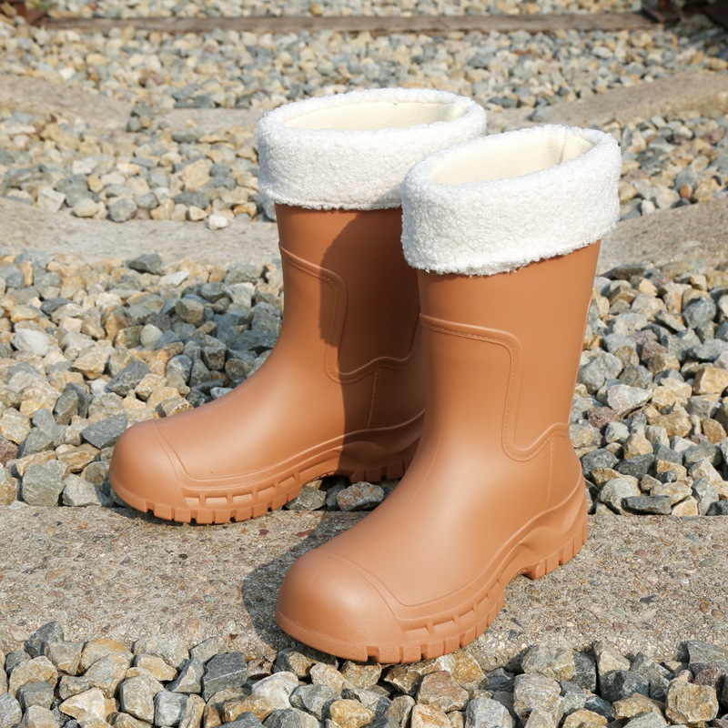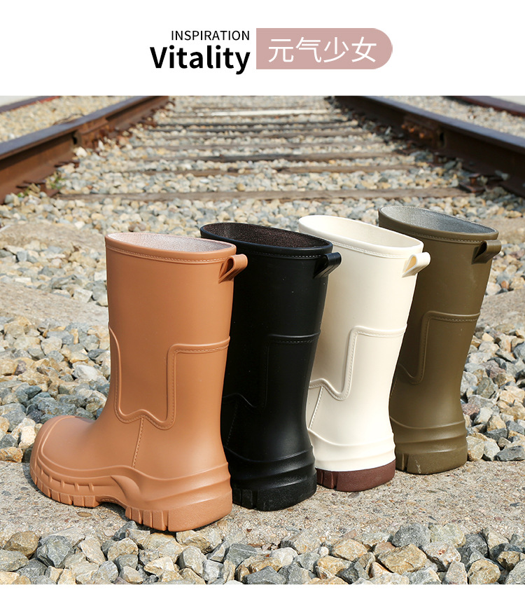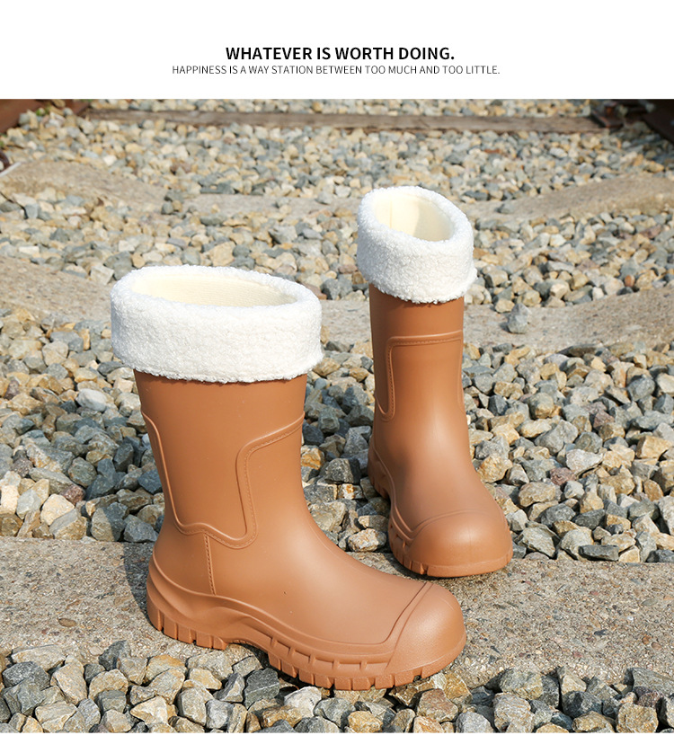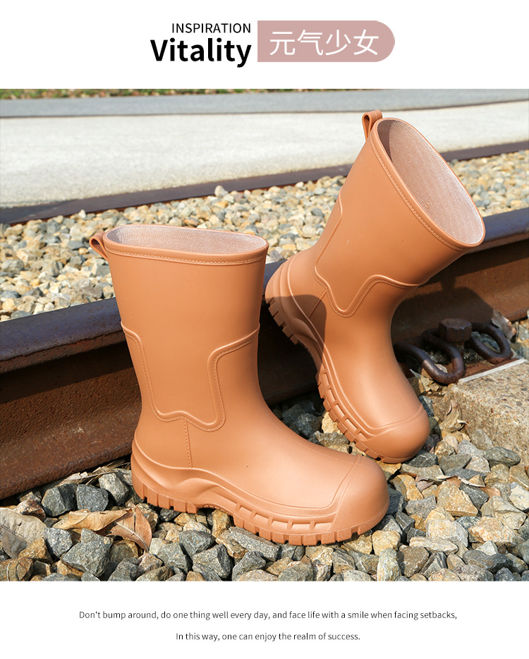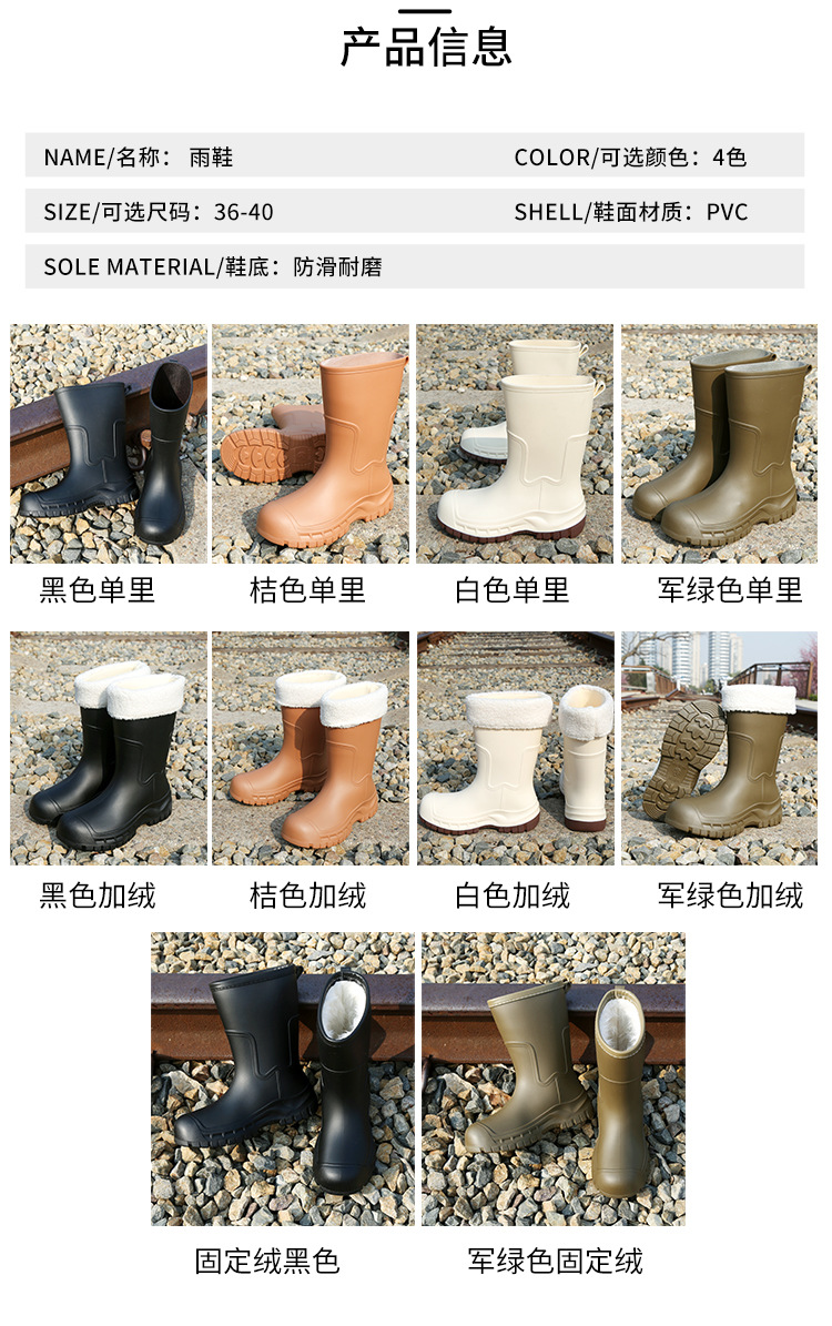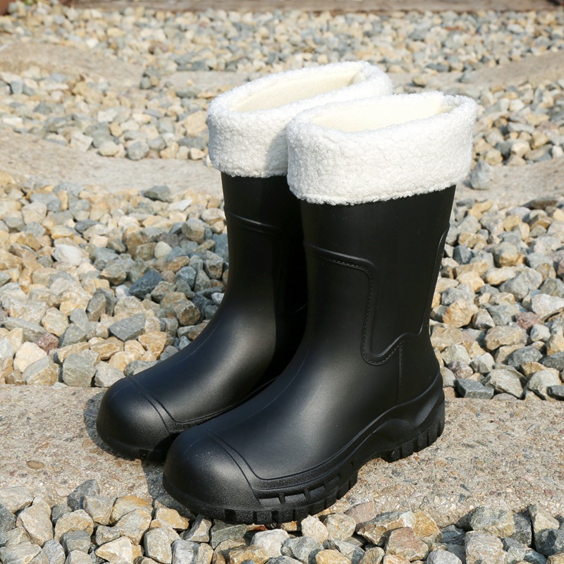 여성용 장화, 중간 길이의 야외 방수 두꺼운 밑창 내마모성 워터 부츠, 일본식 아름다운 비오는 날 미끄럼 방지 플러스 벨벳 주방 고무 신발스토어 가기