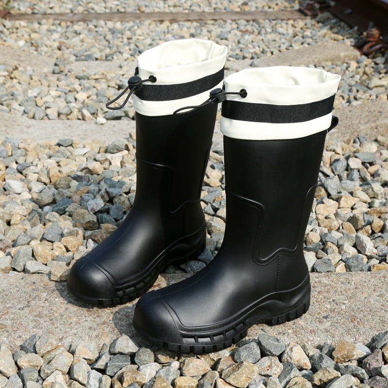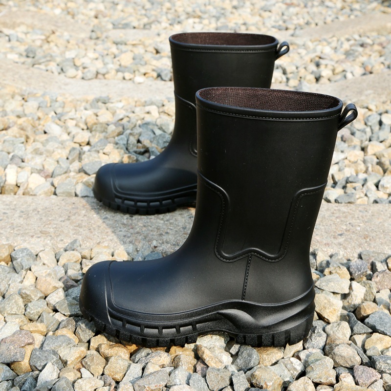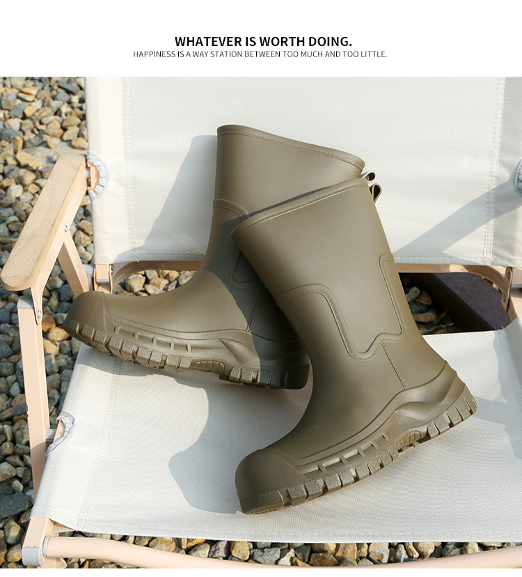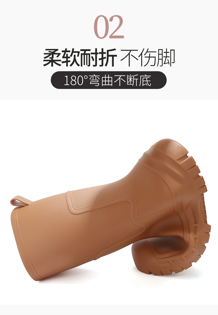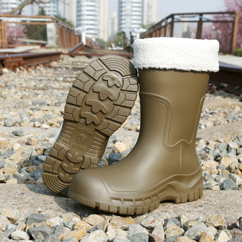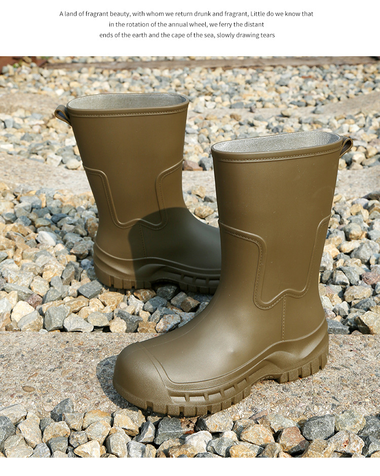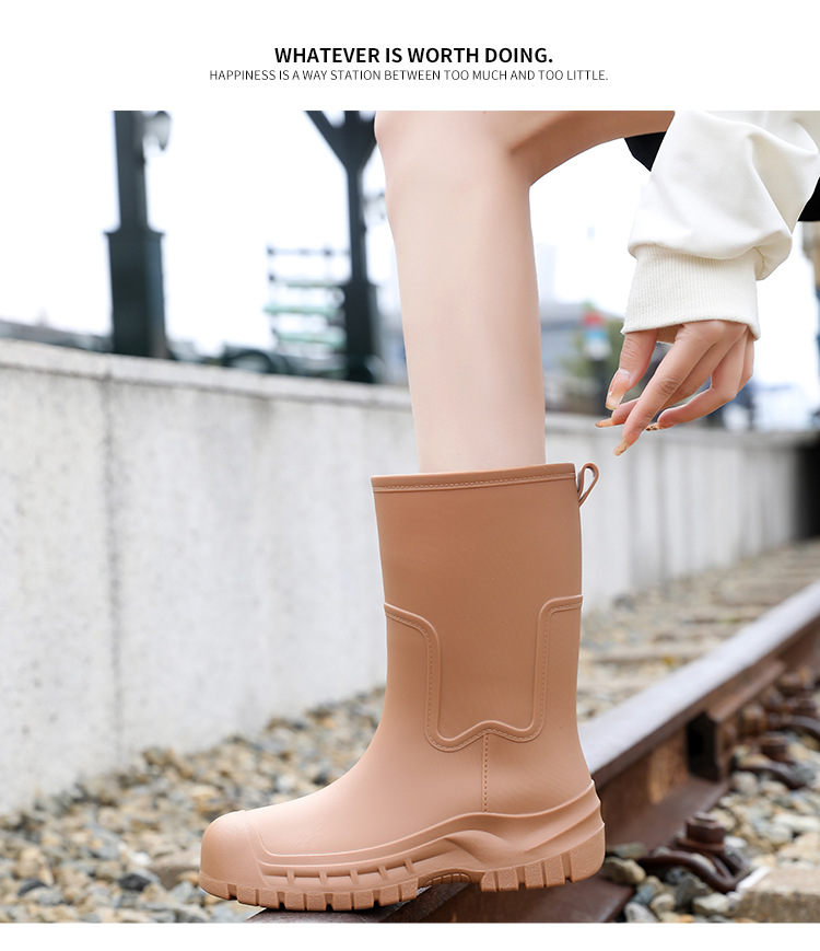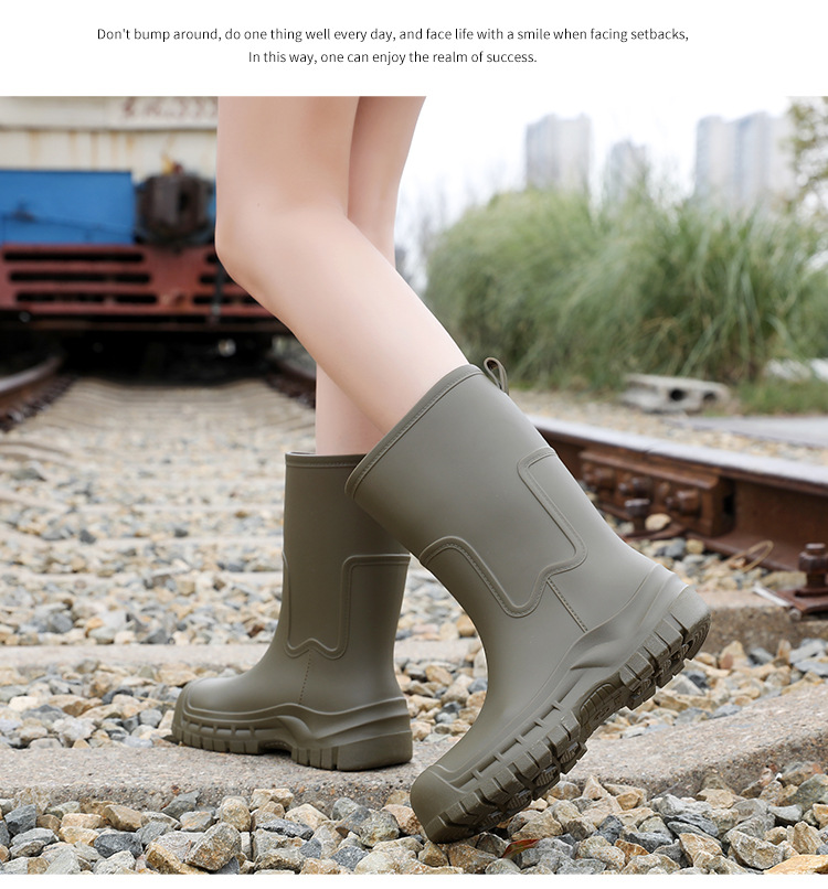 여성용 장화, 중간 길이의 야외 방수 두꺼운 밑창 내마모성 워터 부츠, 일본식 아름다운 비오는 날 미끄럼 방지 플러스 벨벳 주방 고무 신발스토어 가기