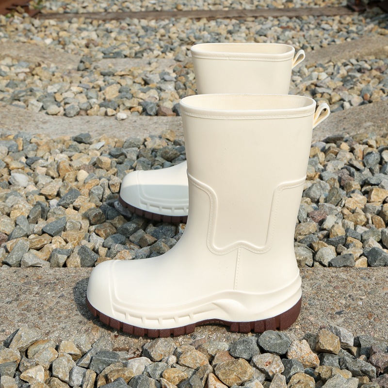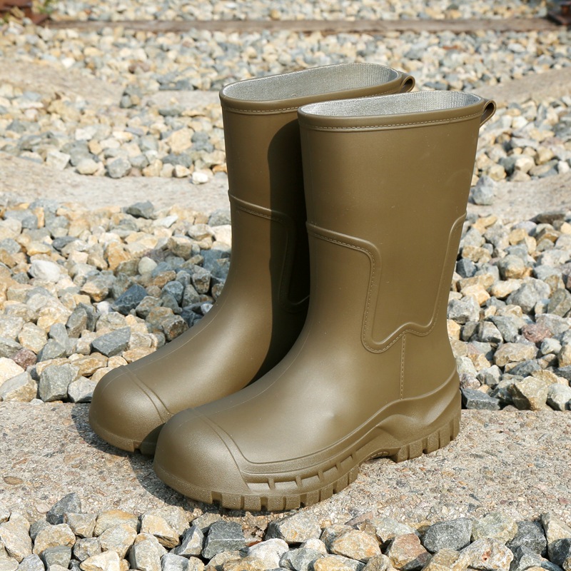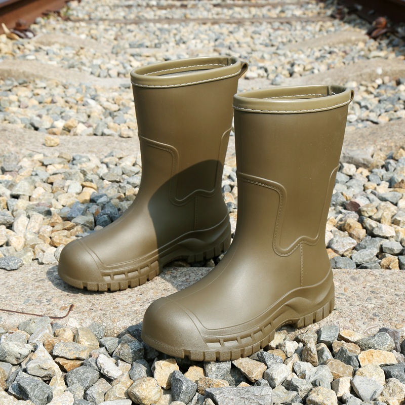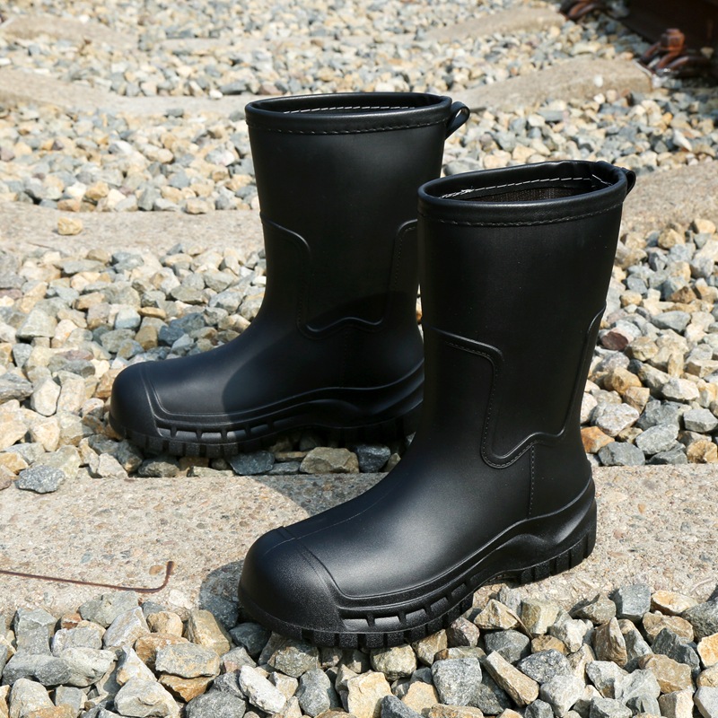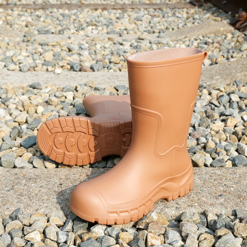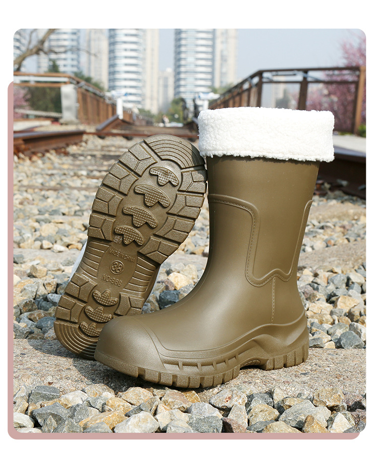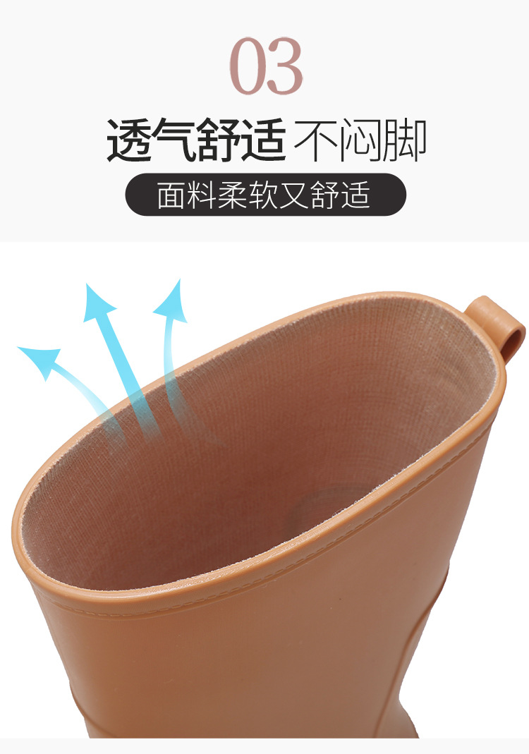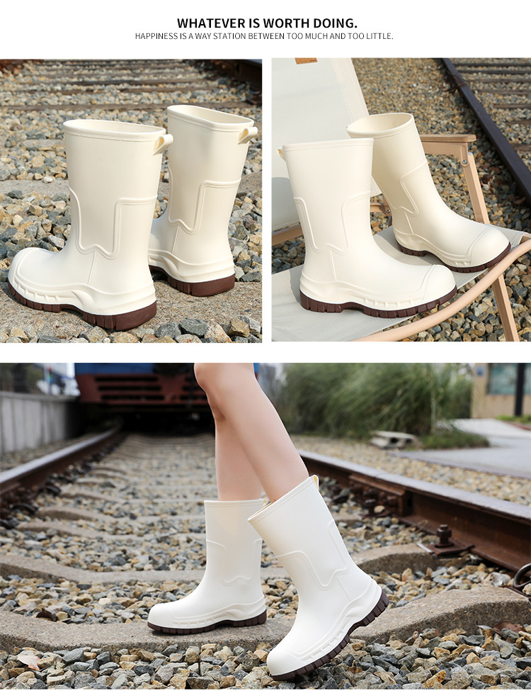 여성용 장화, 중간 길이의 야외 방수 두꺼운 밑창 내마모성 워터 부츠, 일본식 아름다운 비오는 날 미끄럼 방지 플러스 벨벳 주방 고무 신발스토어 가기