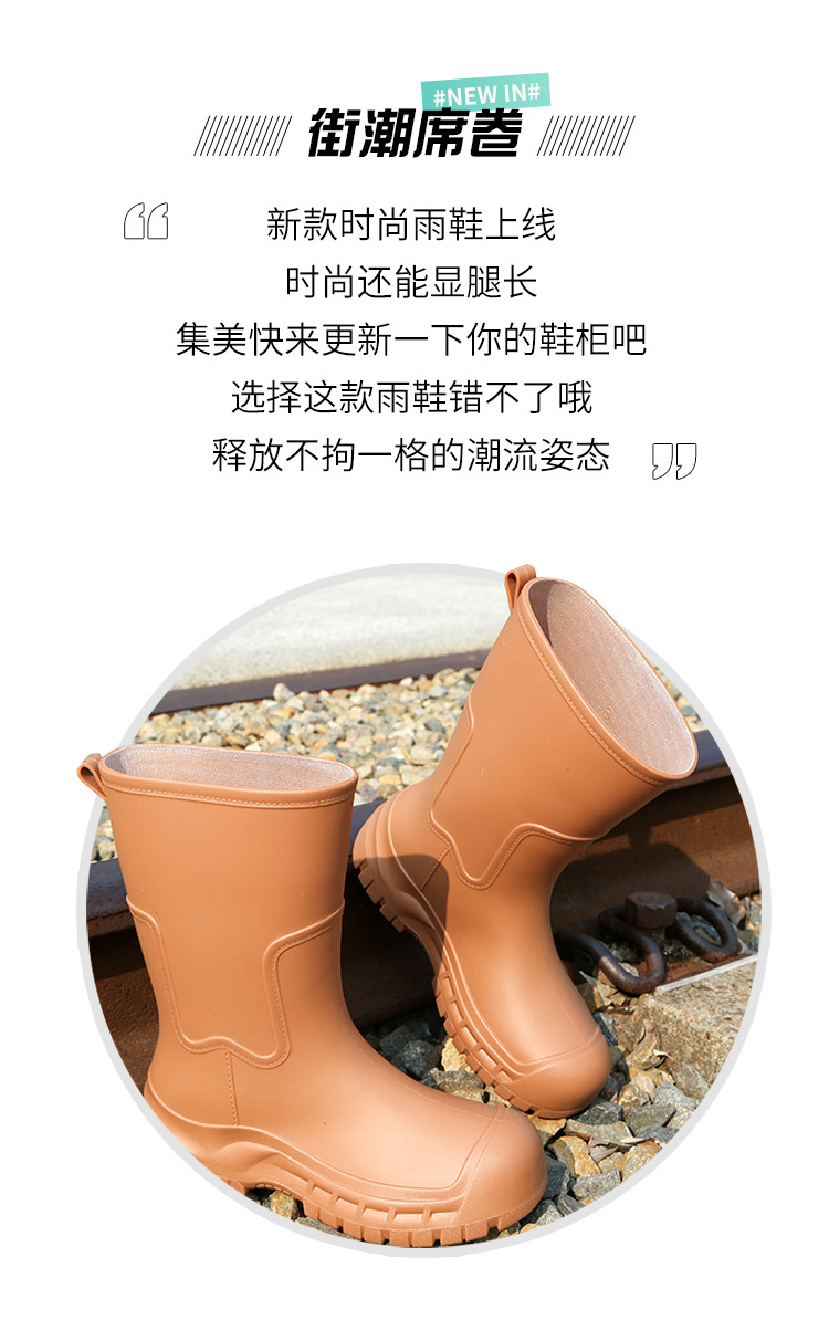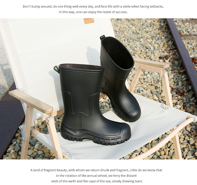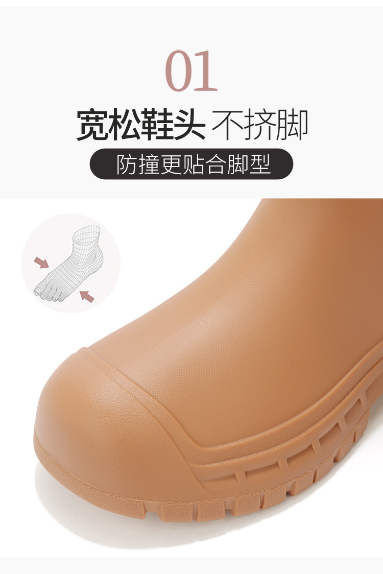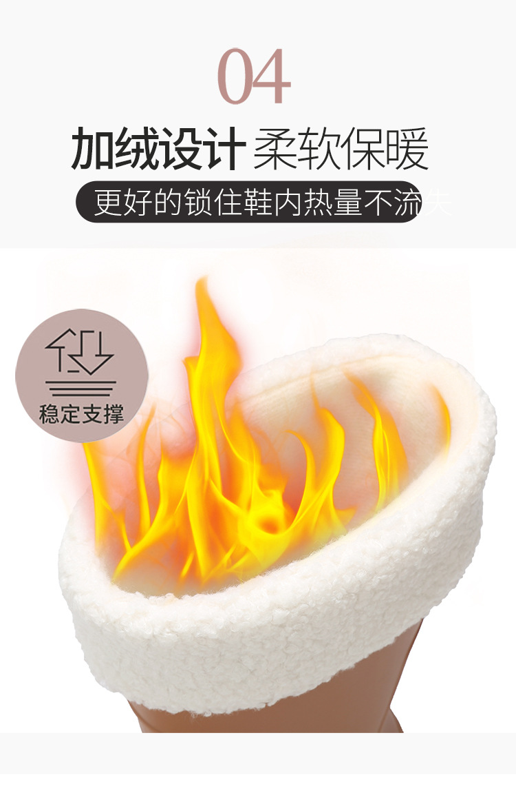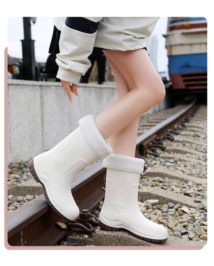 여성용 장화, 중간 길이의 야외 방수 두꺼운 밑창 내마모성 워터 부츠, 일본식 아름다운 비오는 날 미끄럼 방지 플러스 벨벳 주방 고무 신발
