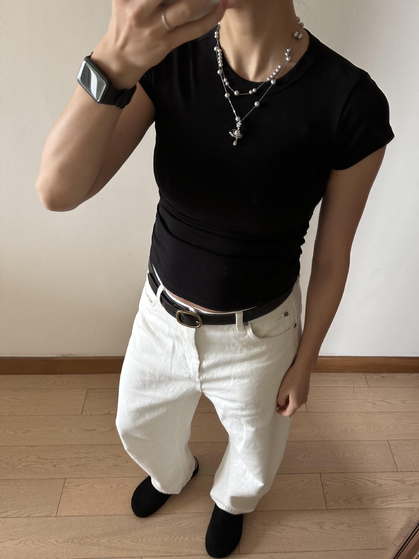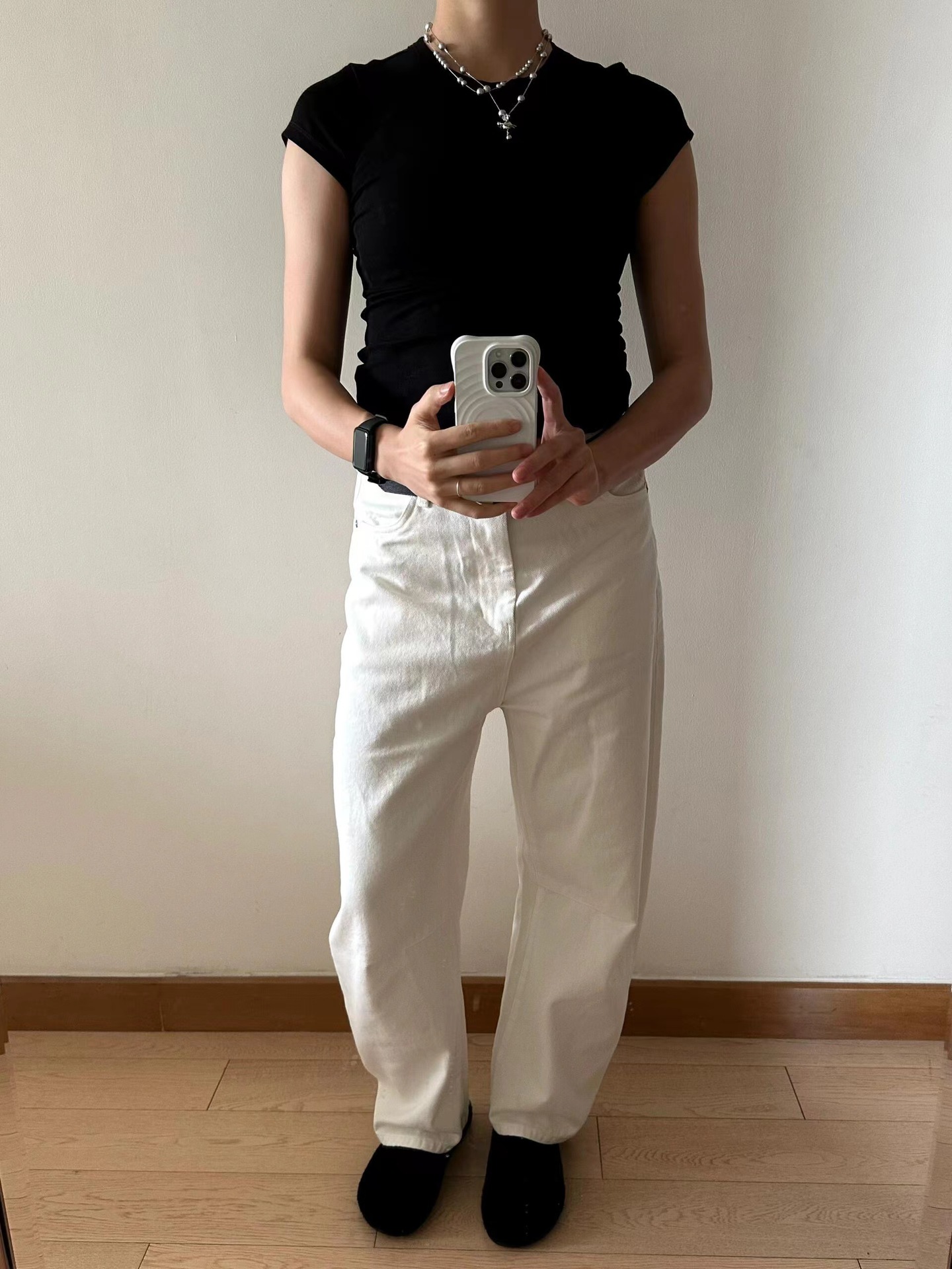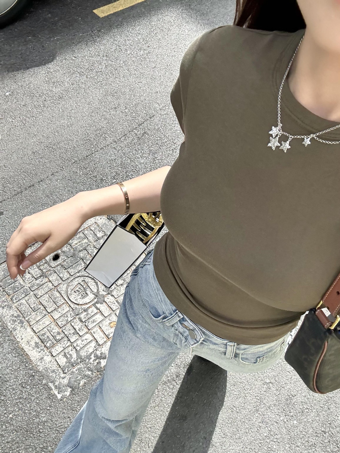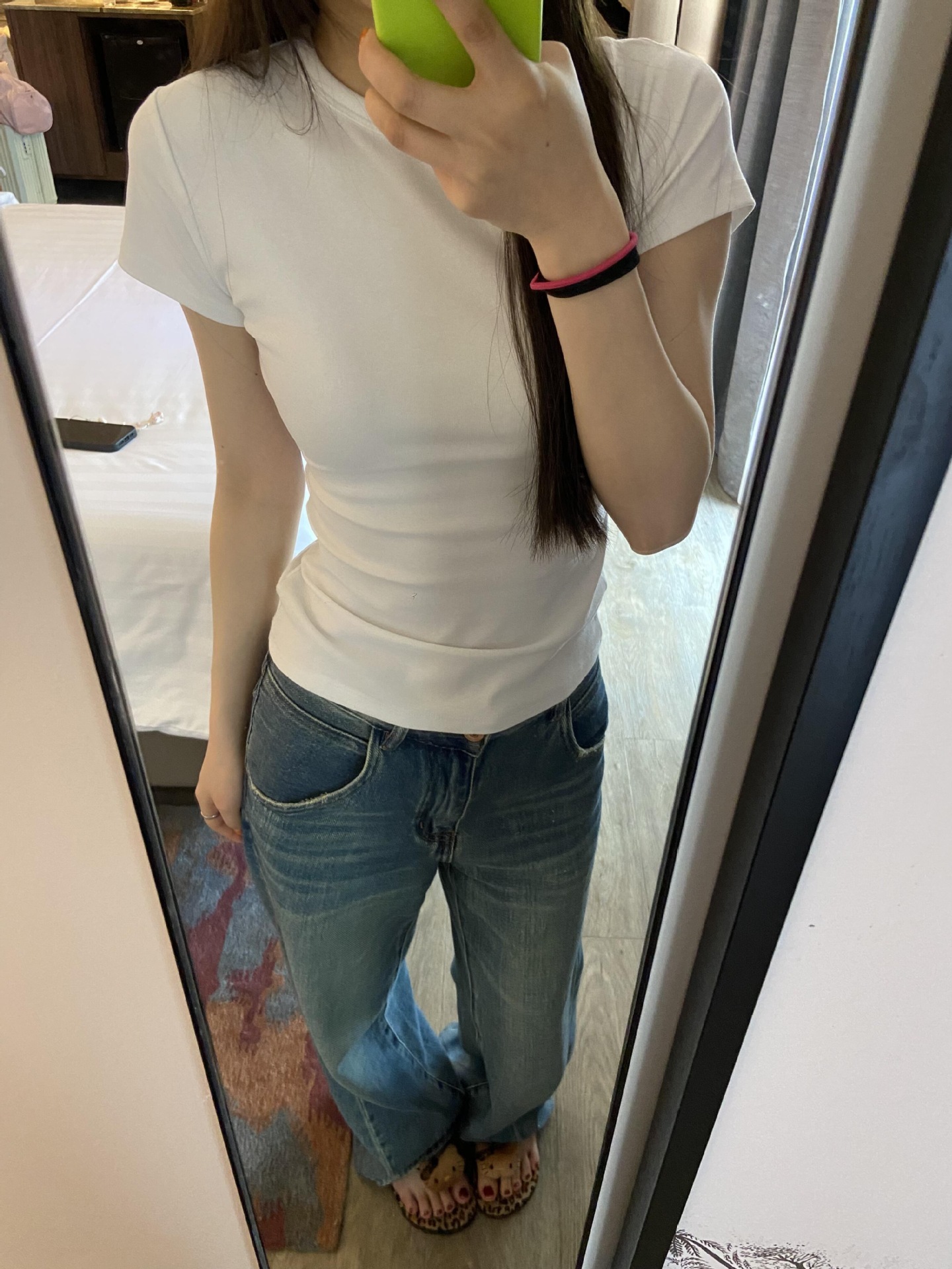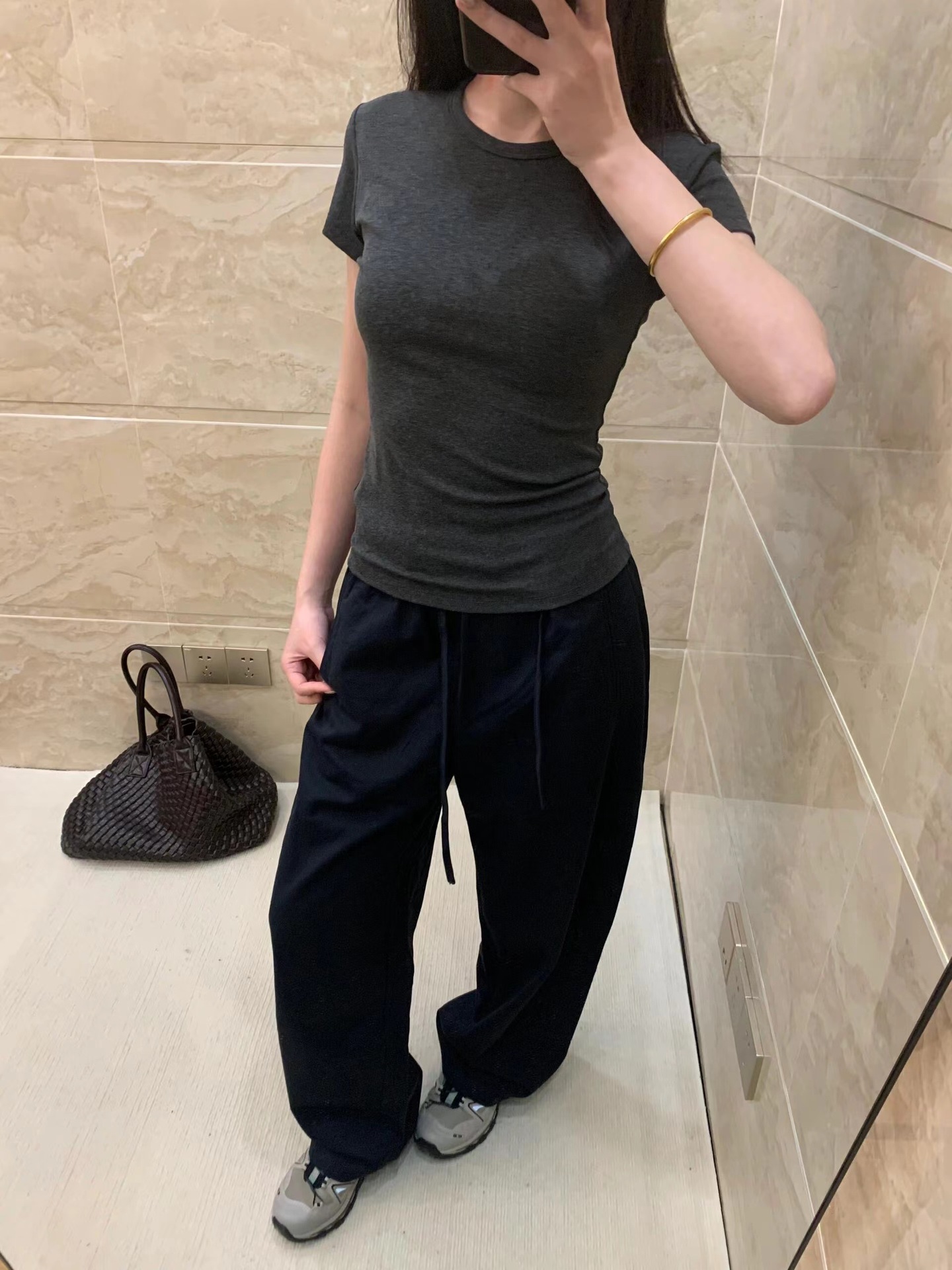 ·AT刺绣沙漏T恤版型较这款收腰略宽松些 此款掐腰效果更明显些