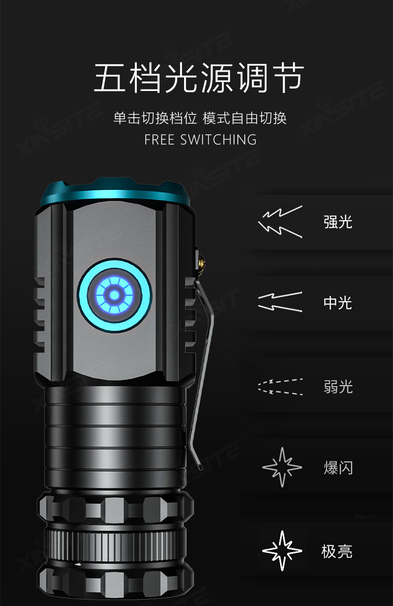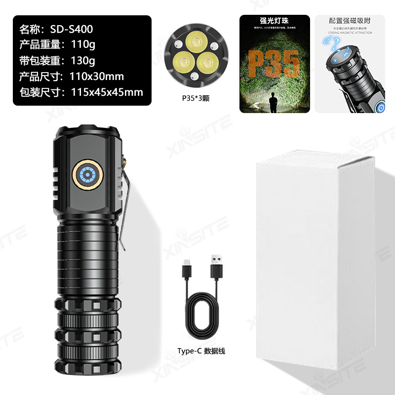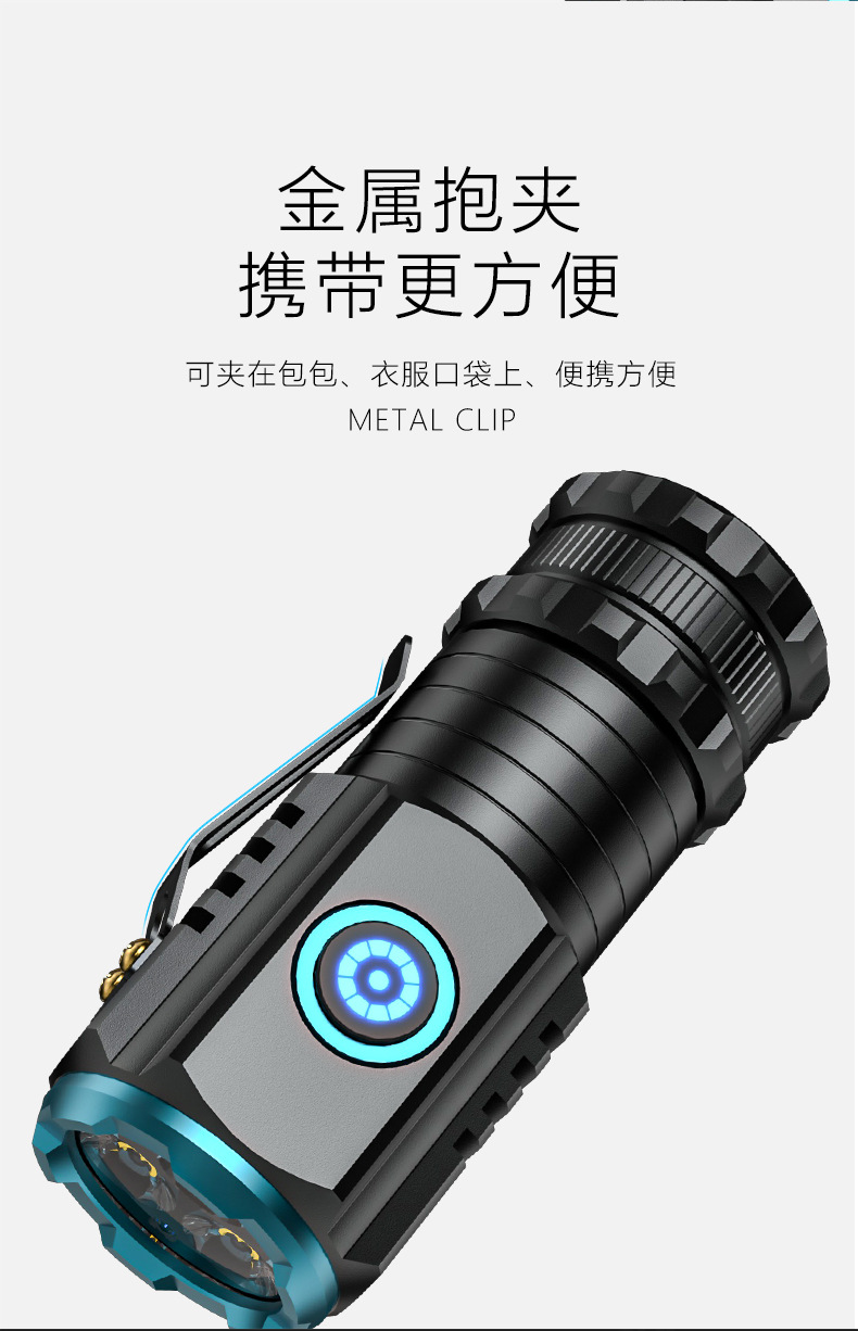 ≌에글슨 강력한 조명 손전등 충전식 가정용 야외 등산 장거리 작업등 미니 휴대용 초고휘도 전투등