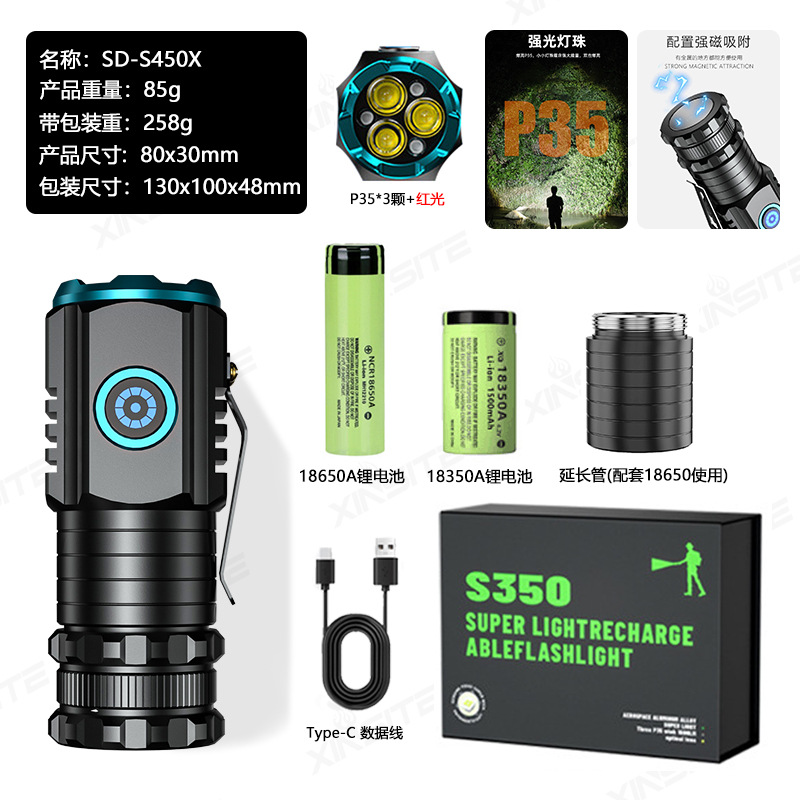 • ✷✠ฅฅ✠✷S450X 백색 + 적색광 (18350A + 연장 튜브 + 18650A) 배터리 수명 구성✷✠ฅฅ✠✷