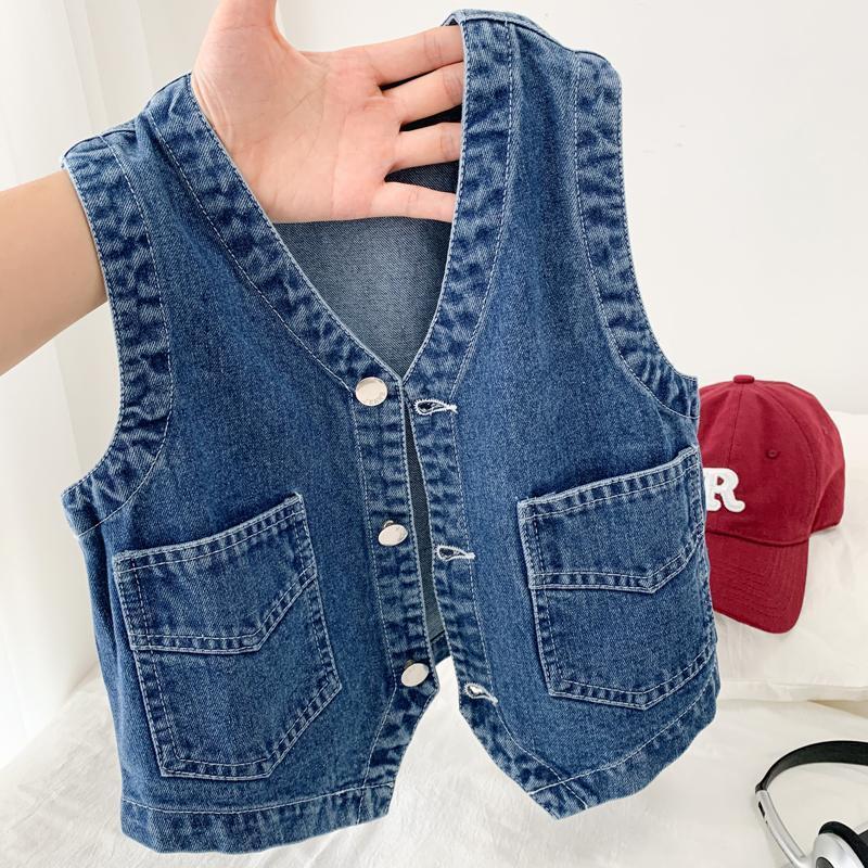 남아 데님 조끼, 새로운 스타일, 한국 스타일, 봄, 가을 의류, 패셔너블하고 멋진 아동 캐주얼 베이비 조끼, 트렌디한 아우터웨어스토어 가기