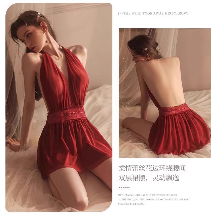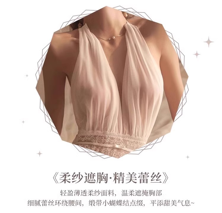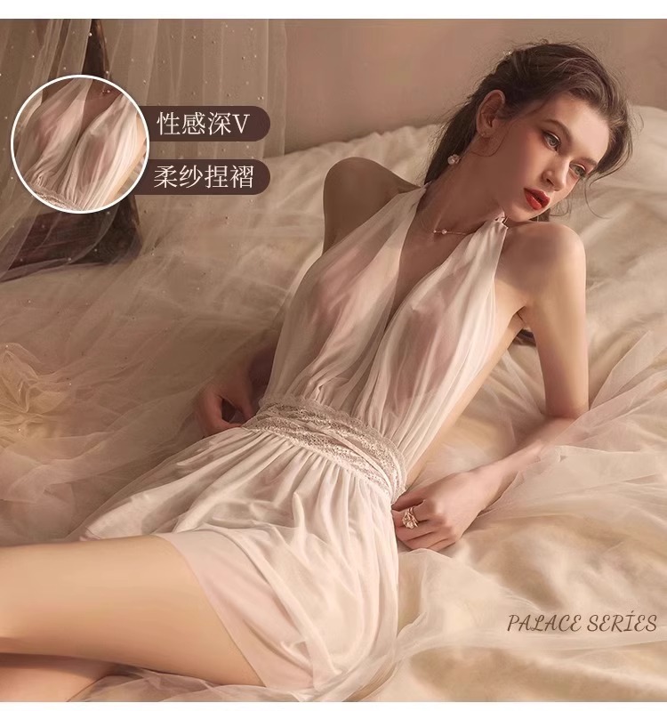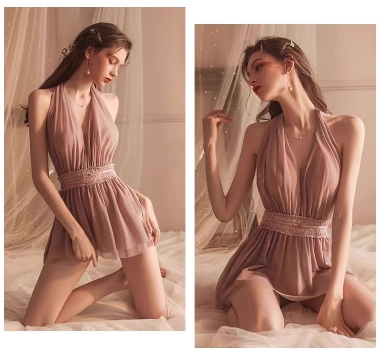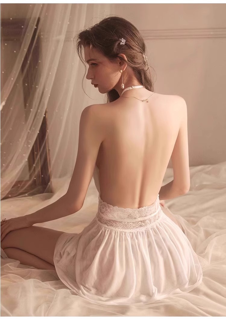 여성용 섹시 잠옷, 여름 고급 프렌치 스타일 메쉬 레이스 백리스 슬립 드레스, 순수한 섹시 루어스이크 데이트 잠옷스토어 가기