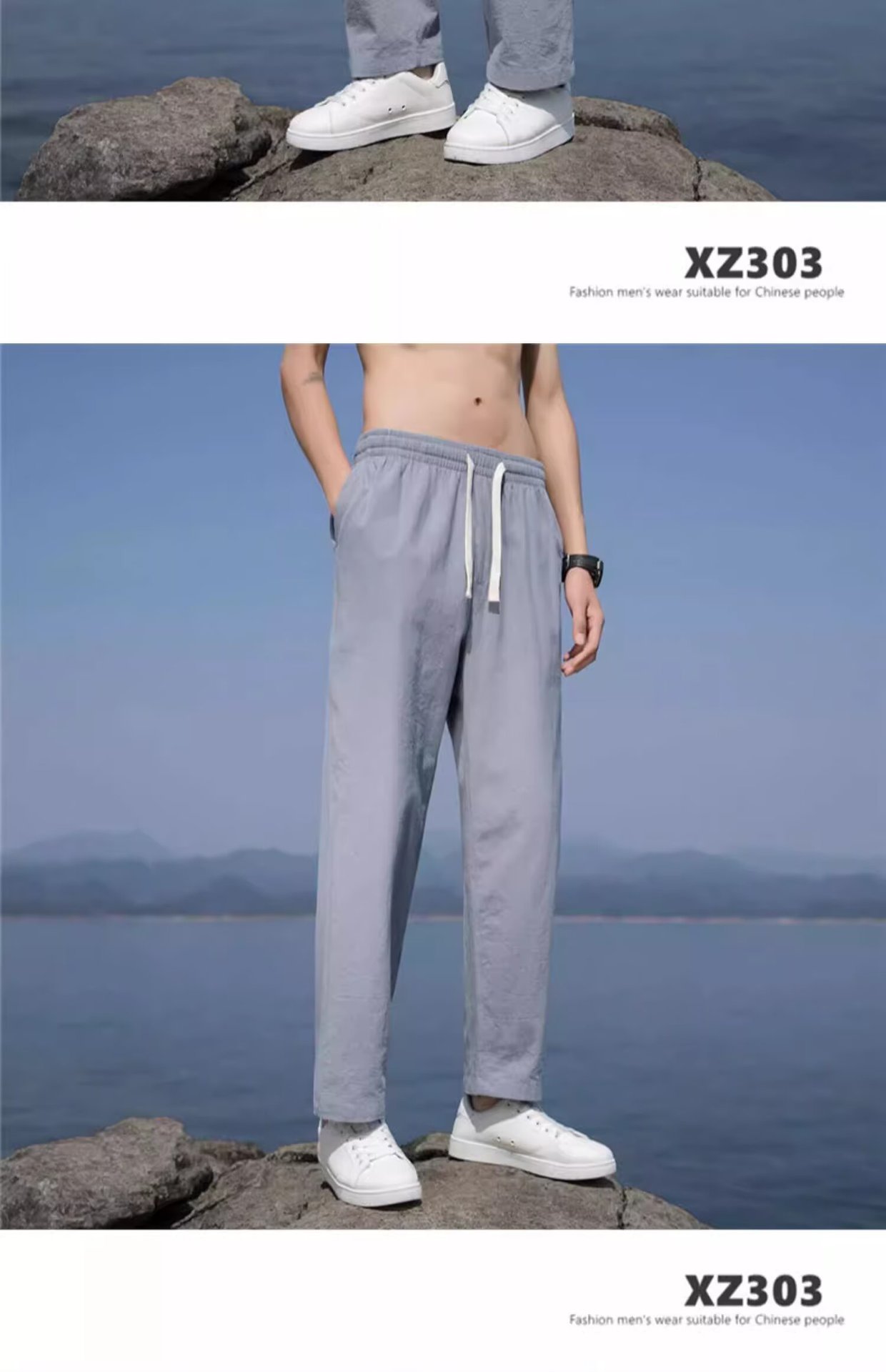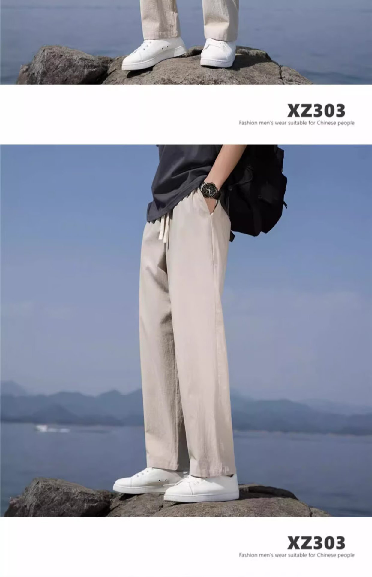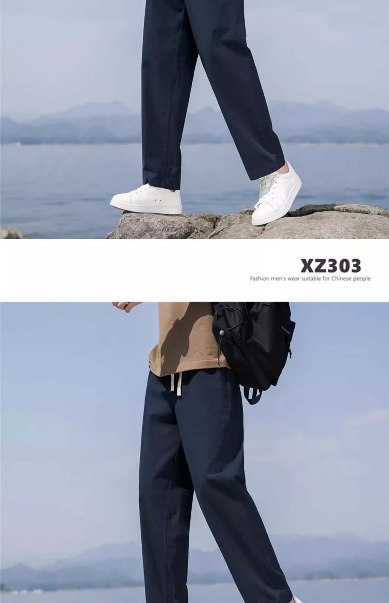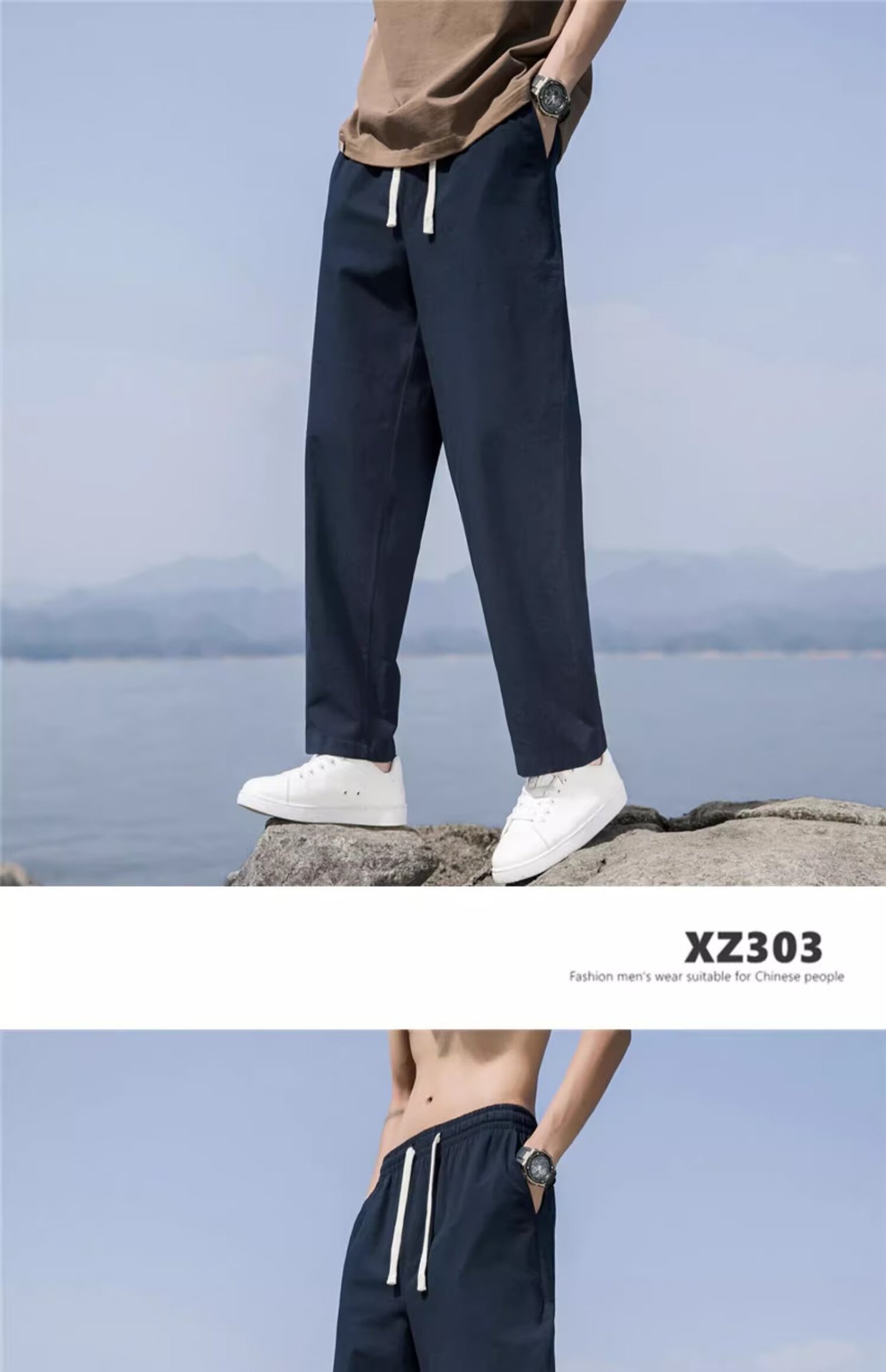 리넨 바지 남자 2025 년 새로운 여름 면화 및 리넨 바지 얇은 데프 와이드 다리 느슨한 올매치 스트레이트 캐주얼 바지스토어 가기