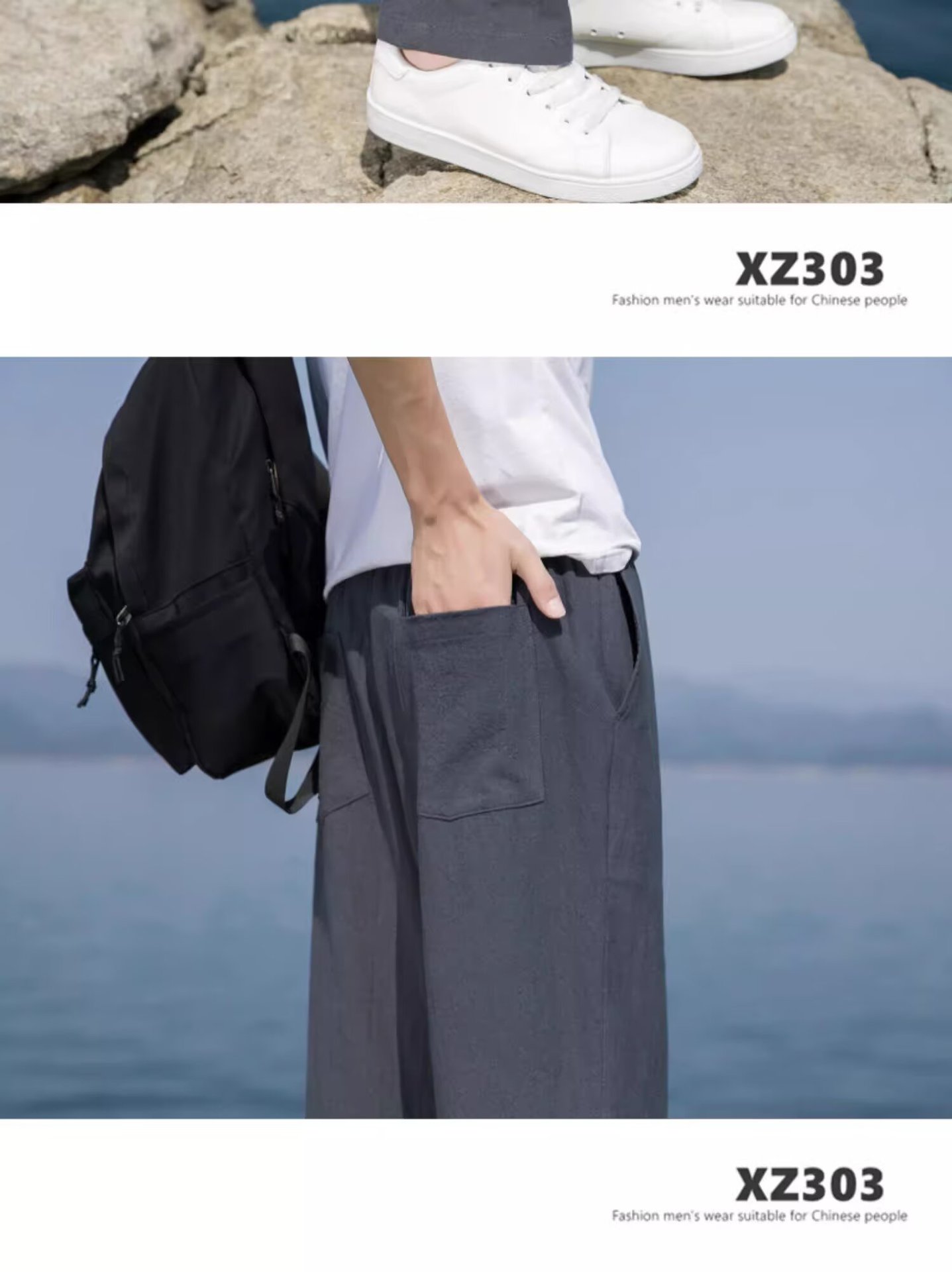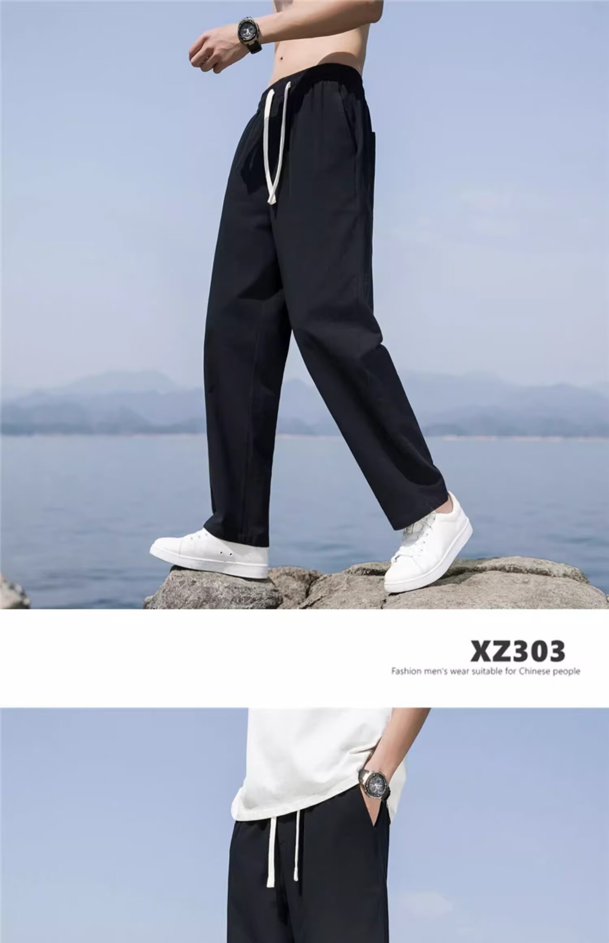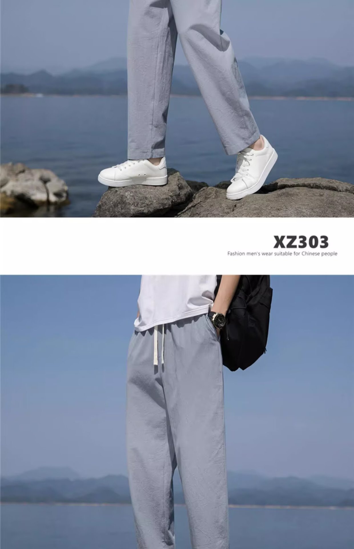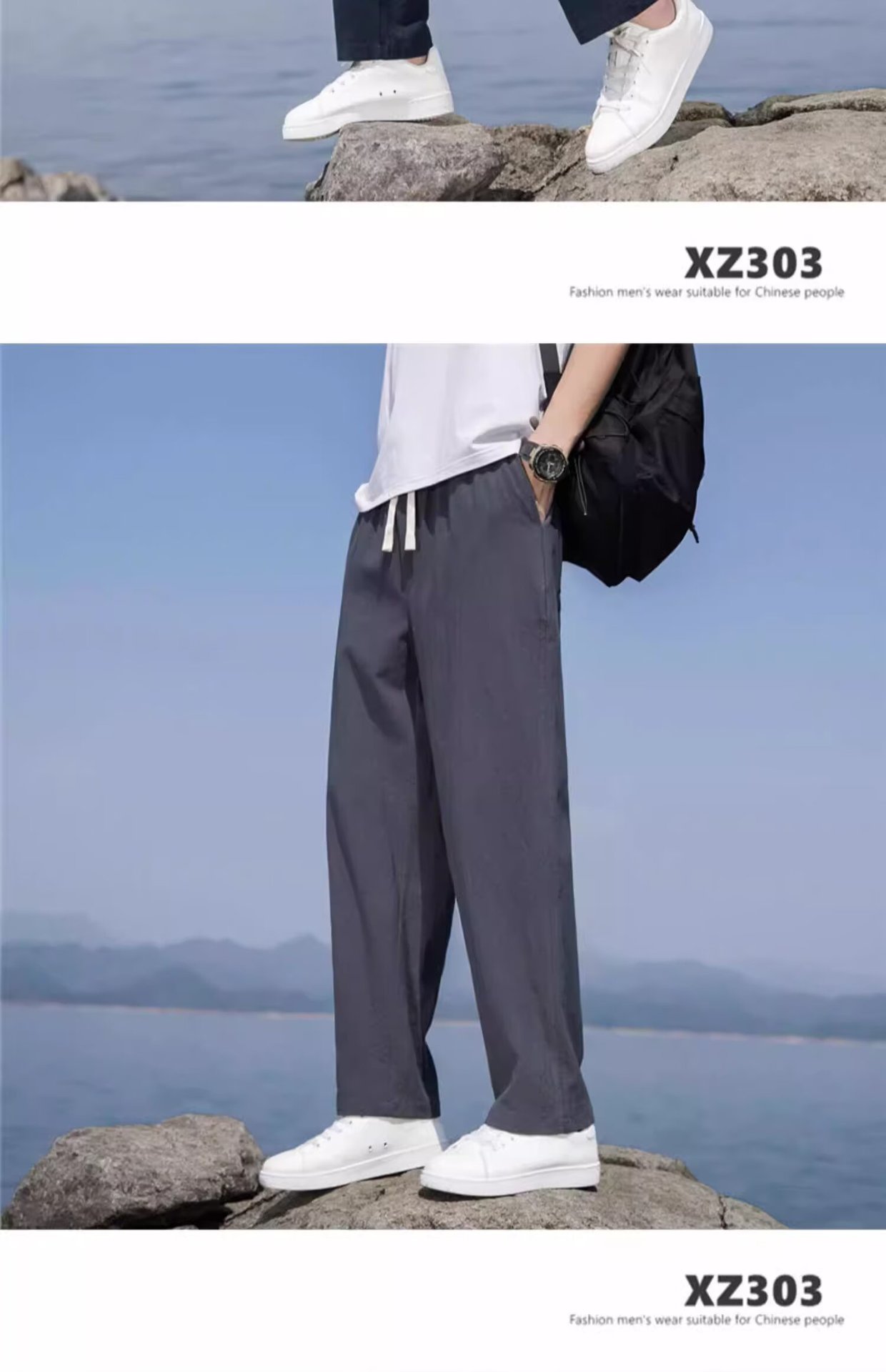 리넨 바지 남자 2025 년 새로운 여름 면화 및 리넨 바지 얇은 데프 와이드 다리 느슨한 올매치 스트레이트 캐주얼 바지스토어 가기