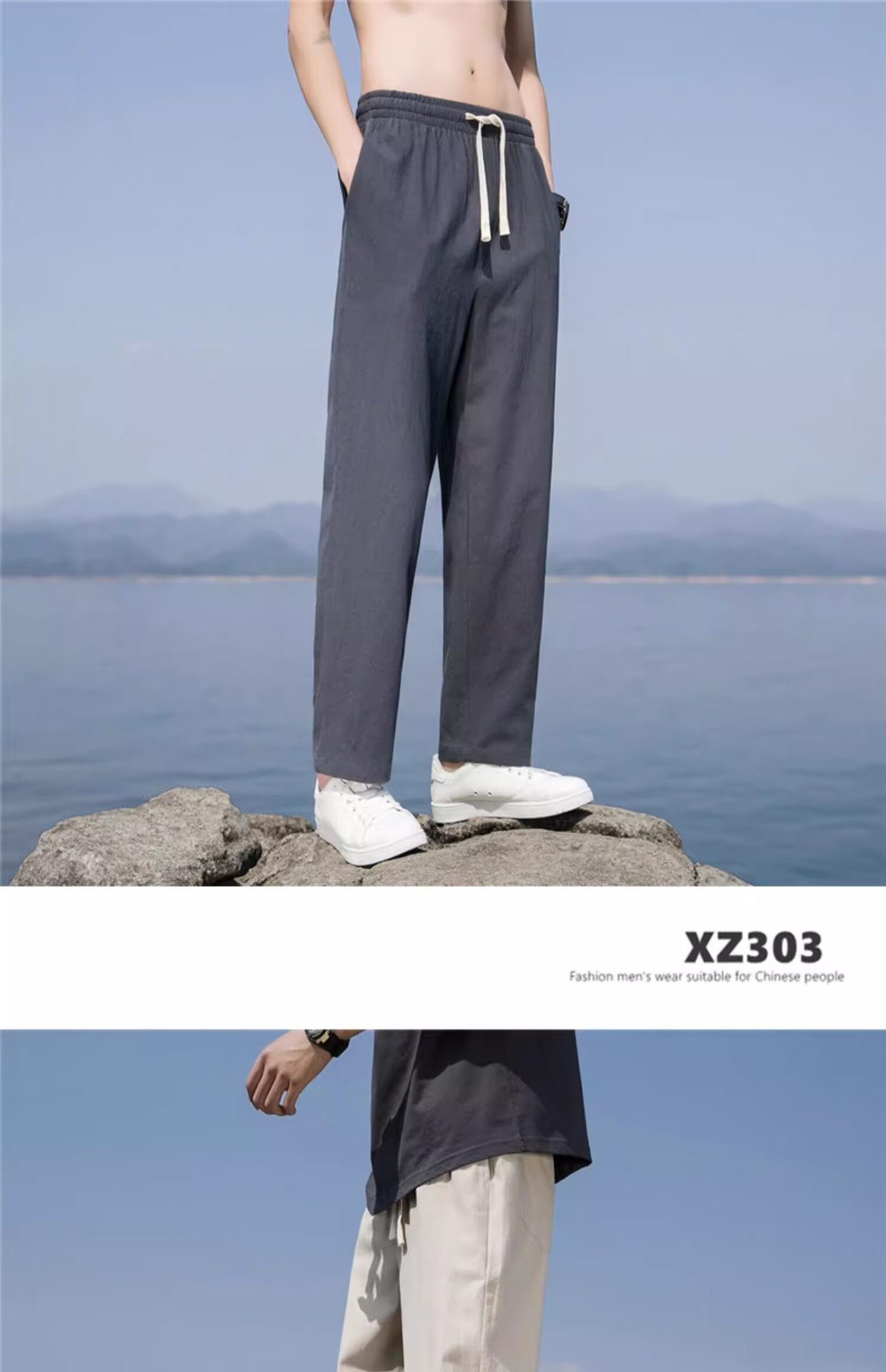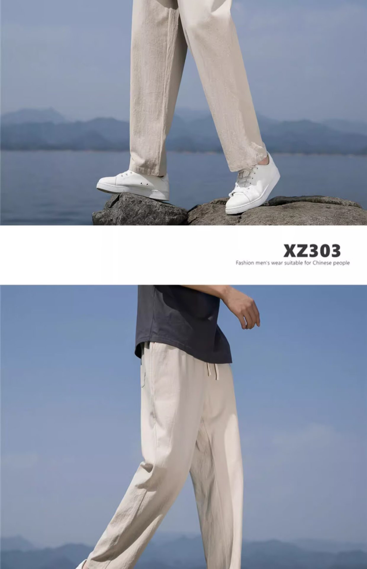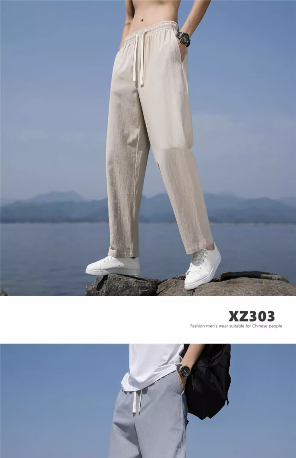 리넨 바지 남자 2025 년 새로운 여름 면화 및 리넨 바지 얇은 데프 와이드 다리 느슨한 올매치 스트레이트 캐주얼 바지