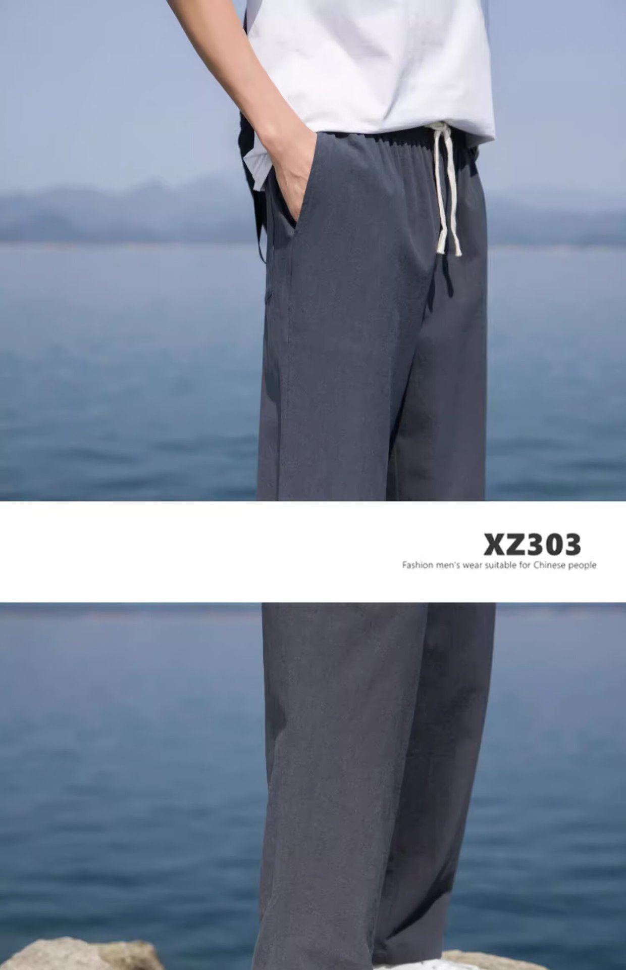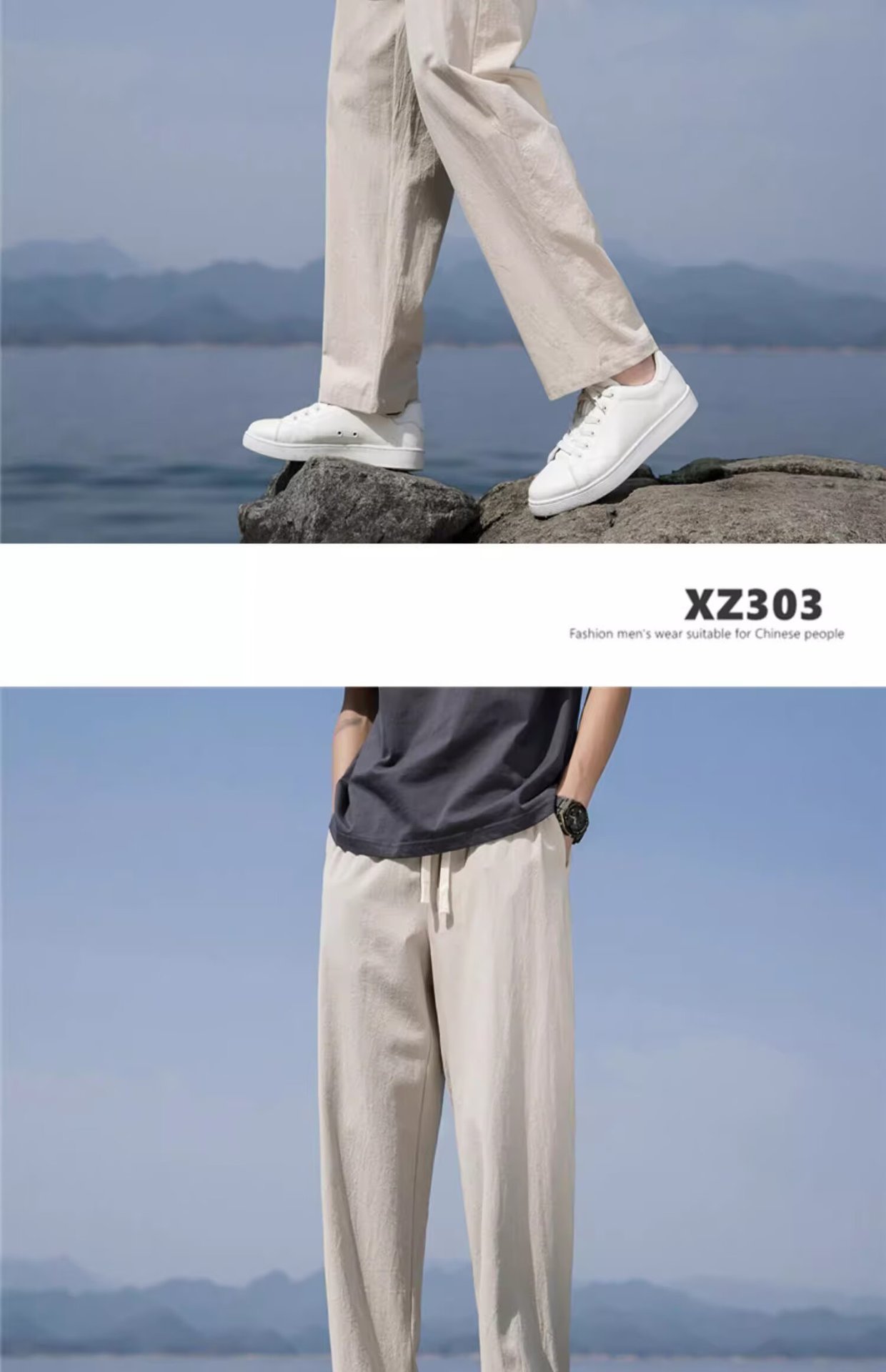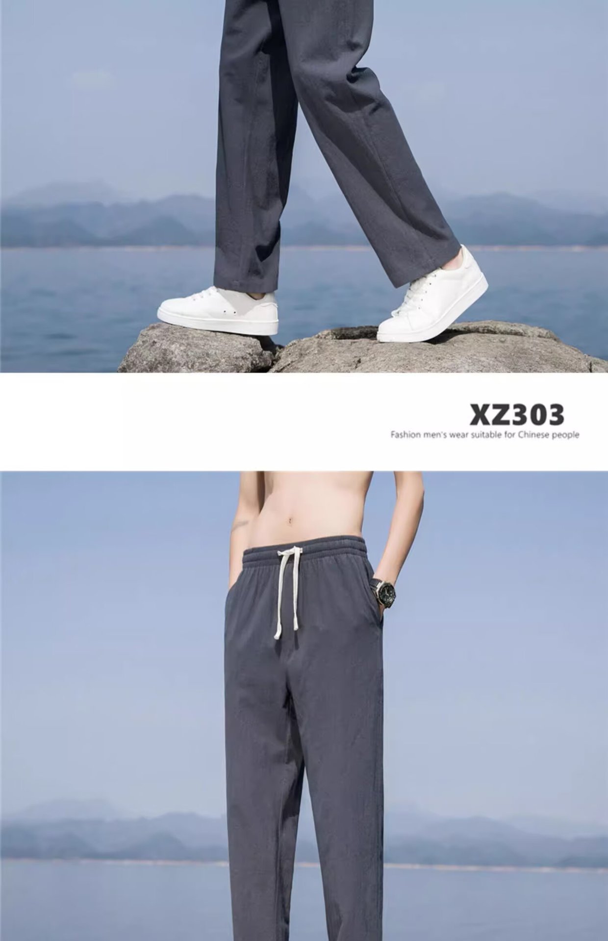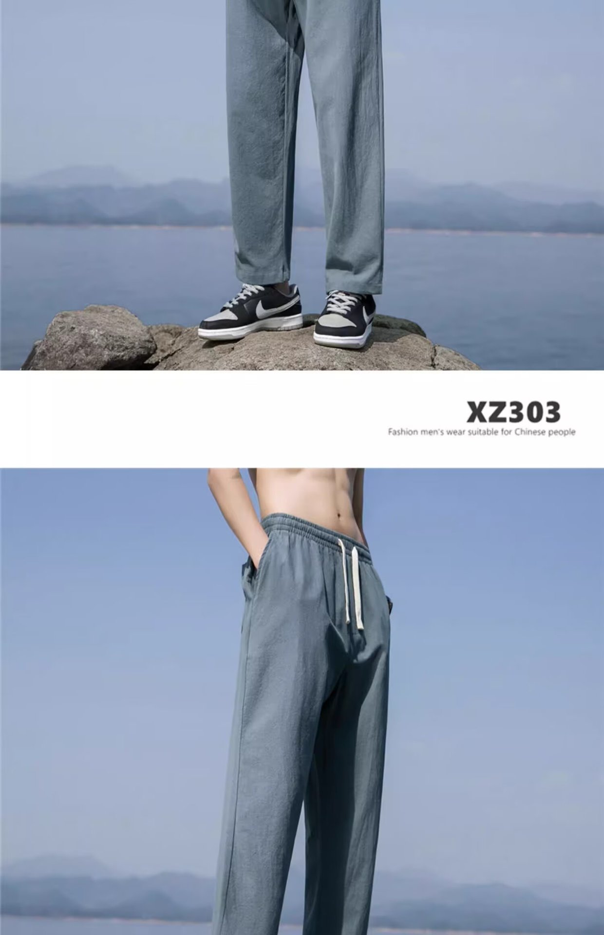 리넨 바지 남자 2025 년 새로운 여름 면화 및 리넨 바지 얇은 데프 와이드 다리 느슨한 올매치 스트레이트 캐주얼 바지