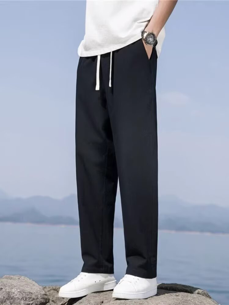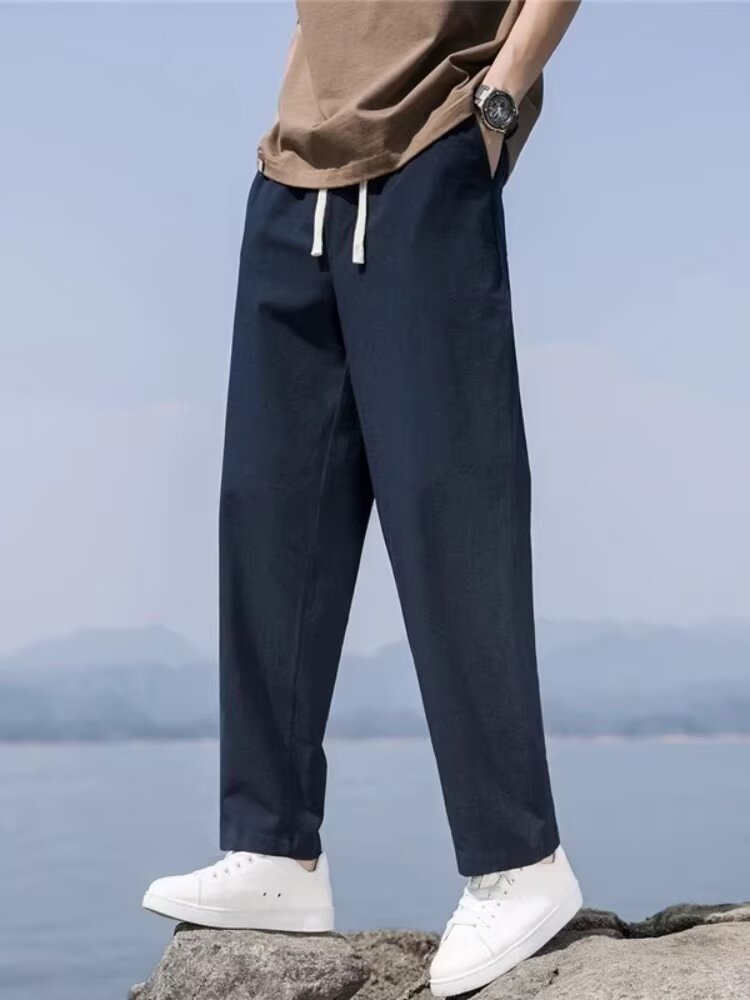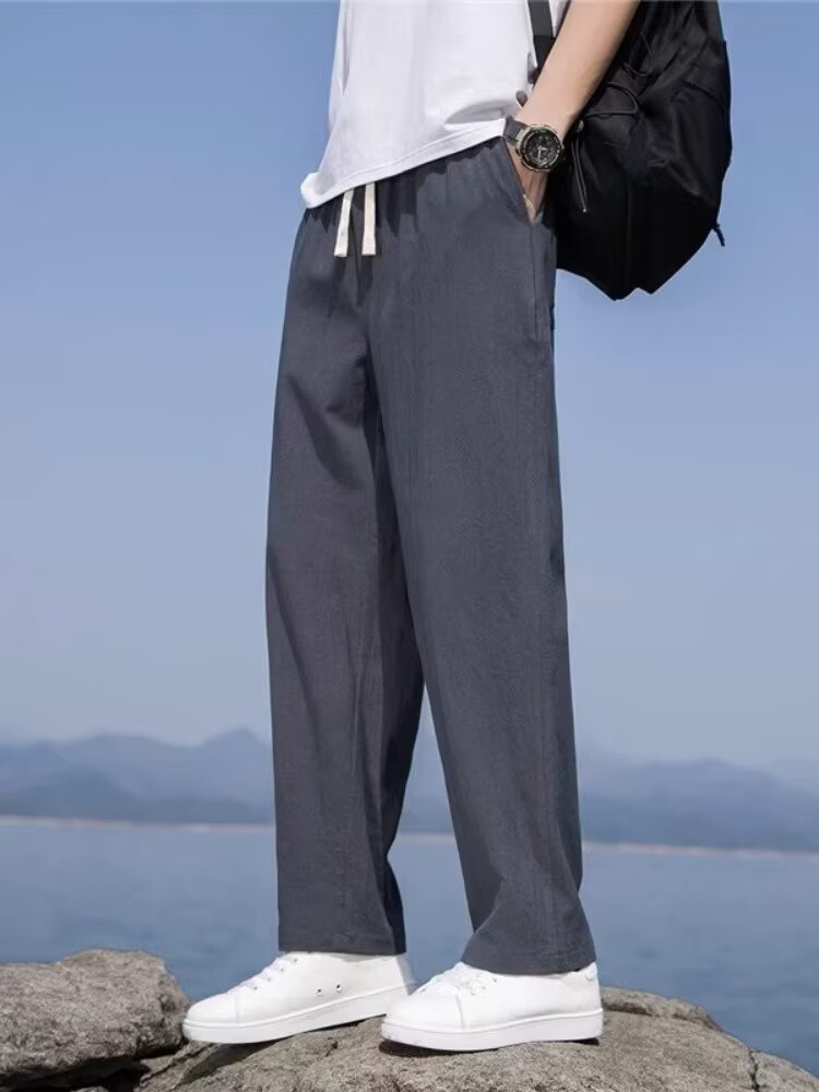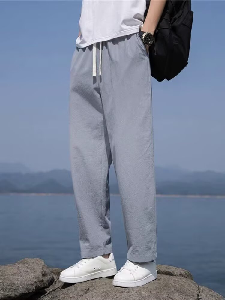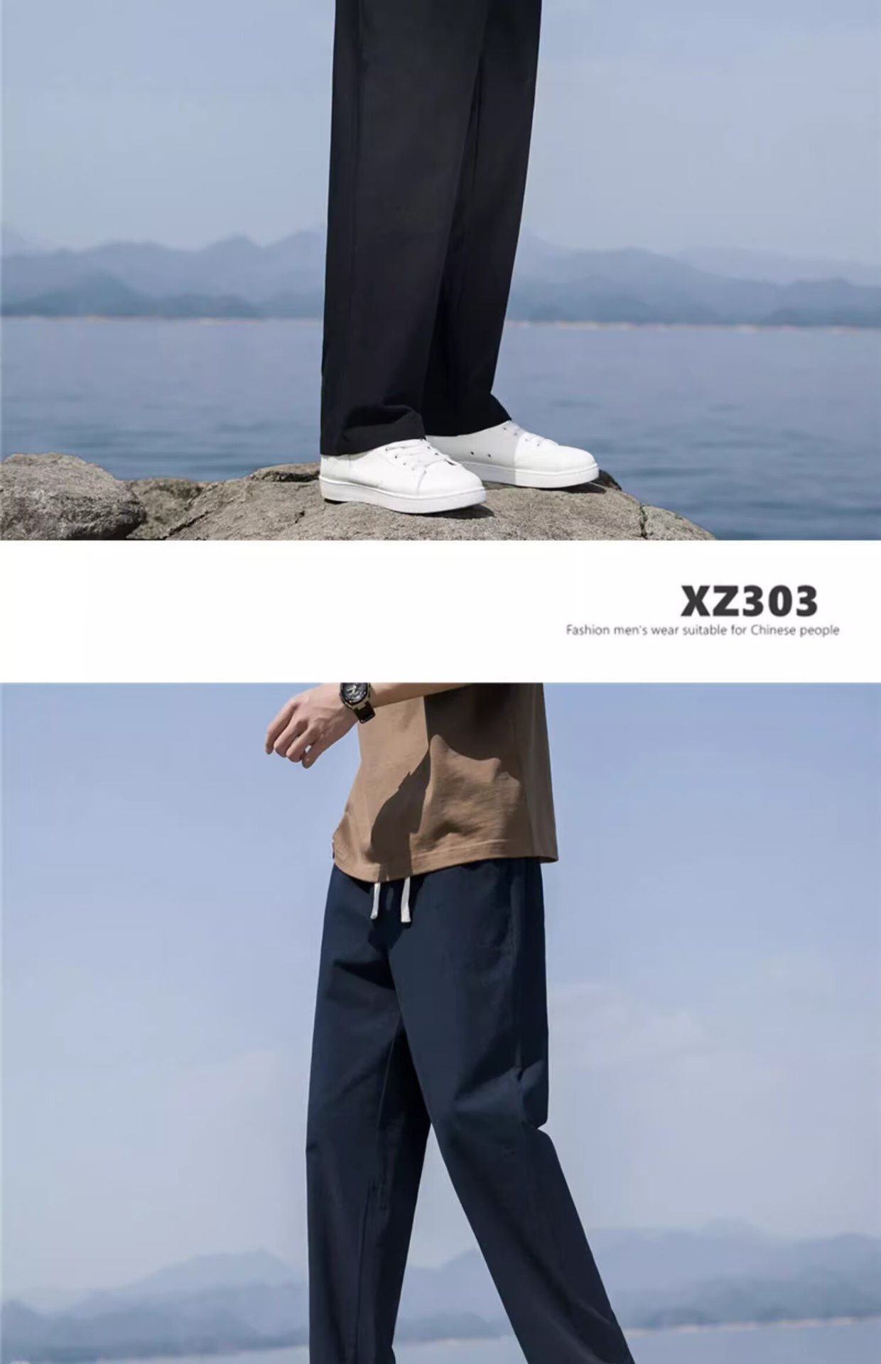 리넨 바지 남자 2025 년 새로운 여름 면화 및 리넨 바지 얇은 데프 와이드 다리 느슨한 올매치 스트레이트 캐주얼 바지
