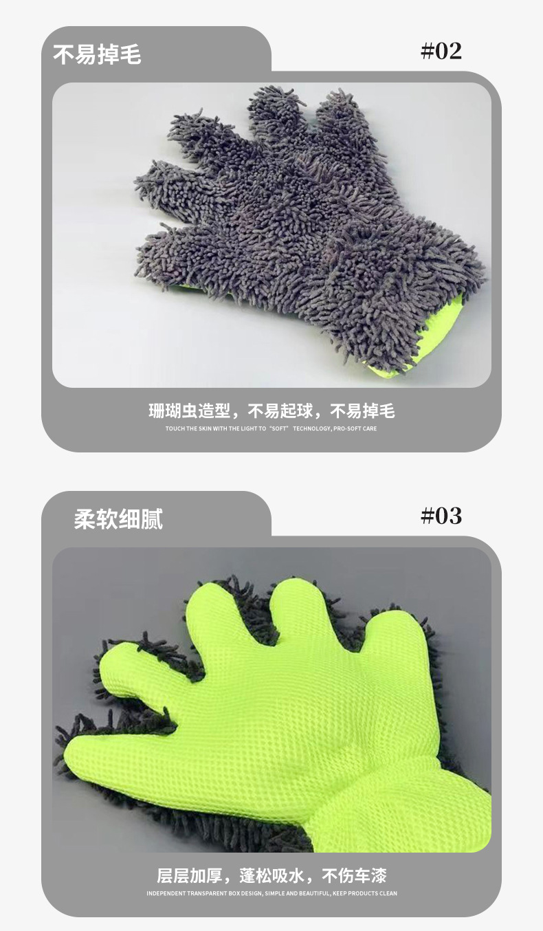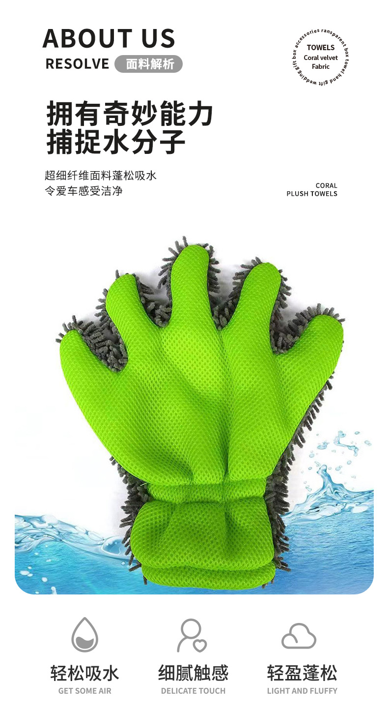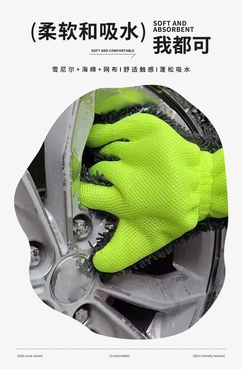 Chenille 5 손가락 세차용 장갑 스폰지 휠 허브 청소 두꺼운 봉제 세차 천 자동차 뷰티 세차장