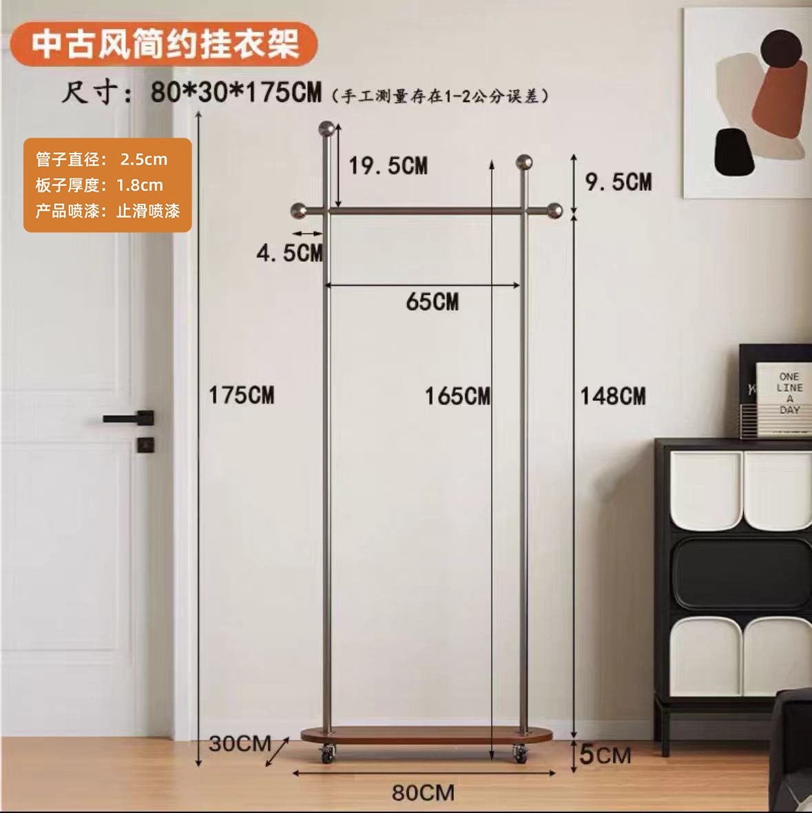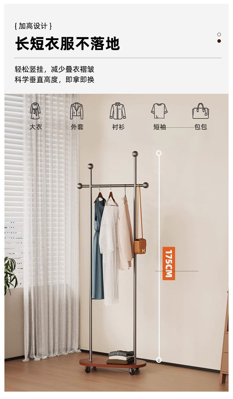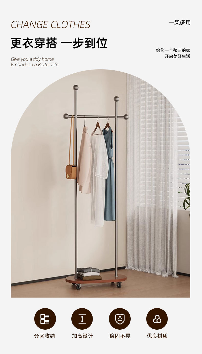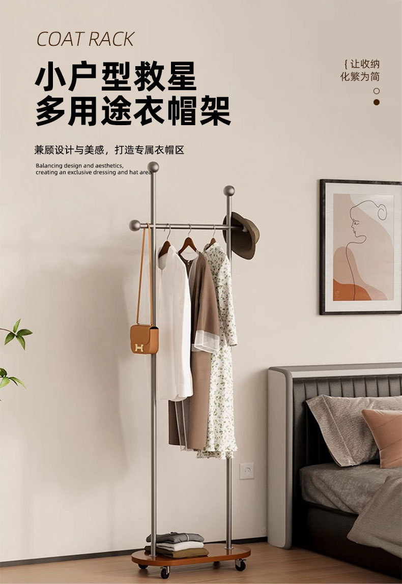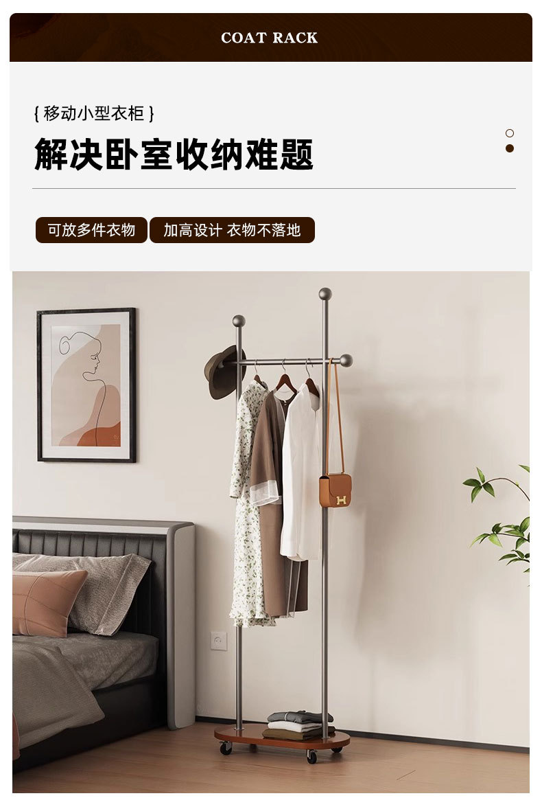 중세풍 이동식 바닥 걸이형 옷걸이, 모던 심플 가정용 옷장 수납 선반, 기숙사 옷걸이스토어 가기