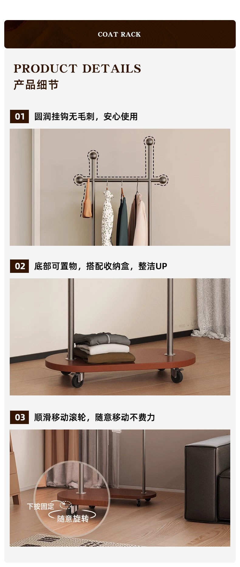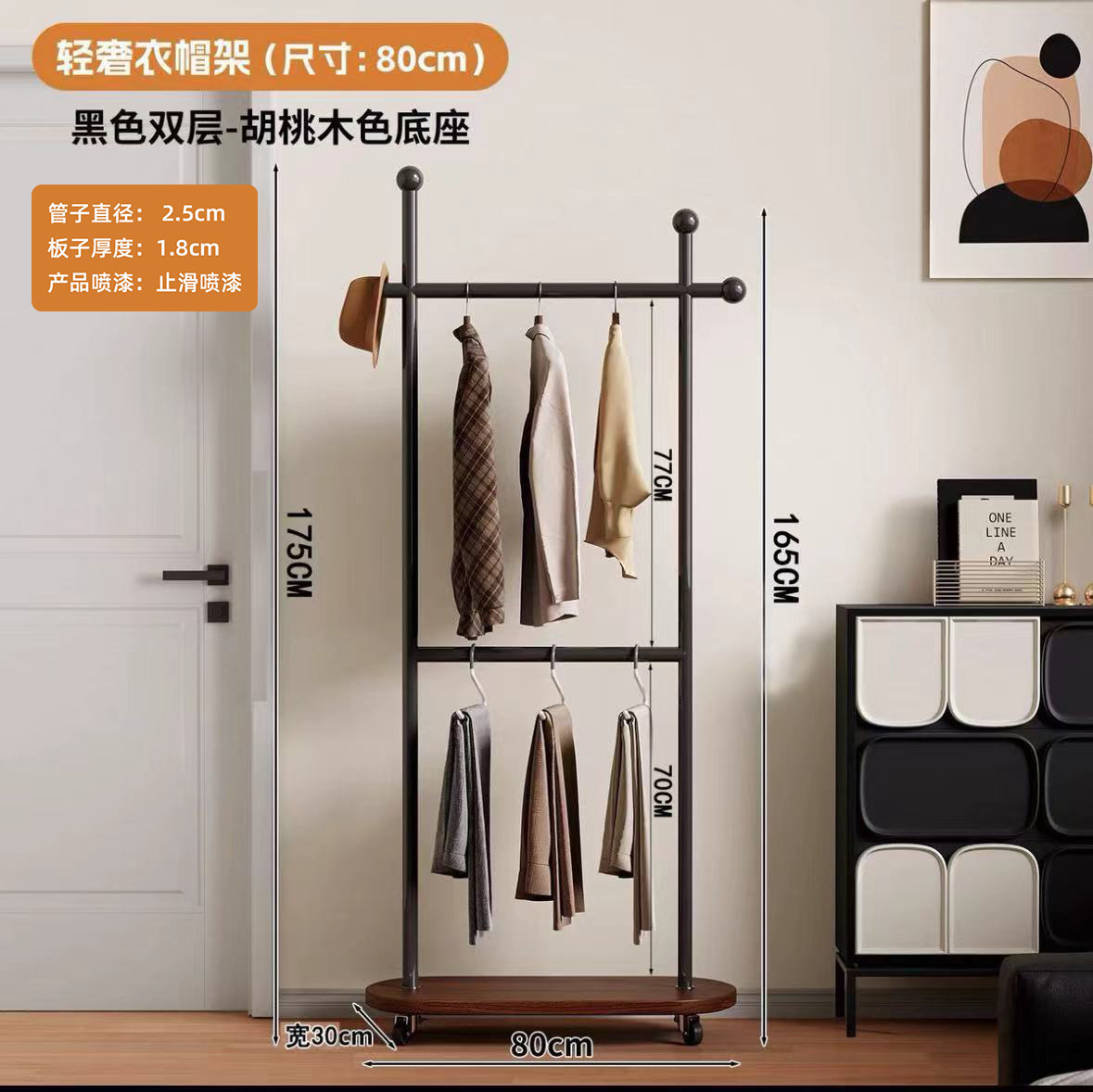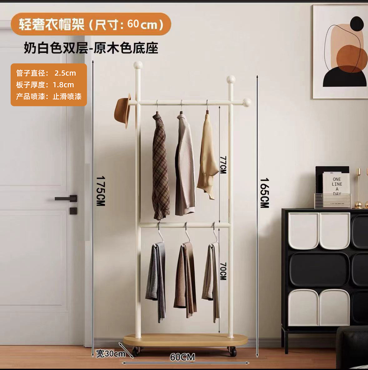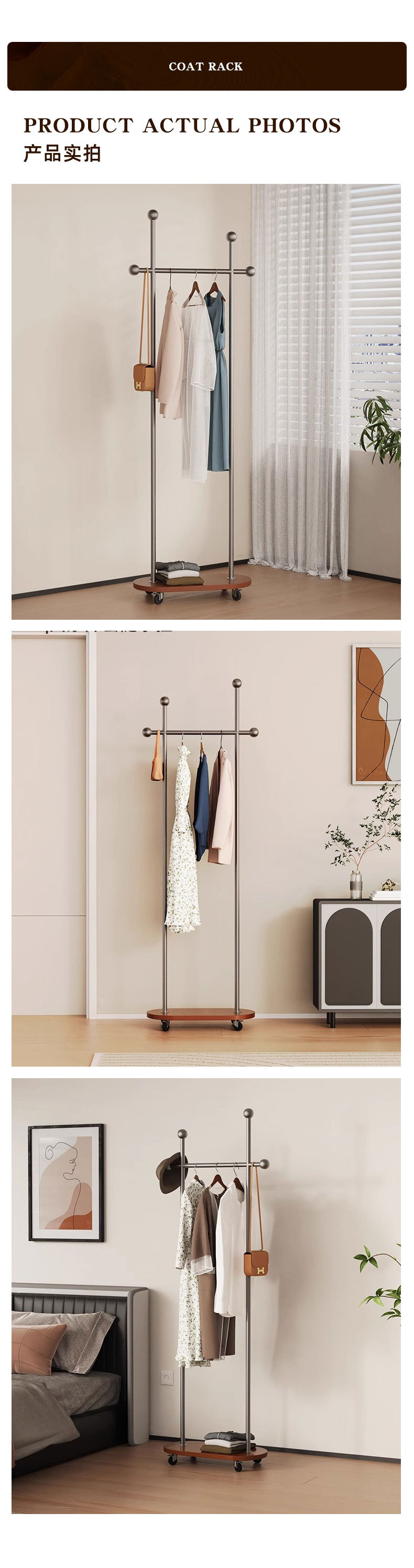 중세풍 이동식 바닥 걸이형 옷걸이, 모던 심플 가정용 옷장 수납 선반, 기숙사 옷걸이스토어 가기