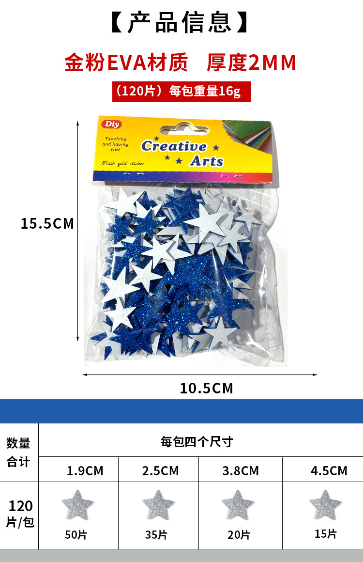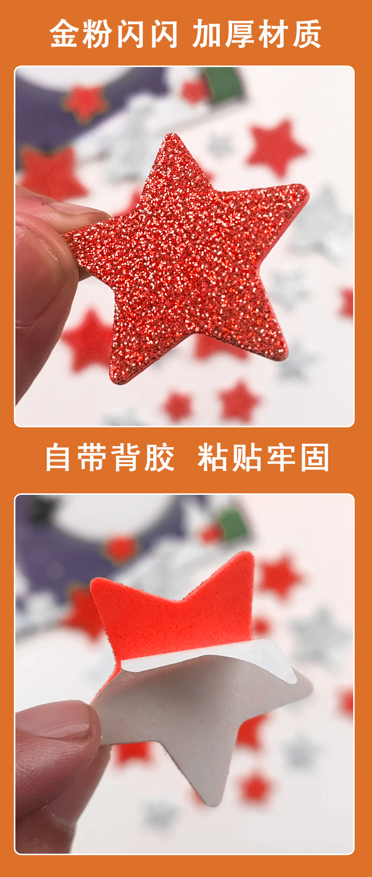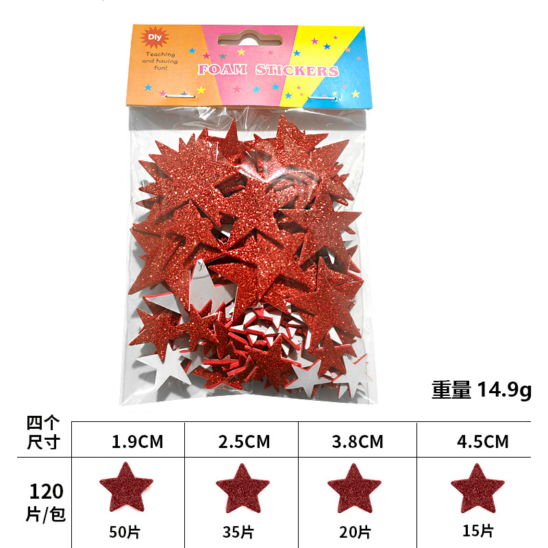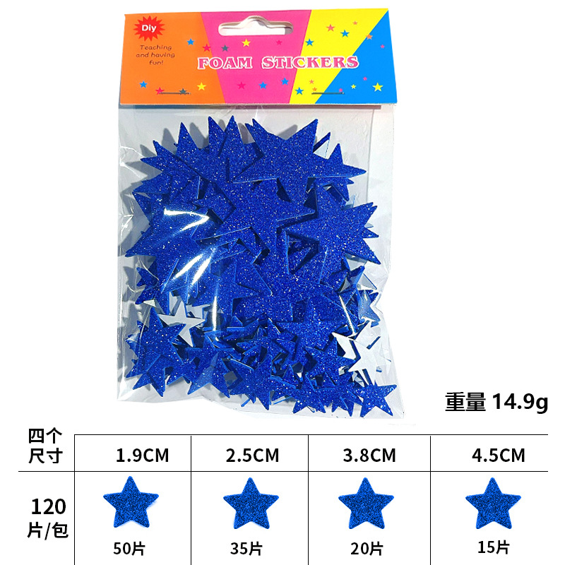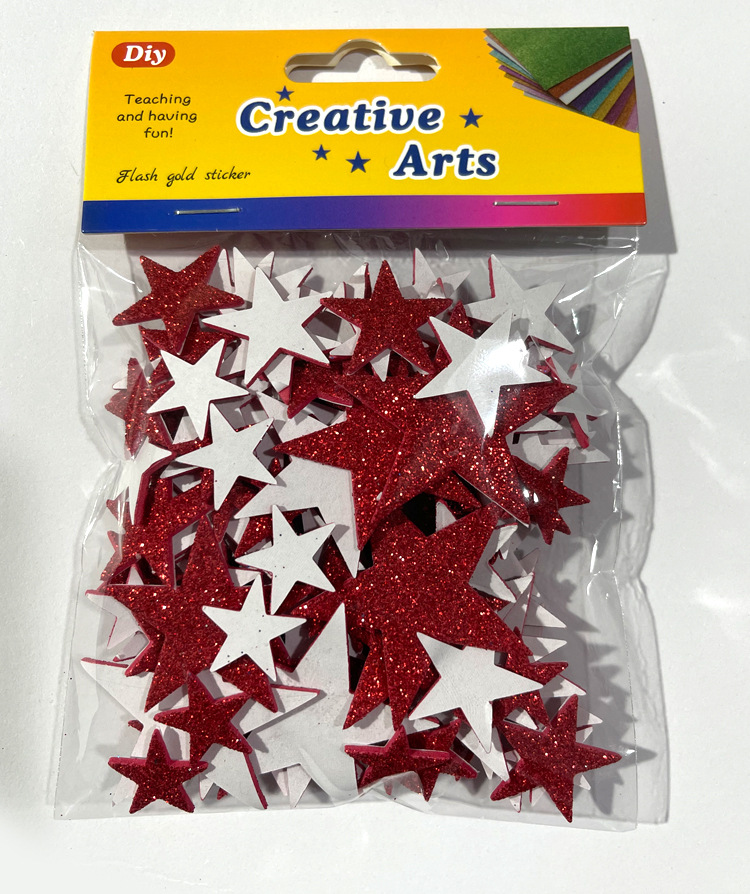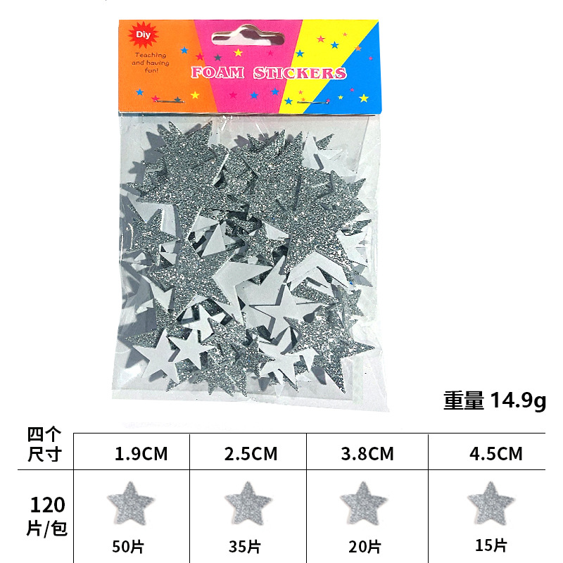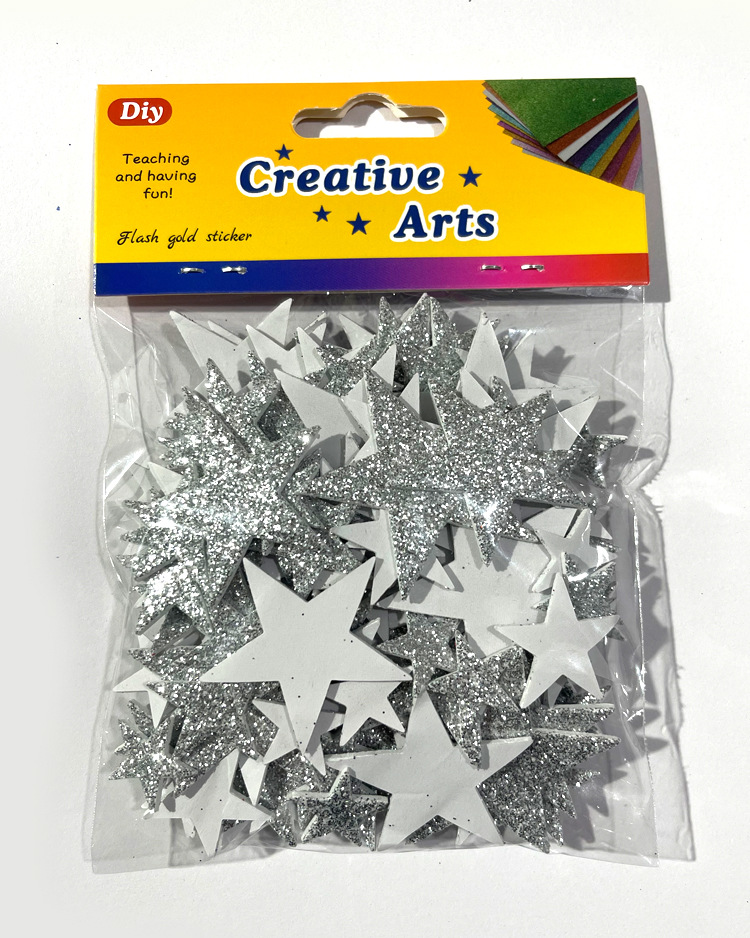 재고 있음 도매 오각형 반짝이 EVA 자체 접착 장난감 스티커 반짝이 골드 파우더 스타 스티커 스티커 사용자 정의스토어 가기