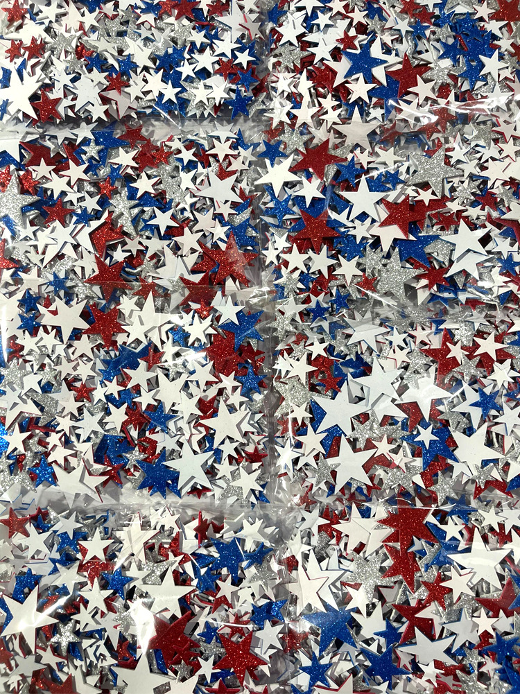 • 빨간색 다섯개 별 반짝이 스티커