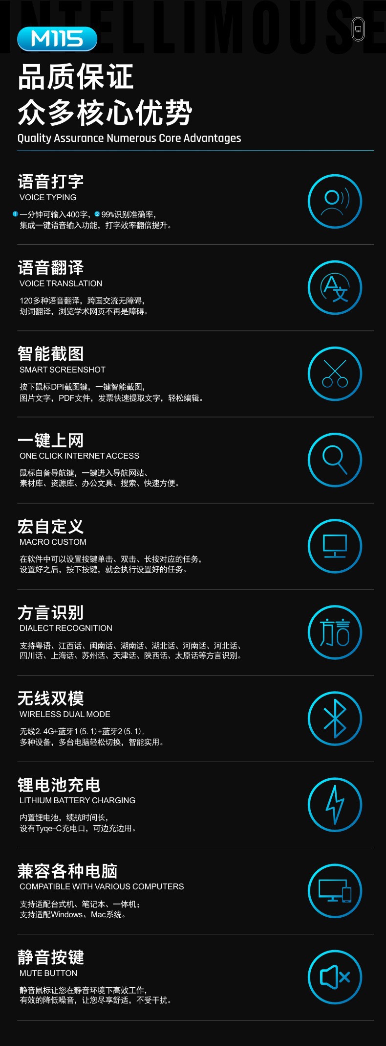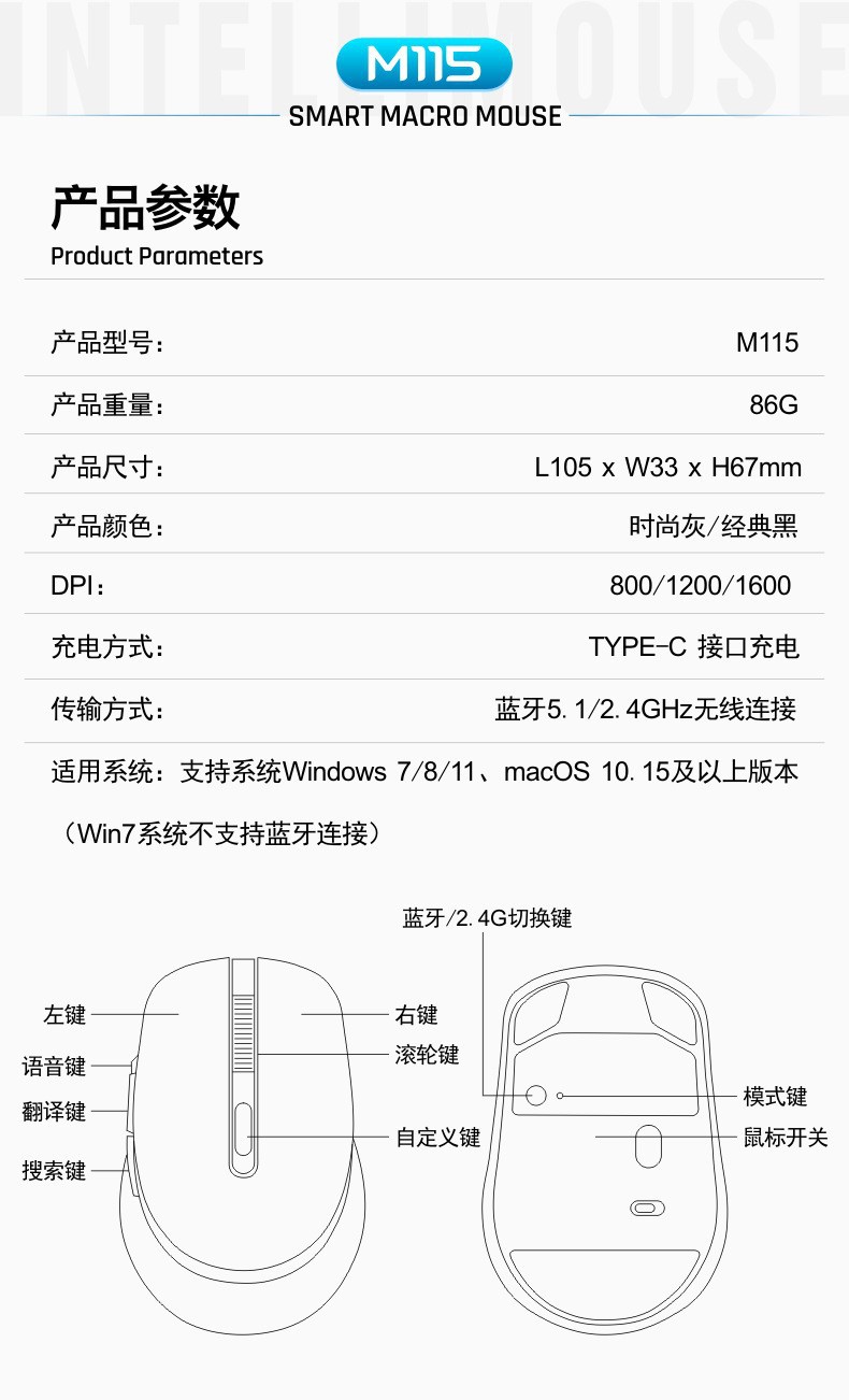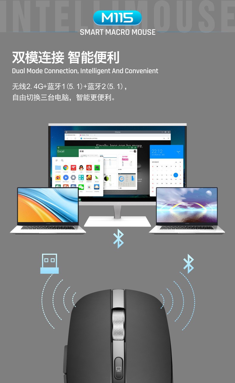 블루투스 무선 마우스, 무소음 충전형, 노트북, 사무용, 남녀공용, Ai 듀얼 모드 블루투스스토어 가기