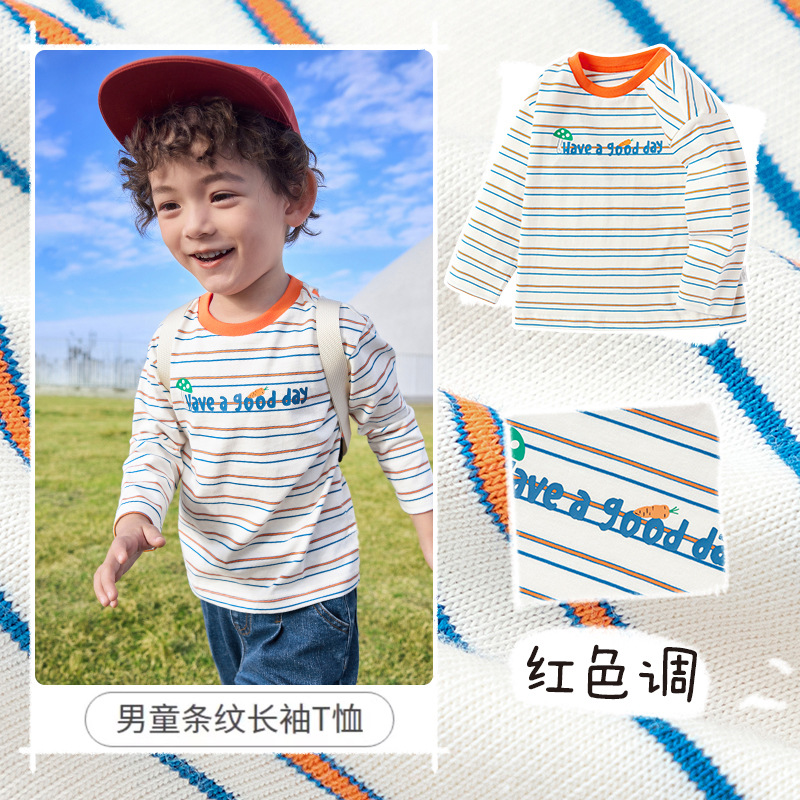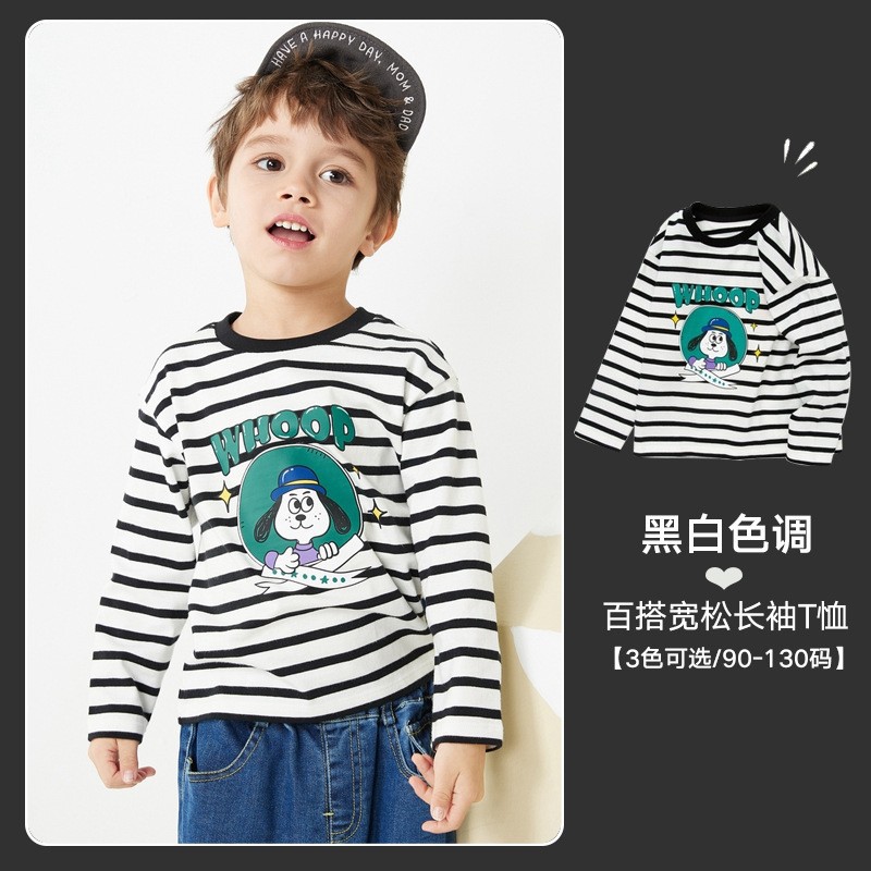 도매 아동복 2026년 신상 아동용 긴팔 티셔츠 봄 가을 남아 여아 유아용 순면 스트라이프 베이스 레이어 상의스토어 가기