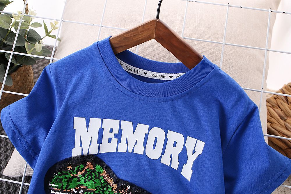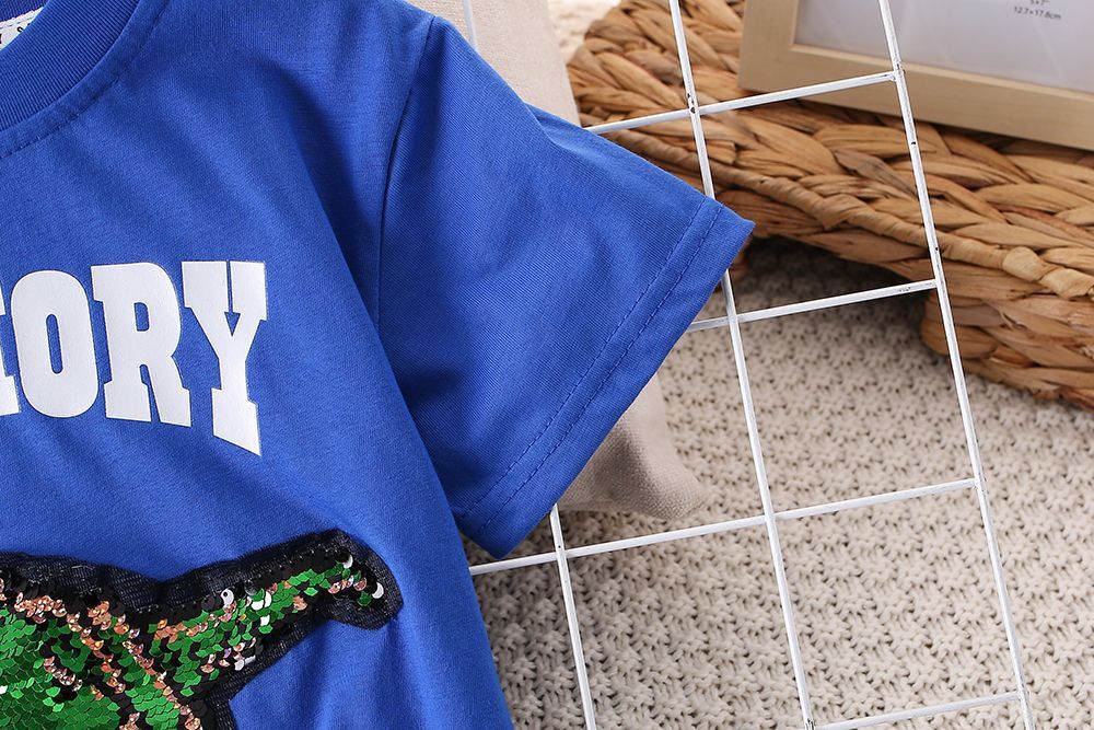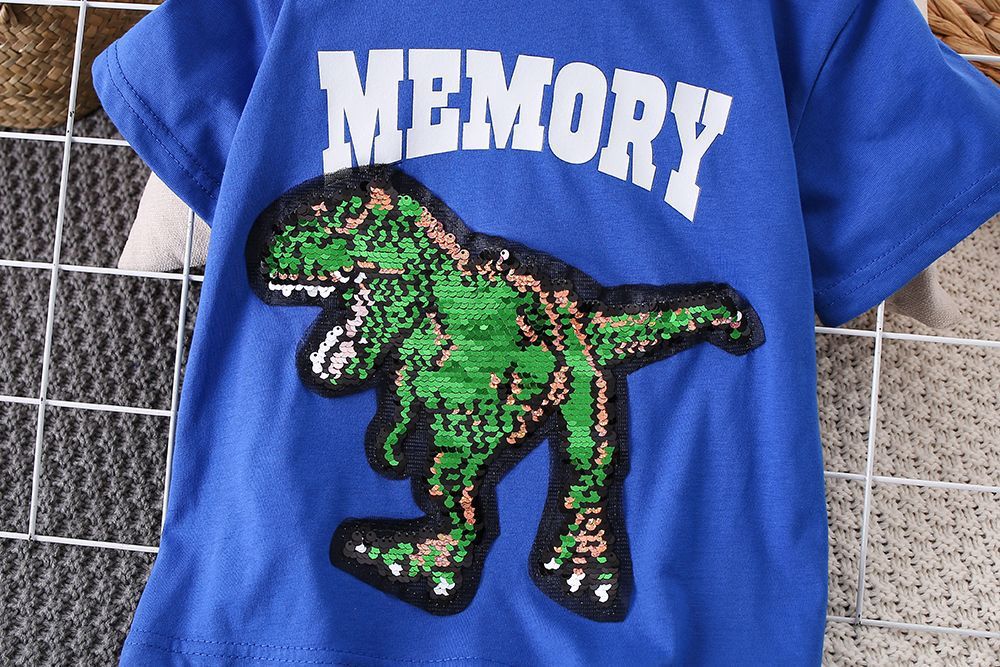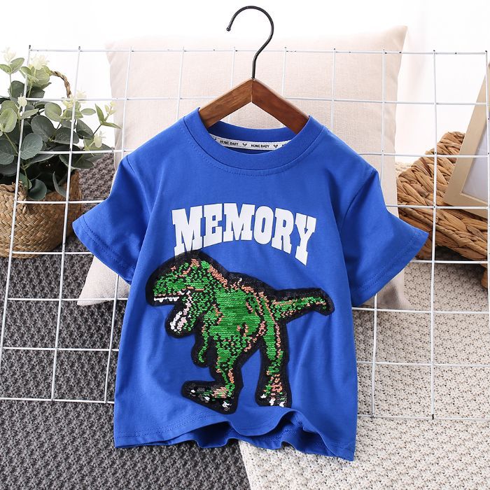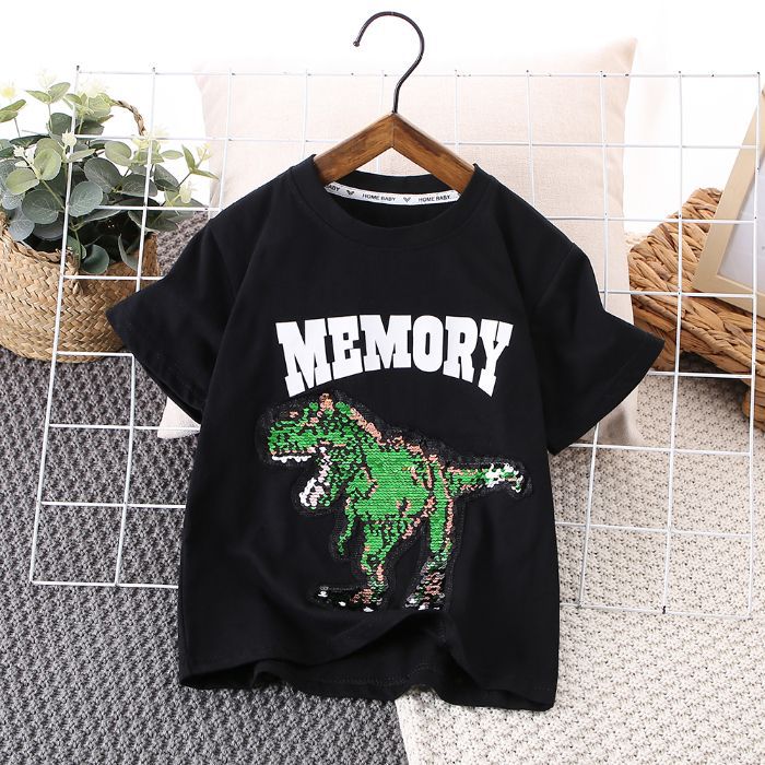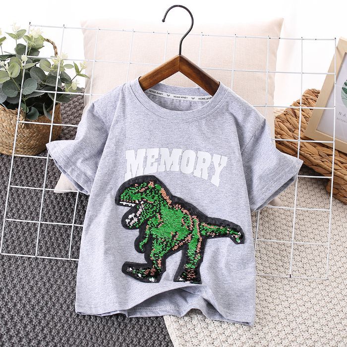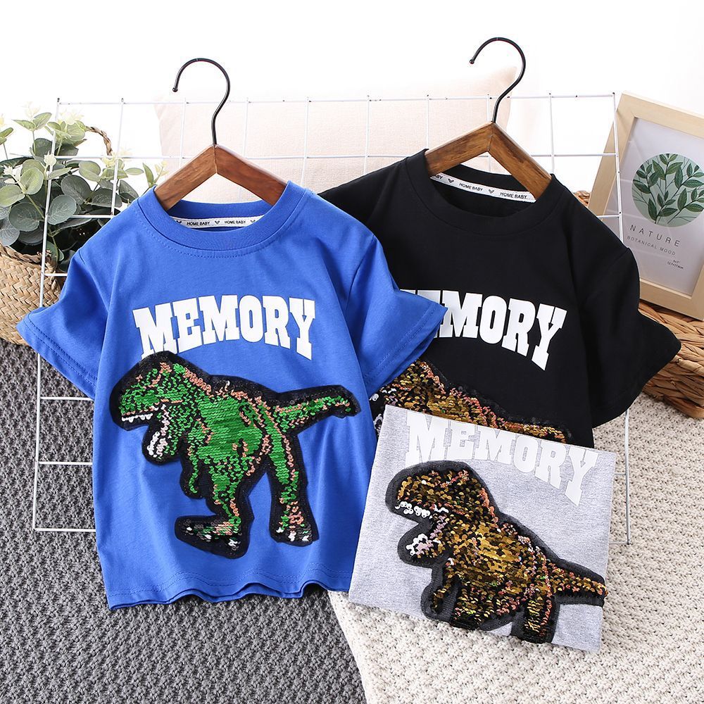 Zhongda 소년 공룡 스팽글 반팔 여름 새로운 스타일 어린이 트렌디하고 멋진 잘 생긴 세련된 스트리트 풀오버 탑 새로운 스타일스토어 가기