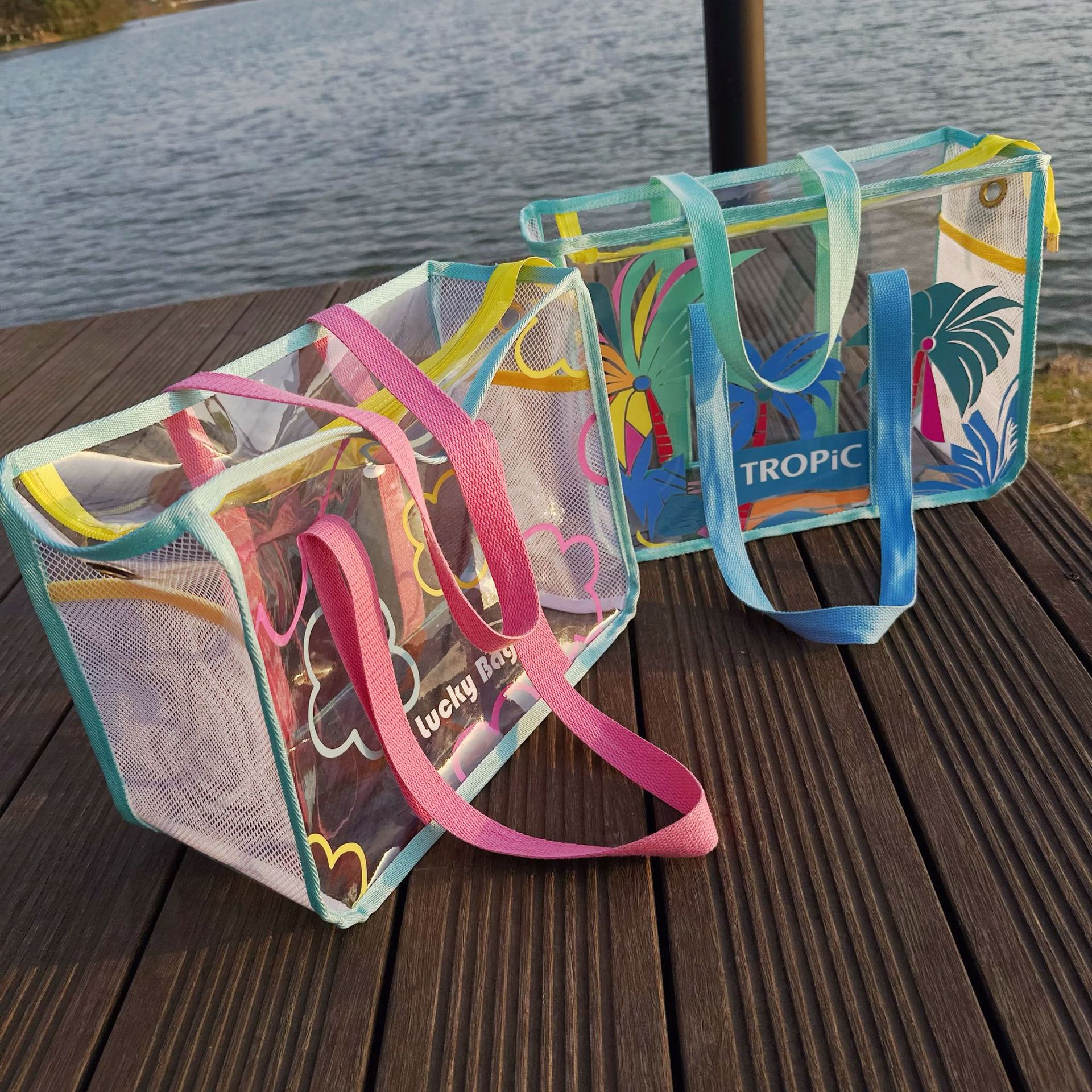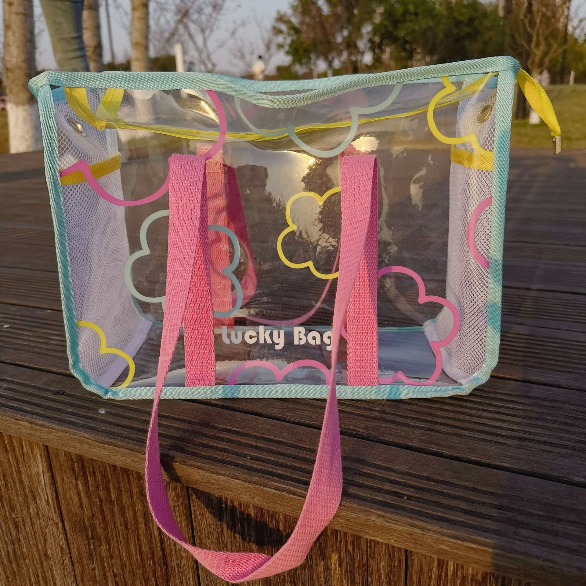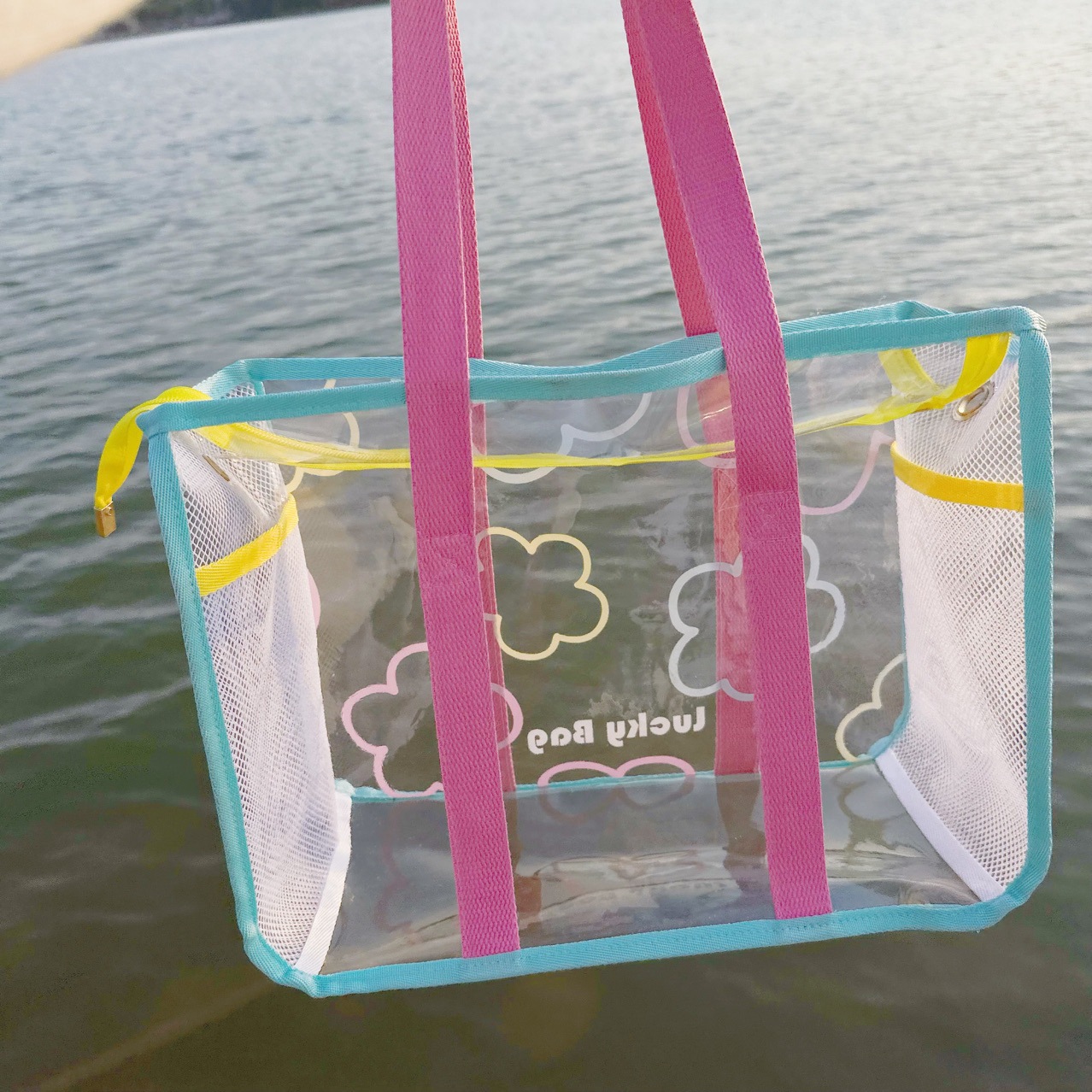 새로운 비치 가방 투명 방수 해변 수영복 보관 가방 목욕 욕실 세면 용품 가방 투명 젤리 대용량스토어 가기