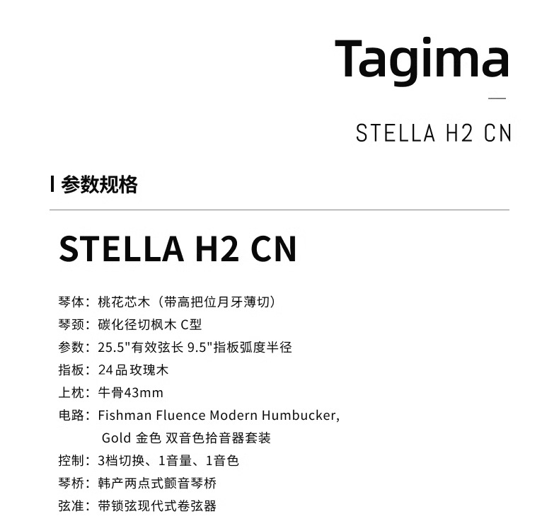 Tagima Tagima 일렉트릭 기타 Stella H2 CN FISHMAN 플래티넘 공식 플래그십 스토어 블랙 골드 정품
