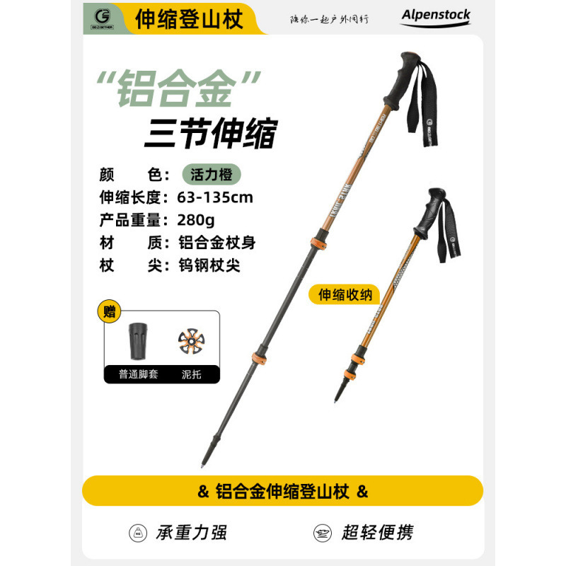 • 알루미늄 합금 트레킹 폴 [오렌지색 무게는 160g√]