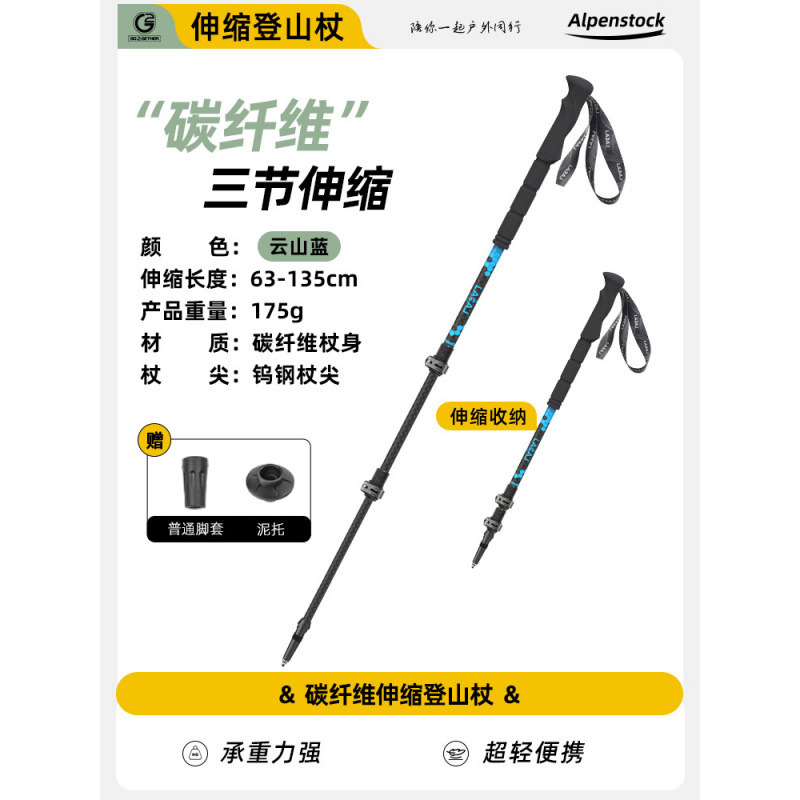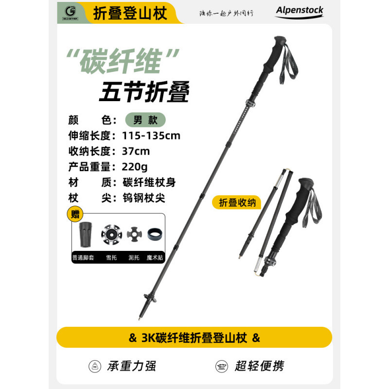 새로운 탄소 접이식 등산 스틱, 알루미늄 합금 외부 잠금 장치, 3단 텔레스코픽 스틱, 야외 하이킹 및 등산 스틱 장비스토어 가기