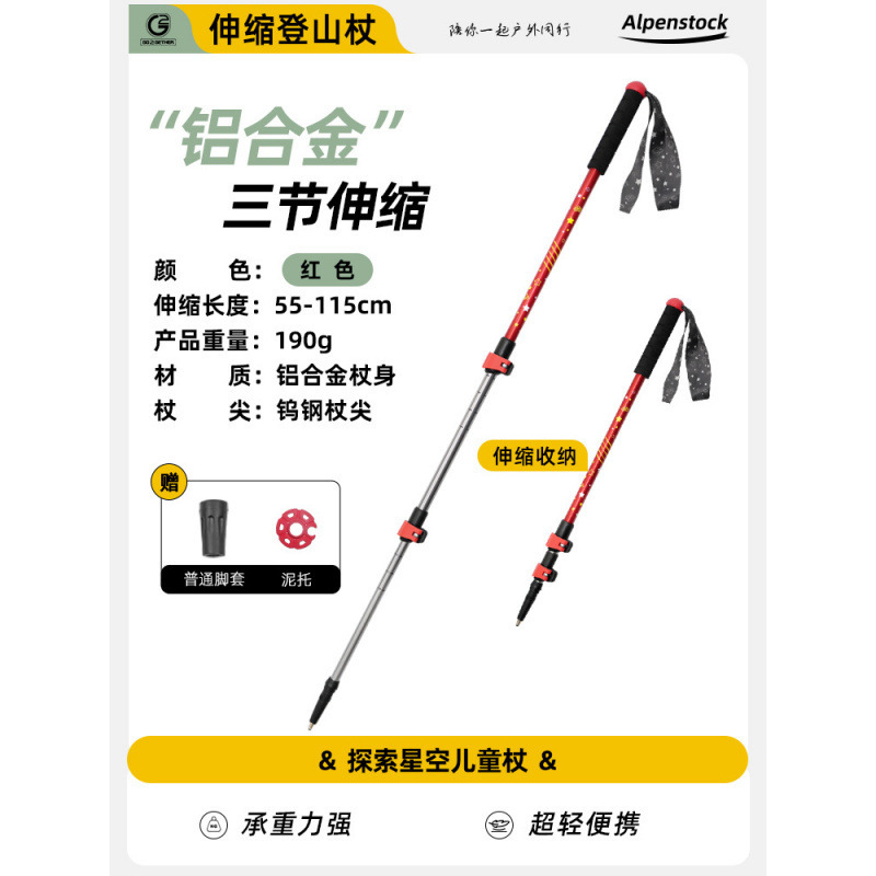 • 알루미늄 합금 어린이 지팡이 - 별이 빛나는 하늘 레드 탐험 [신장 165cm 이하 적용 가능]