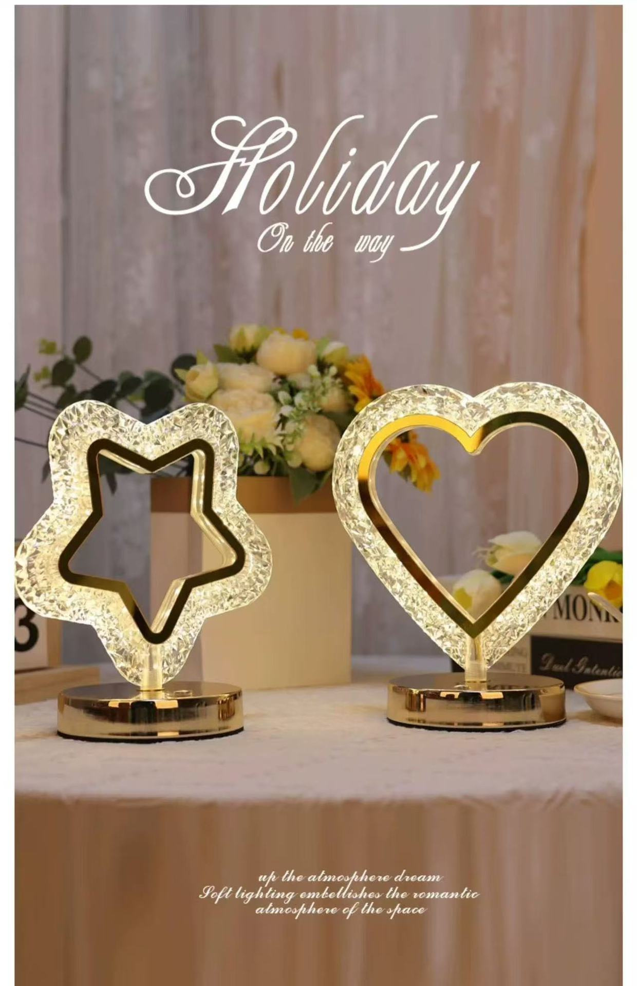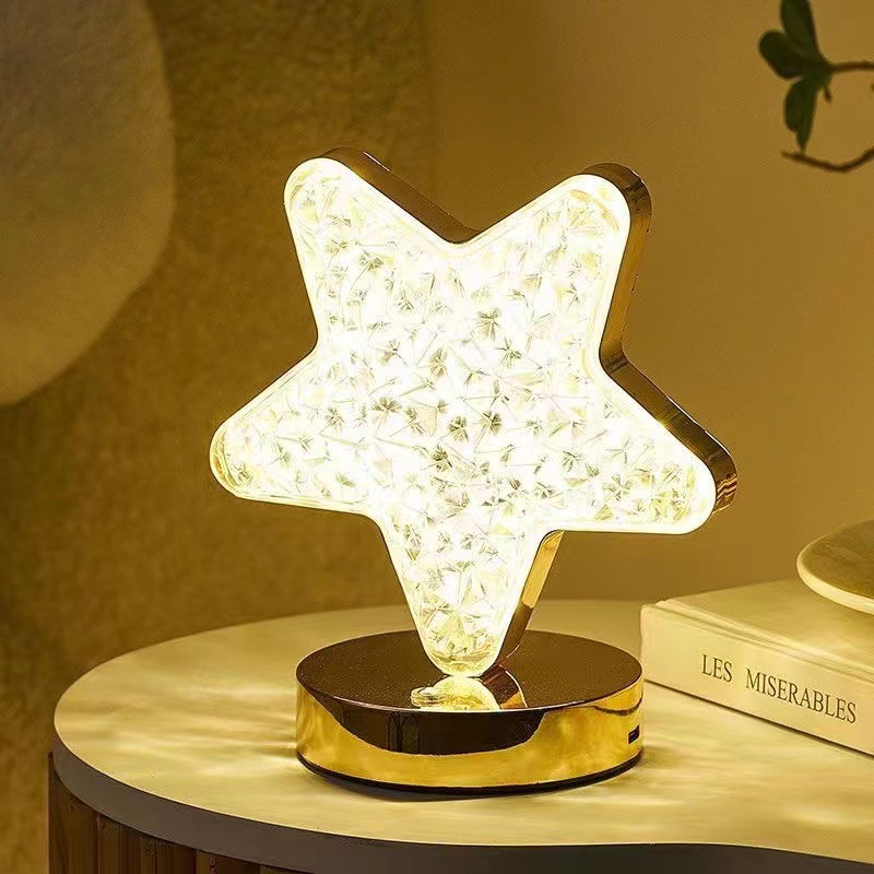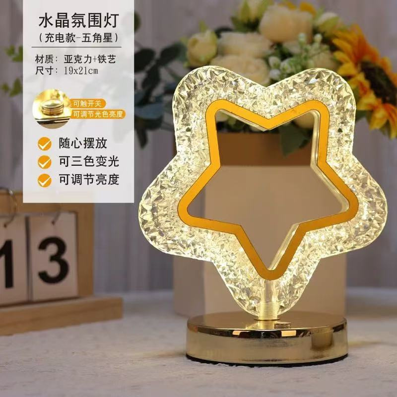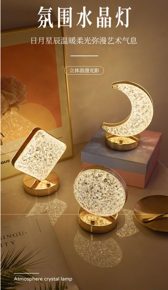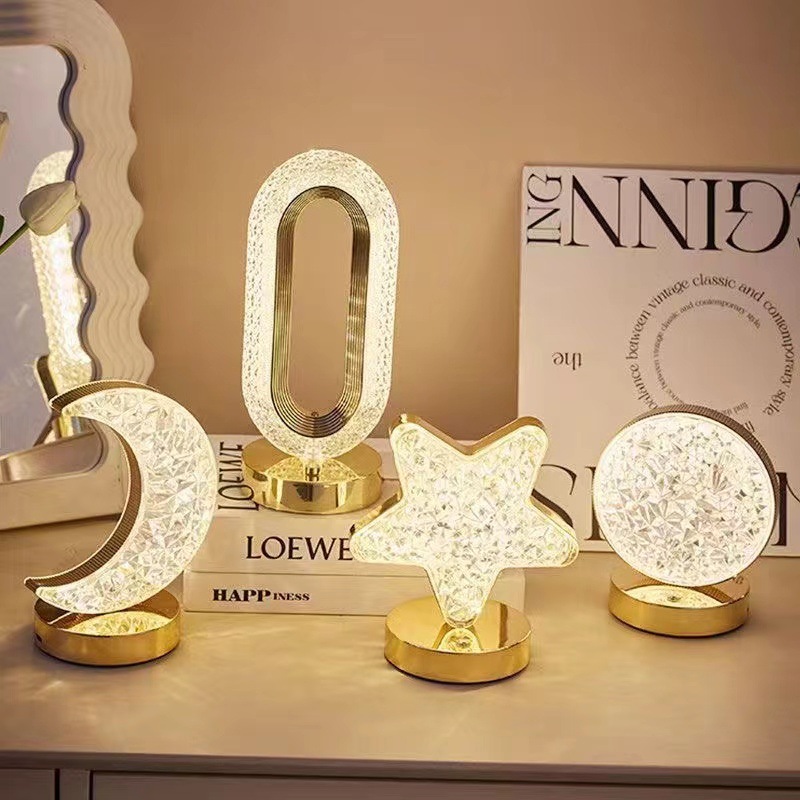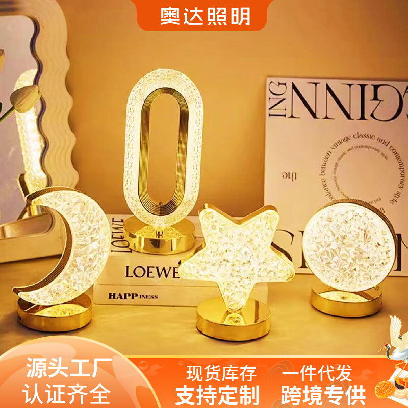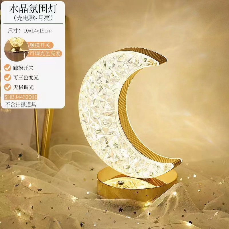국경 간 침실 머리맡 눈 보호 야간 조명 별과 달 크리스탈 분위기 조명 다목적 장식 테이블 램프 수면 조명