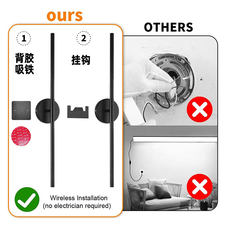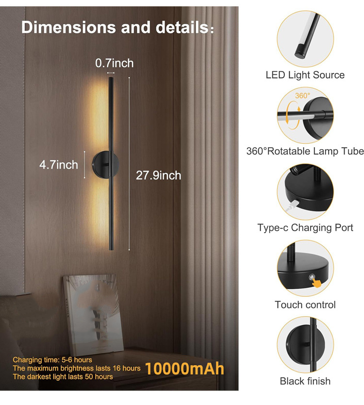 국경을 넘는 무선 배터리 구동 벽등 충전식 LED 2개 세트 조광 가능 침실 거실등 휴대용 충전