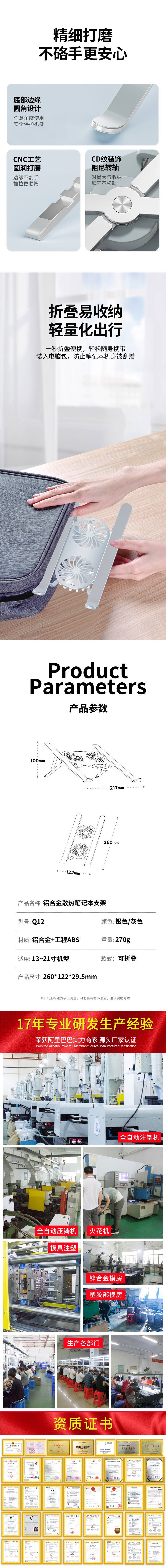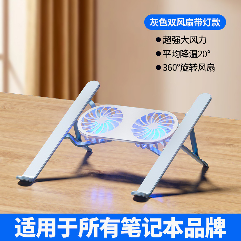 • 알루미늄 합금 컴퓨터 스탠드-[팬과 조명이 있어 열 방출을 위해 720도 회전 가능]-회색