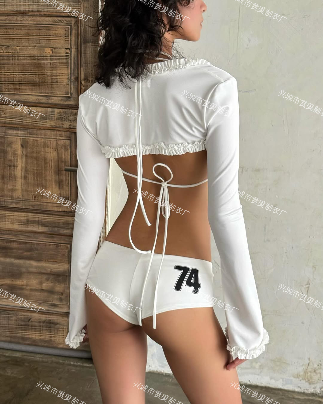 핫걸 비키니 화이트 슈트 영어 프린트 귀여운 소녀 온천 비키니 핫걸 여성용 긴팔 수영복