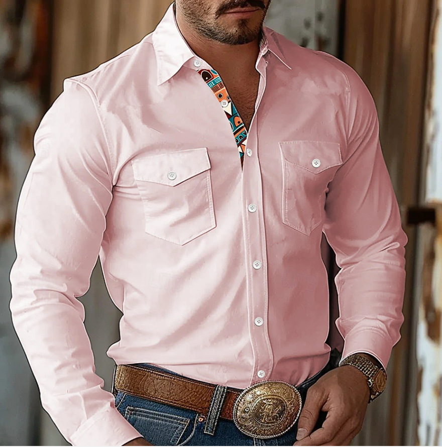 남성용 셔츠 긴팔 유럽과 미국의 복고풍 프린트 셔츠 서부 캐주얼 통기성 마이크로 탄성 봄과 가을 셔츠스토어 가기