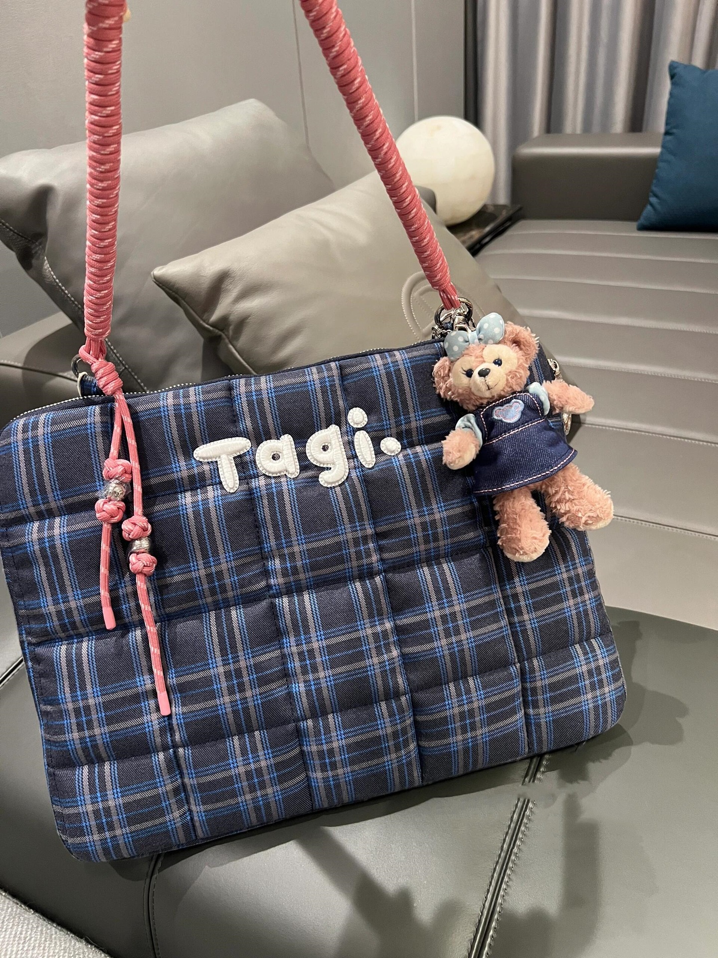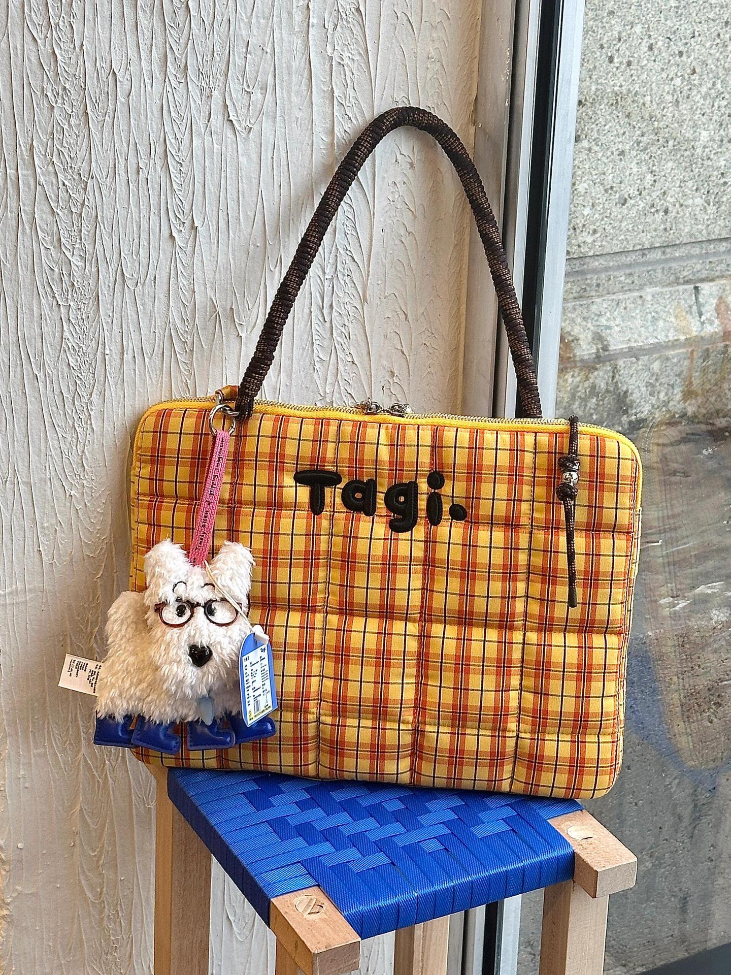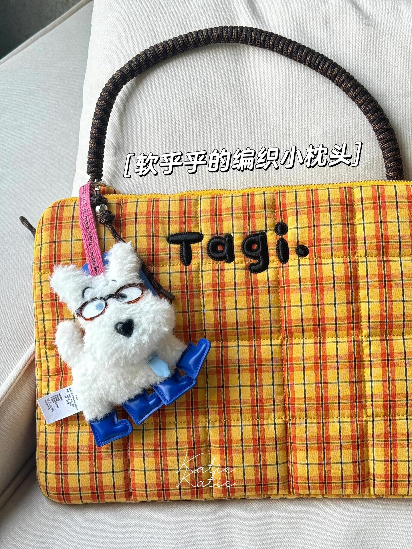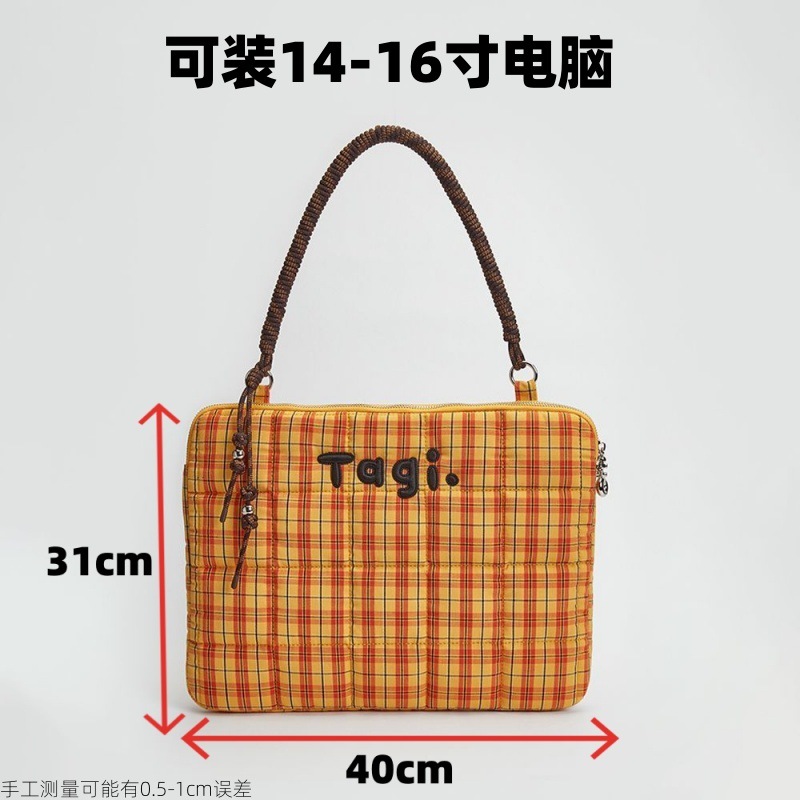 Tagi Hapou 짠 작은 베개 면화로 채워진 핸드 헬드 숄더 낙상 방지 및 충격 방지 컴퓨터 가방 노트북 가방 체크 무늬스토어 가기
