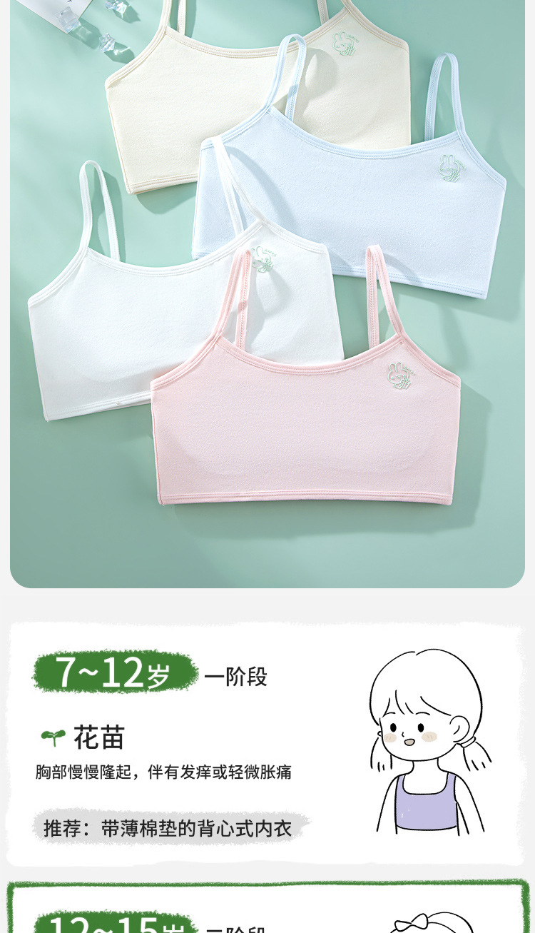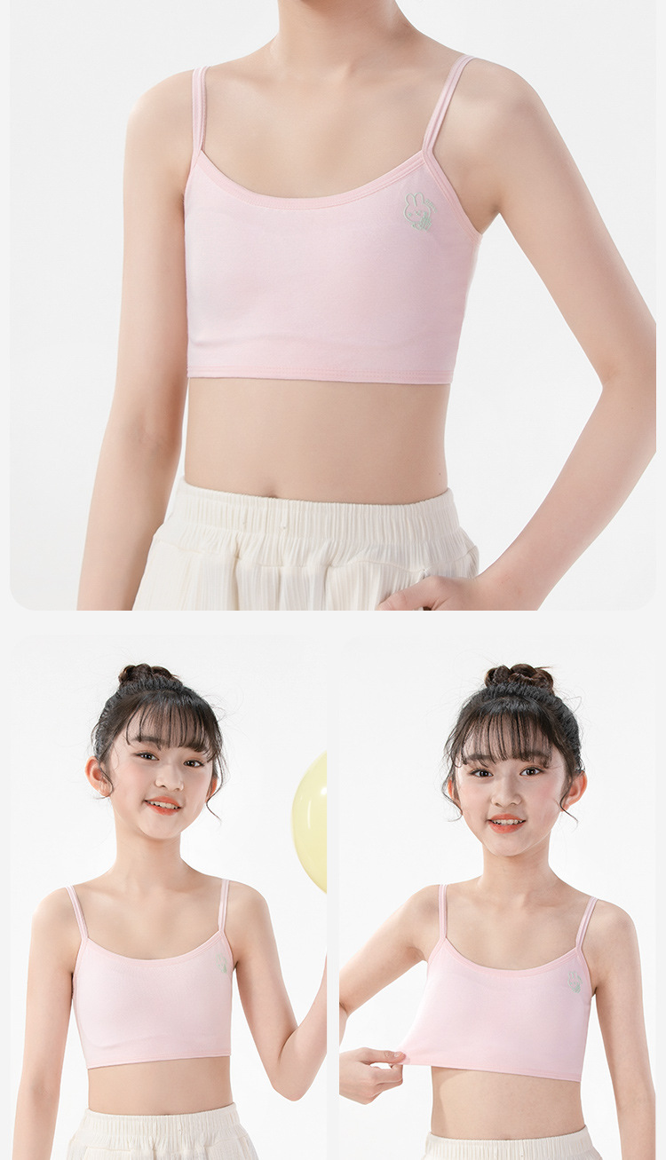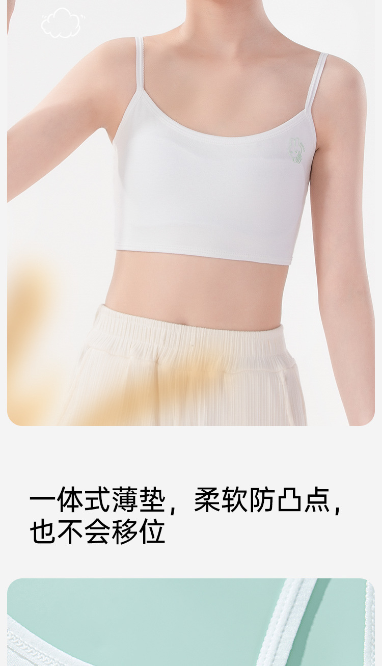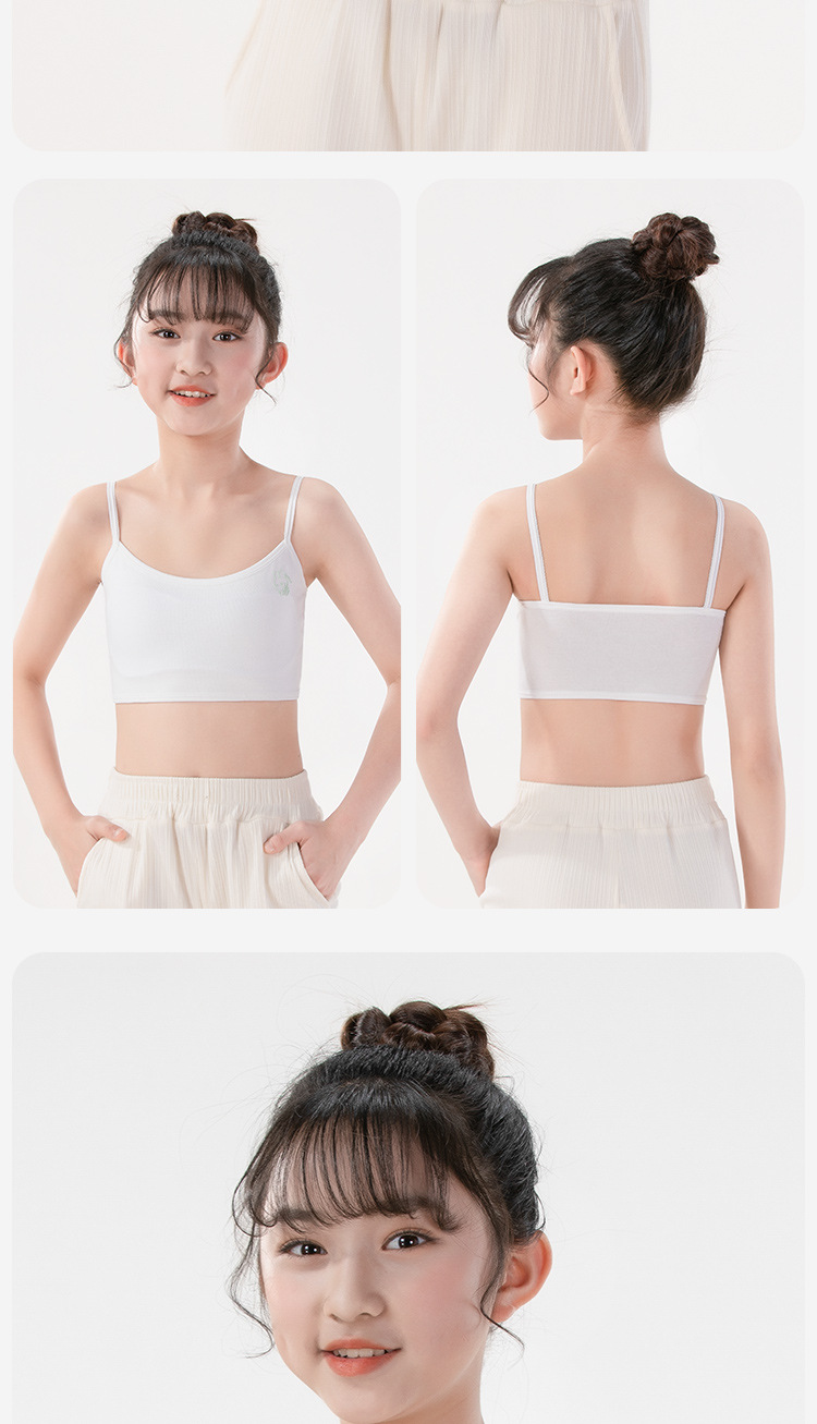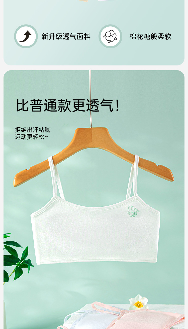 여름용 얇은 노라인 성장기 소녀용 조끼형 브라, 연한 색상, 노와이어, 돌출 방지, 아름다운 등 디자인, 여아 브라스토어 가기