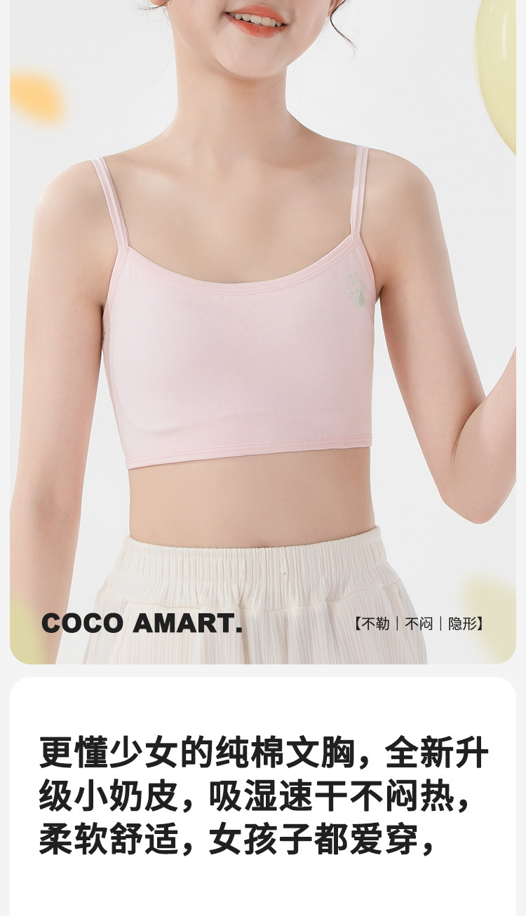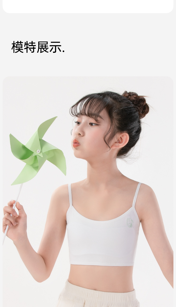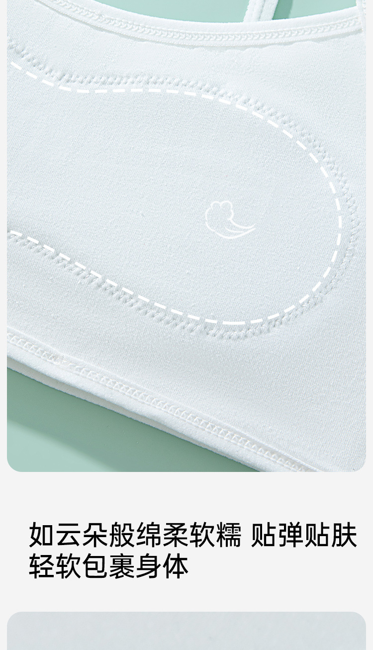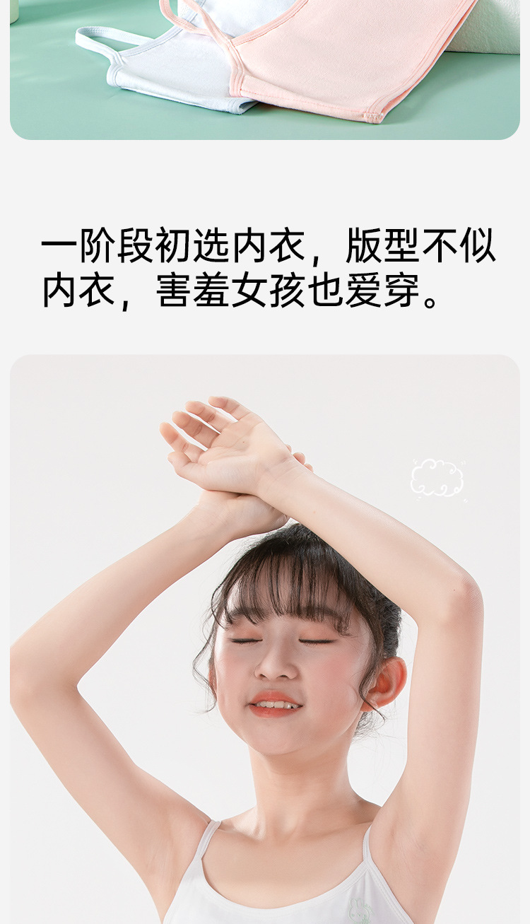 여름용 얇은 노라인 성장기 소녀용 조끼형 브라, 연한 색상, 노와이어, 돌출 방지, 아름다운 등 디자인, 여아 브라스토어 가기