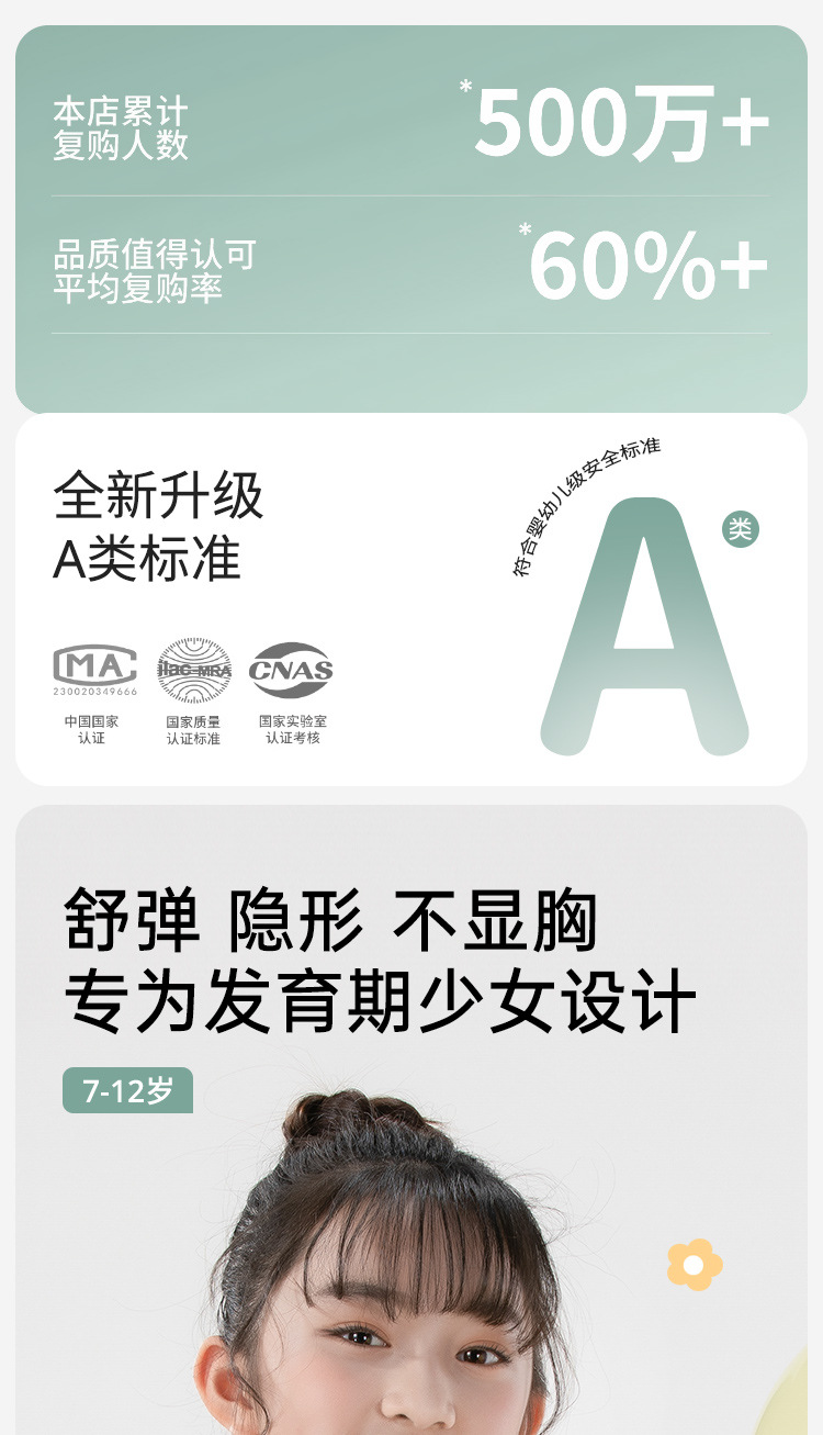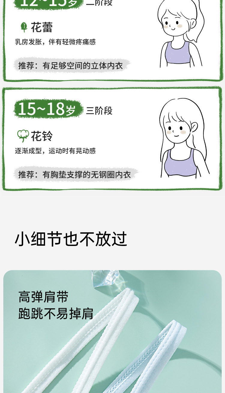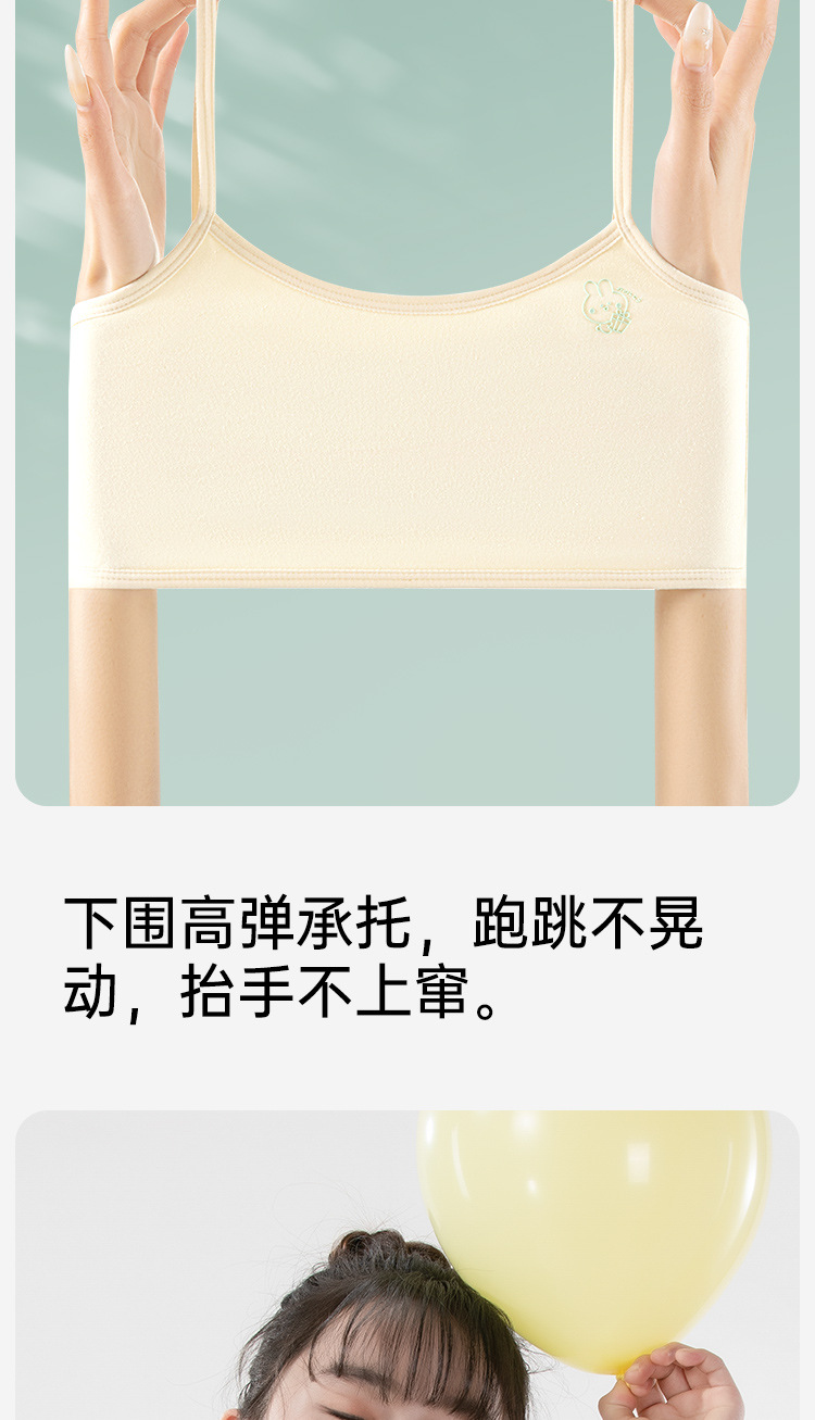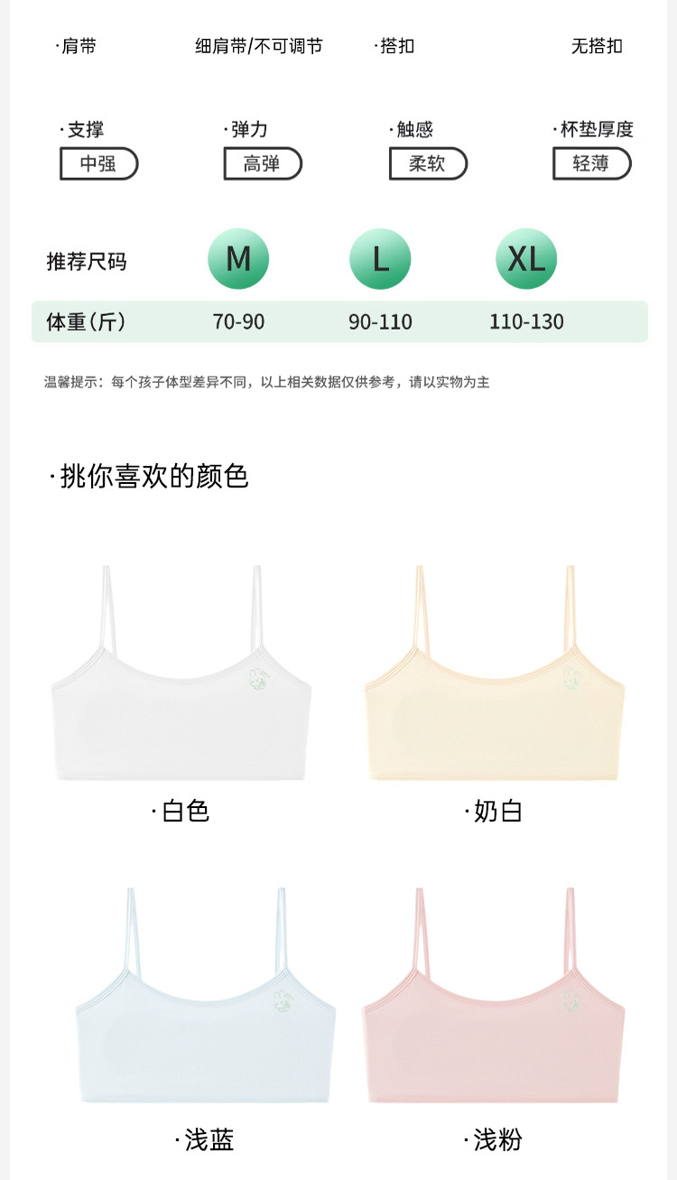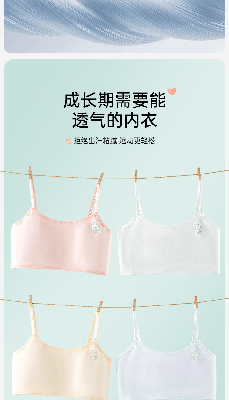 여름용 얇은 노라인 성장기 소녀용 조끼형 브라, 연한 색상, 노와이어, 돌출 방지, 아름다운 등 디자인, 여아 브라스토어 가기