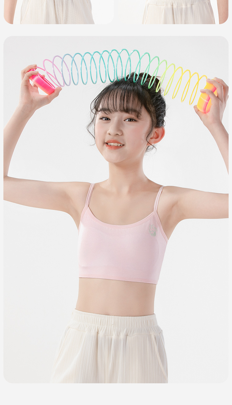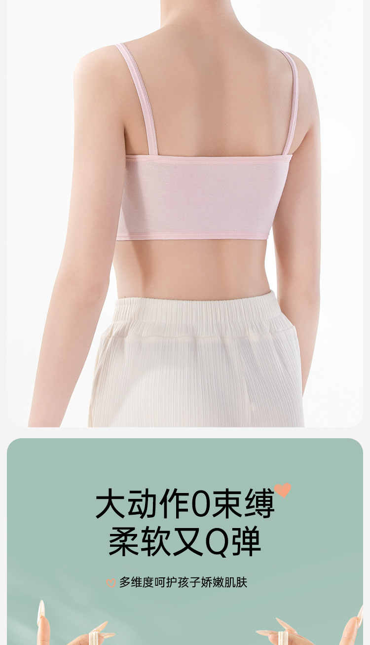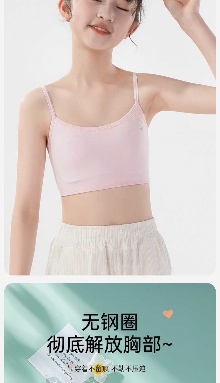 여름용 얇은 노라인 성장기 소녀용 조끼형 브라, 연한 색상, 노와이어, 돌출 방지, 아름다운 등 디자인, 여아 브라
